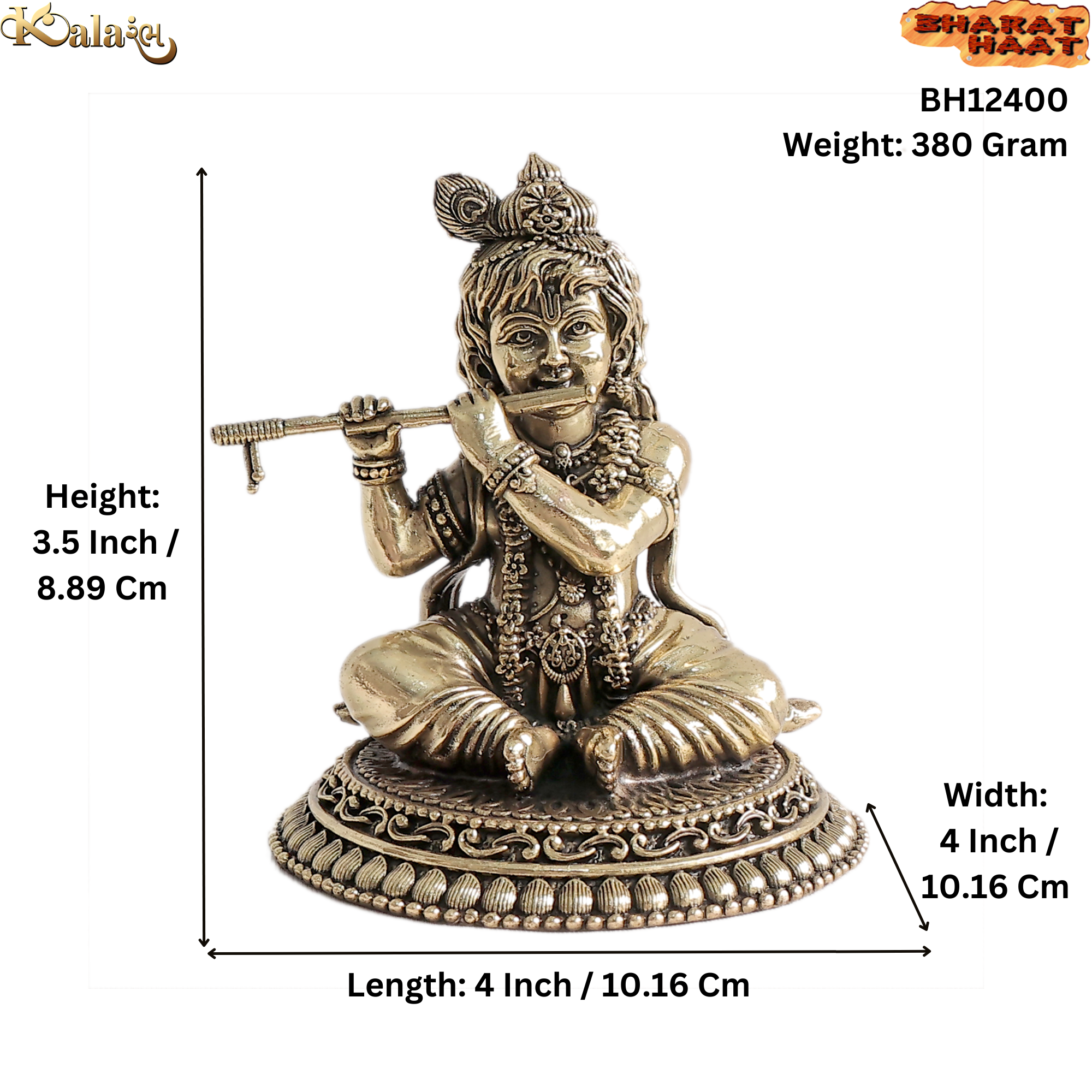 This idol weighs 380 grams, making it sturdy and long-lasting. The premium brass material ensures durability and retains its shine with minimal maintenance.