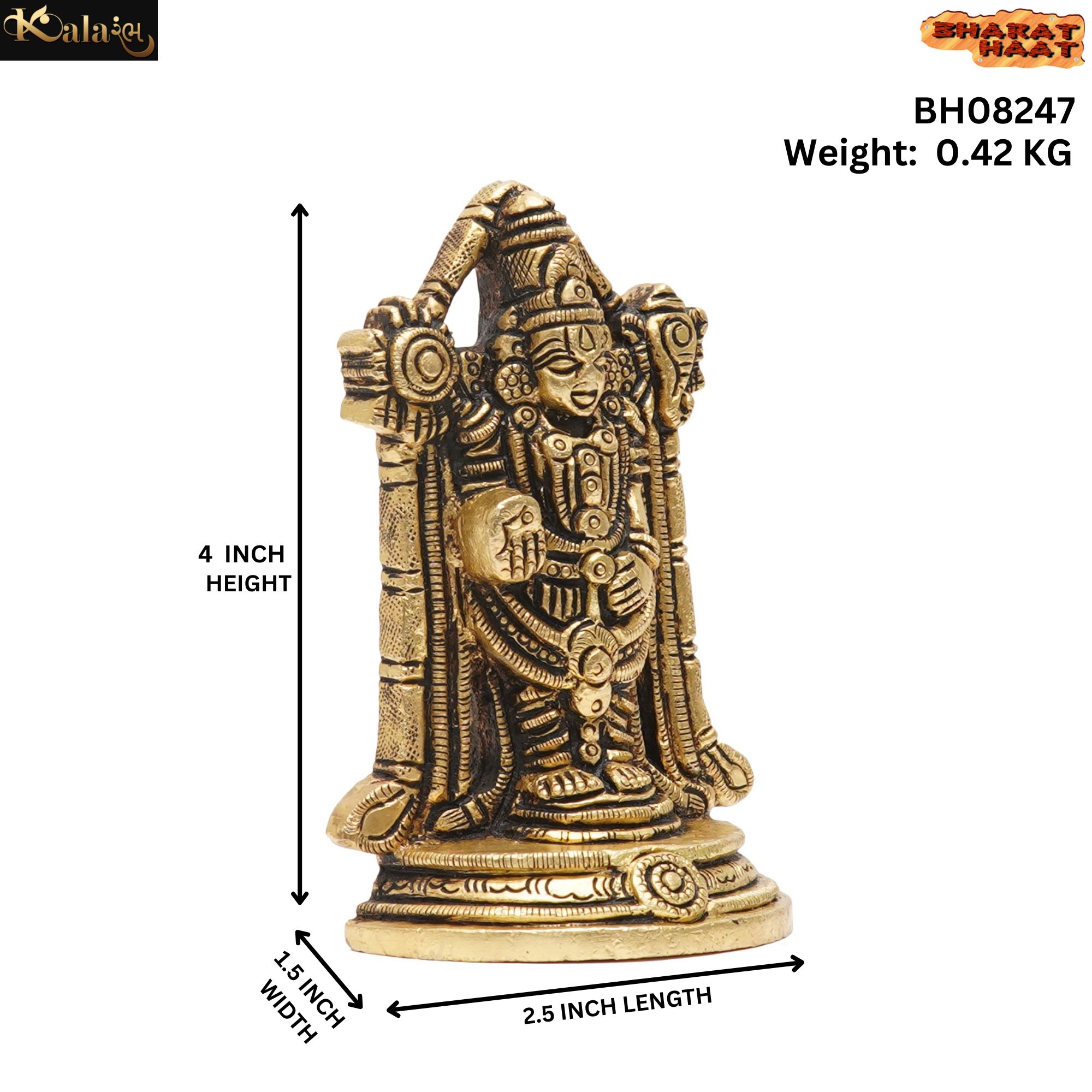 This Brass Balaji idol measures 2.5 x 1.5 x 4 inches (6.35 x 3.81 x 10.16 cm) and weighs 420 grams. A finely crafted statue of Lord Balaji (Venkateshwara), symbolizing divine blessings, protection, and prosperity. Perfect for pooja rituals, home temples, or as a thoughtful gift, this idol enhances spiritual ambiance and adds divine grace to your space.