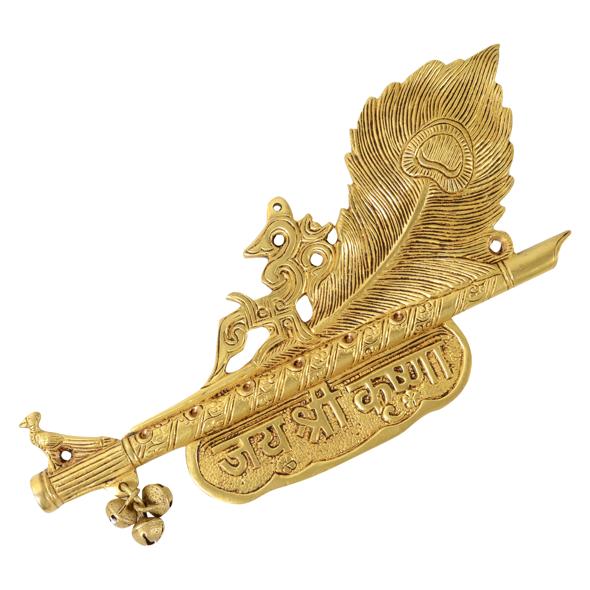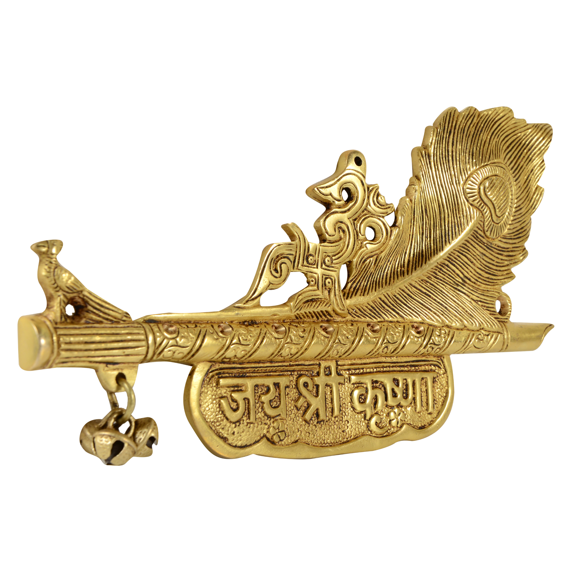 Brass Basuri with Jai Shree Krishna design, crafted with fine detailing. Perfect for wall decoration, temple decor, and devotional spaces.
