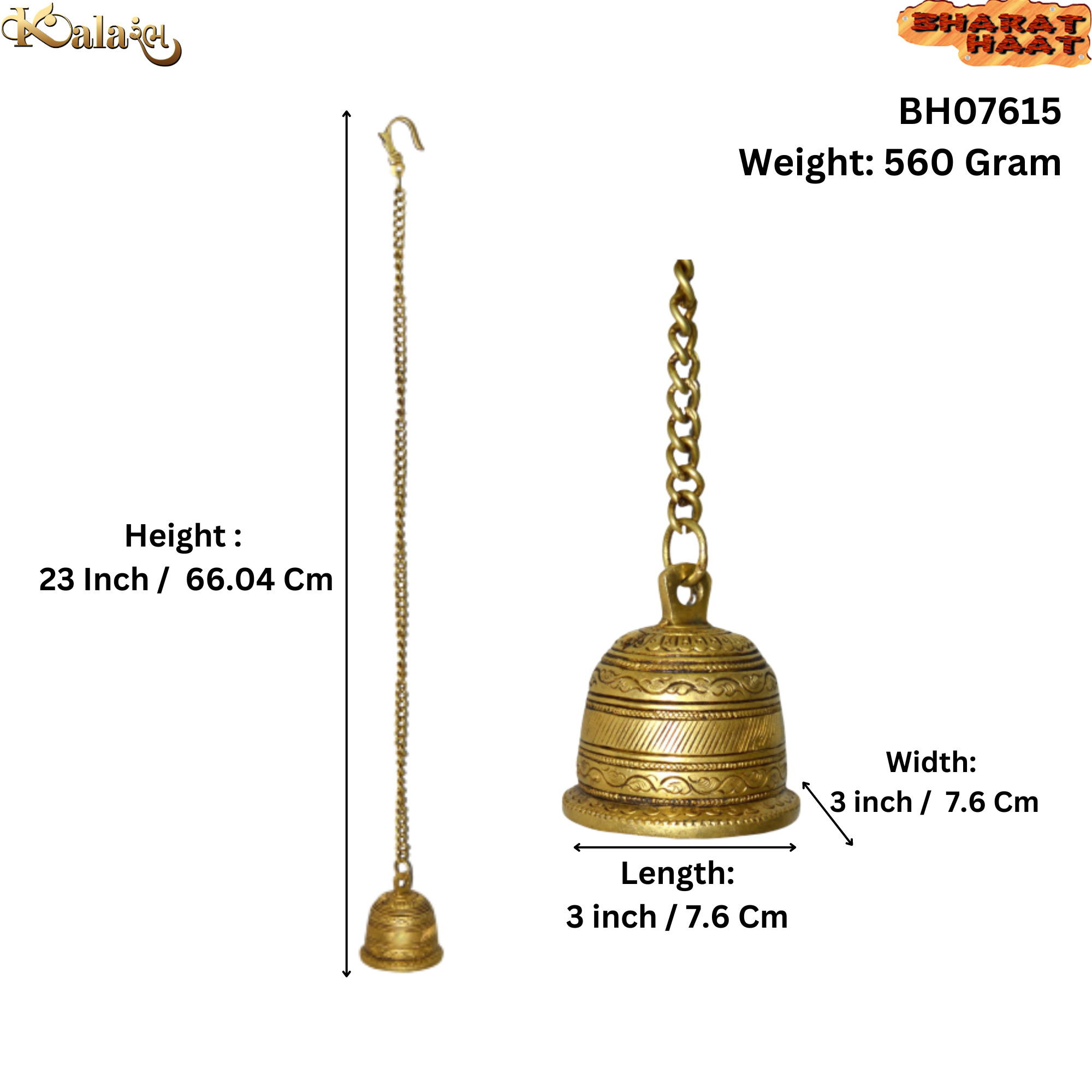 Its compact yet graceful design allows it to fit easily on pooja shelves, altars, or meditation corners, adding both decorative and spiritual value. The handcrafted detailing and polished antique finish highlight traditional Indian craftsmanship, making this brass bell a beautiful devotional and decorative item.