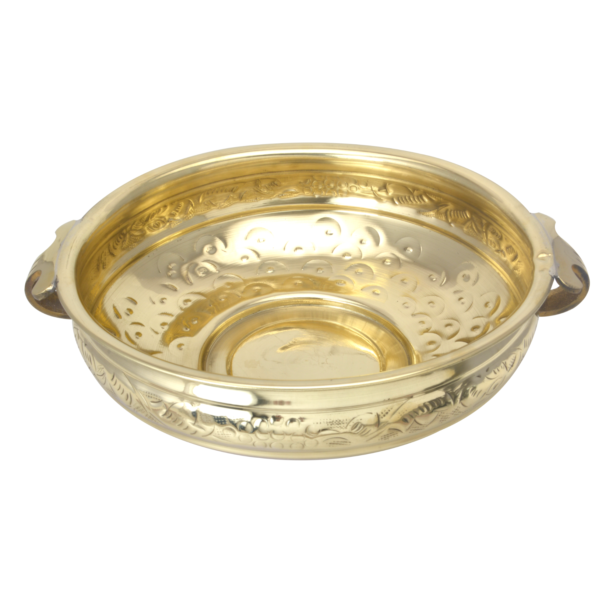 Design: Beautifully handcrafted Brass Uruli with a classic wide-rimmed design, symbolizing prosperity and elegance in Indian décor.