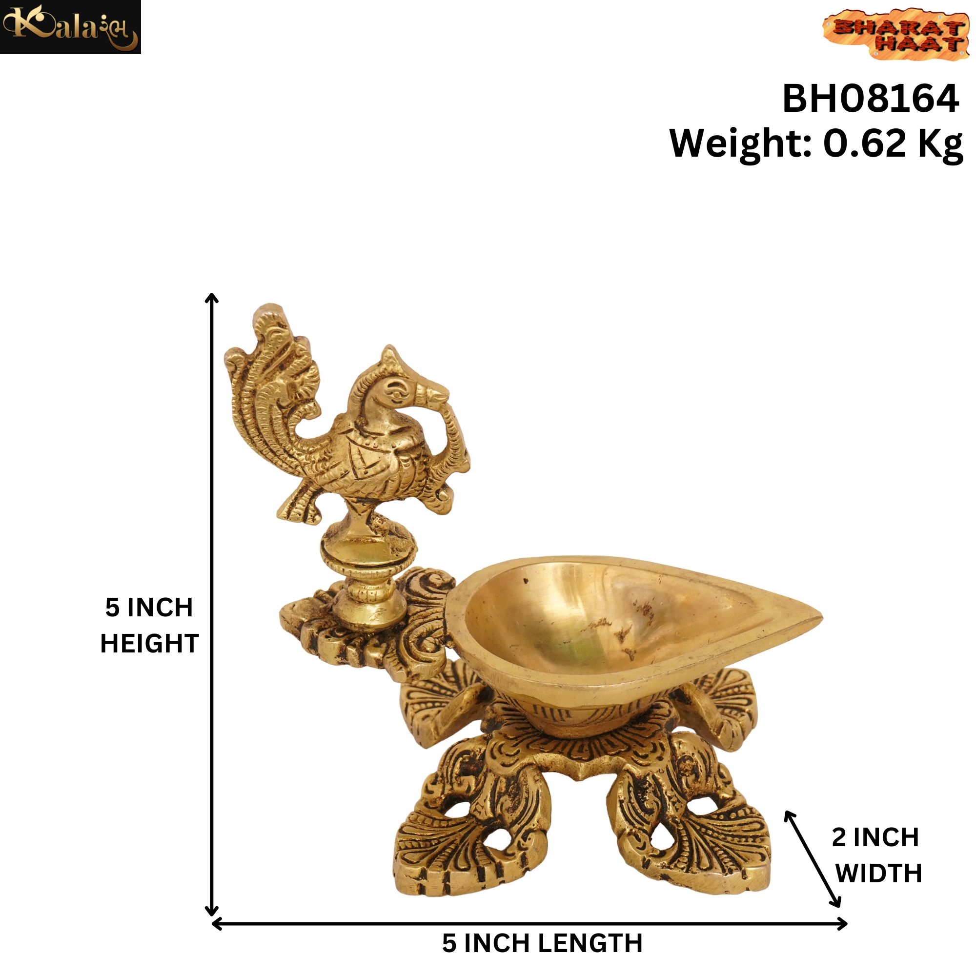 With dimensions of 5 x 2 x 5 inches and a weight of 620 grams, this compact yet striking piece is perfect for placement on home altars, pooja rooms, living spaces, or festive décor. The smooth golden finish and fine detailing reflect the masterful craftsmanship of skilled Indian artisans, making it not just a diya but also a work of art.