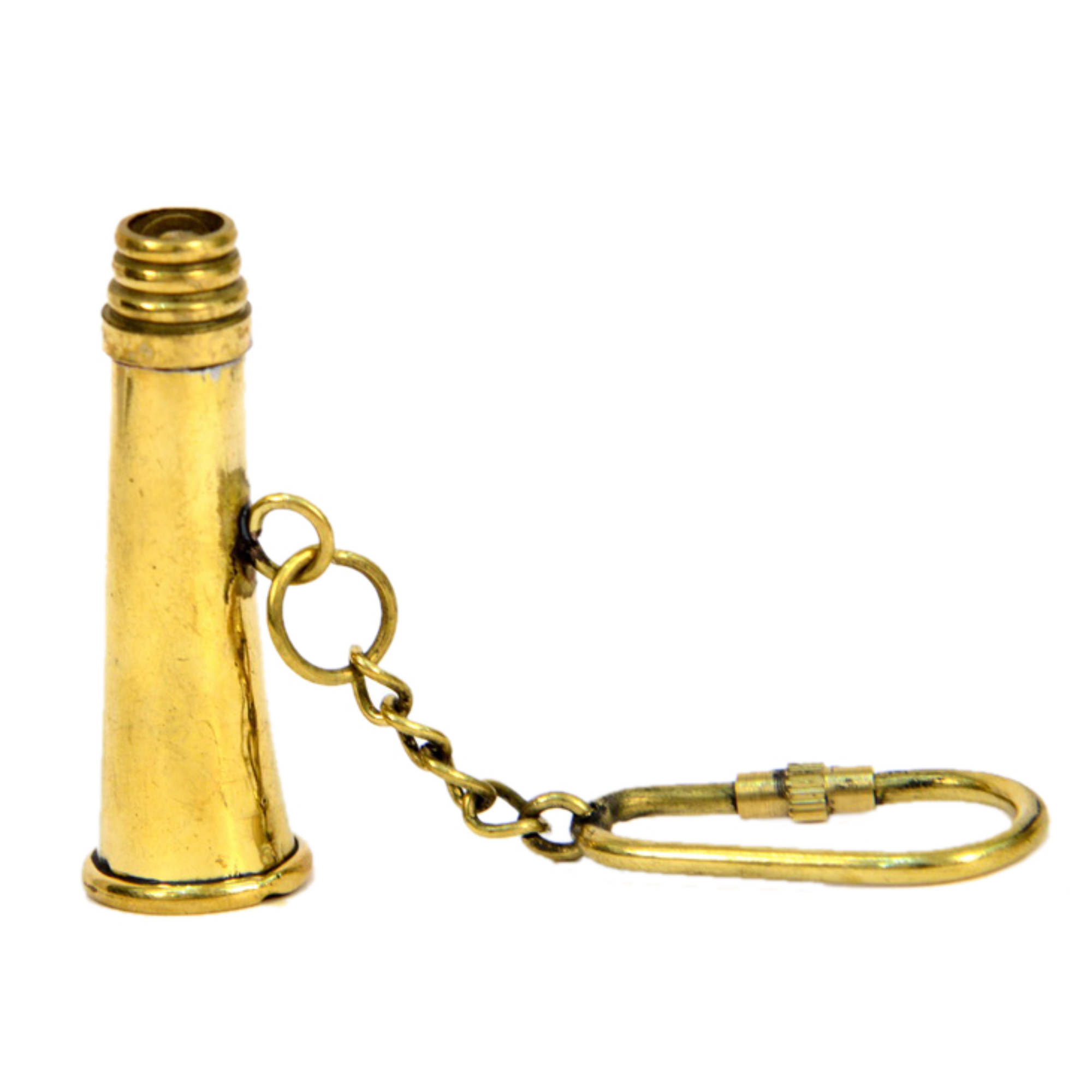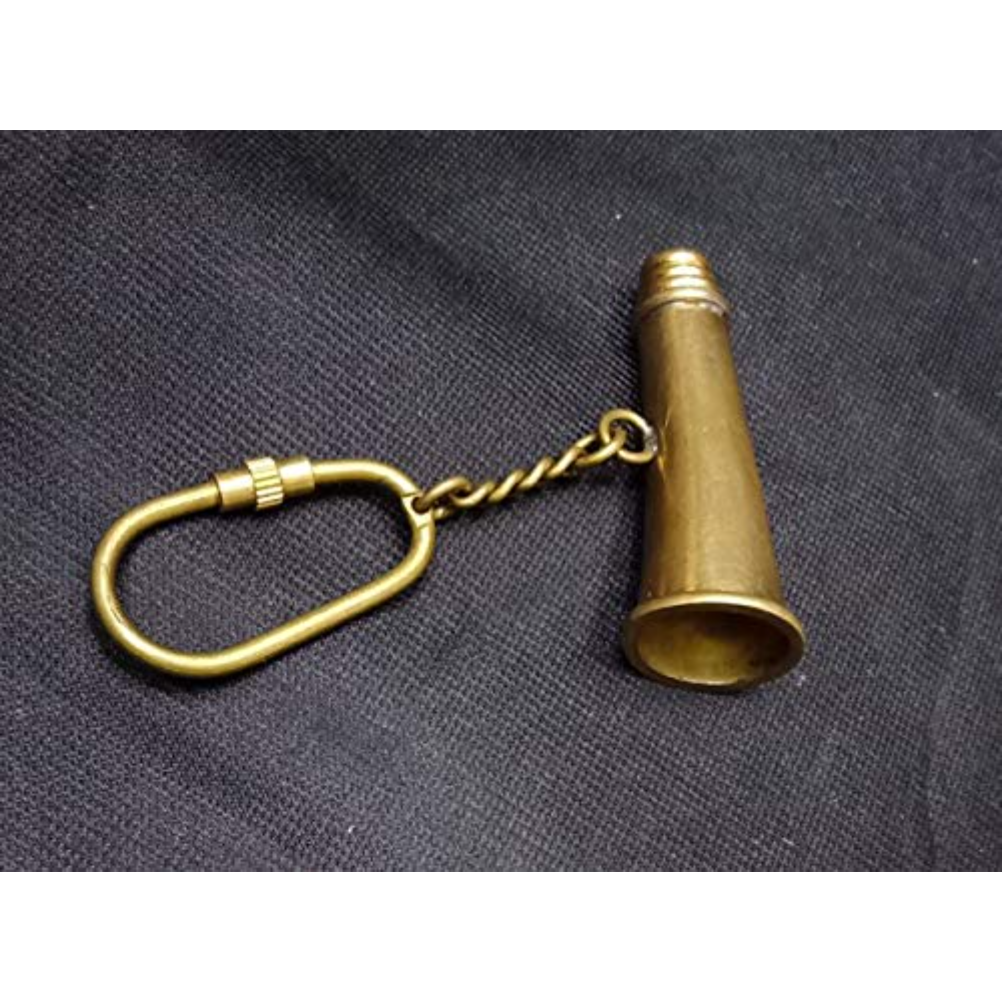Brass Bugla Small Key Chain – 2.3 x 0.5 x 3.3 Inch, 24 Gram. A beautifully handcrafted brass keychain in the shape of a bugla, perfect for adding a traditional and musical charm to your keys or gifting to loved ones.