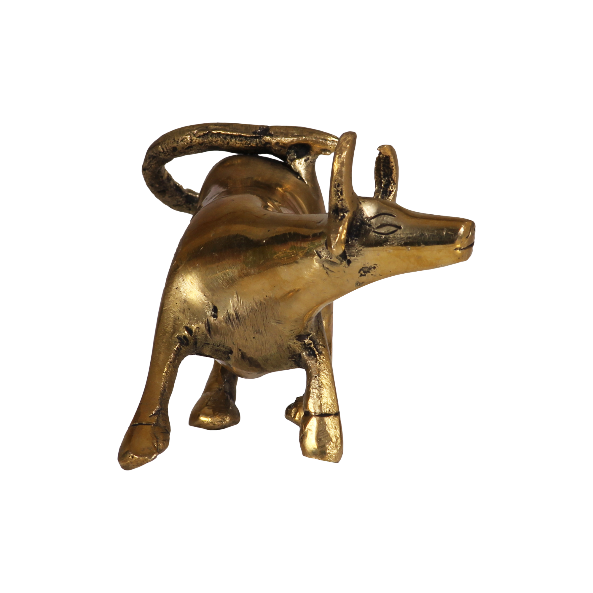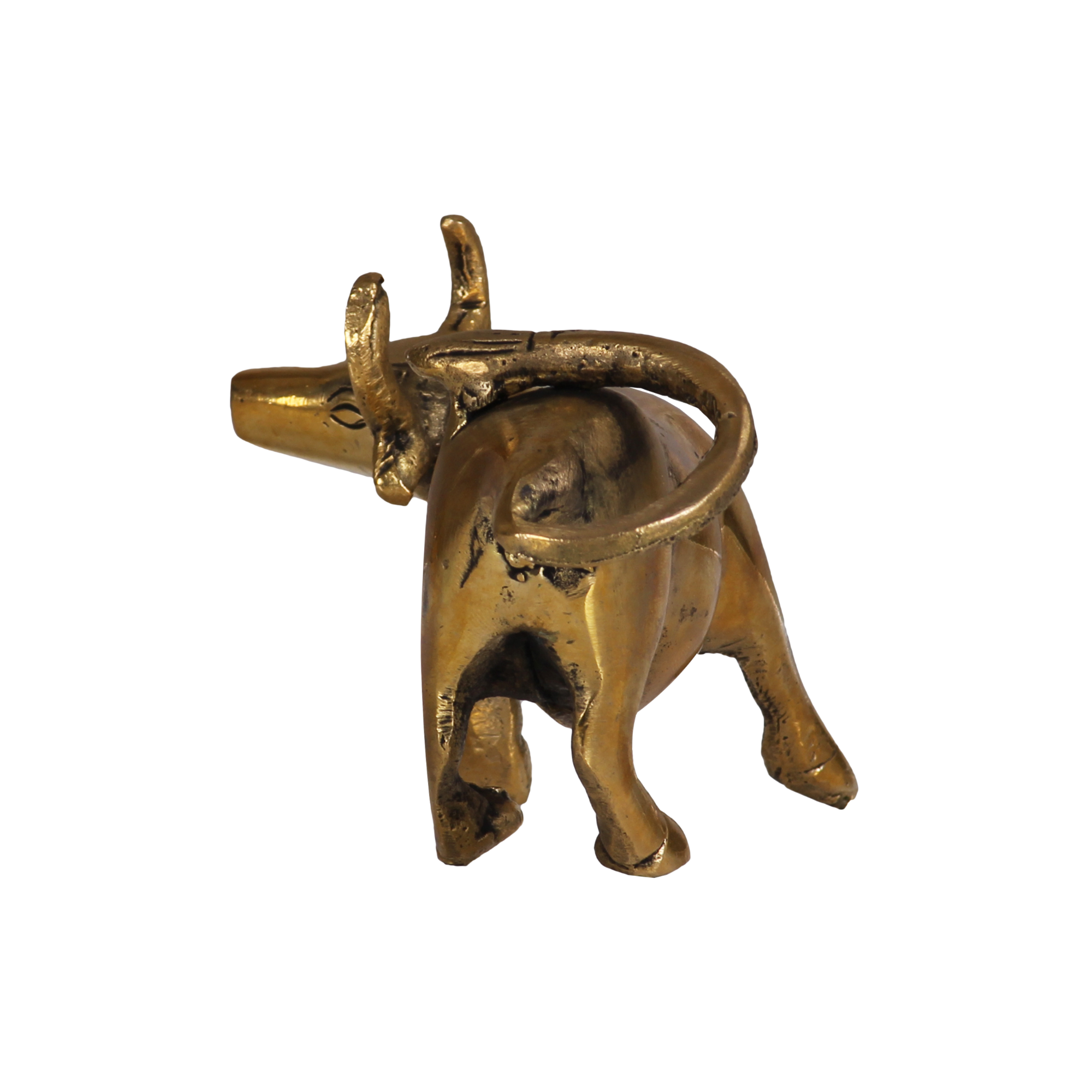 Compact brass Bull statue, perfect for home decoration or pooja setup, crafted with fine detailing.
