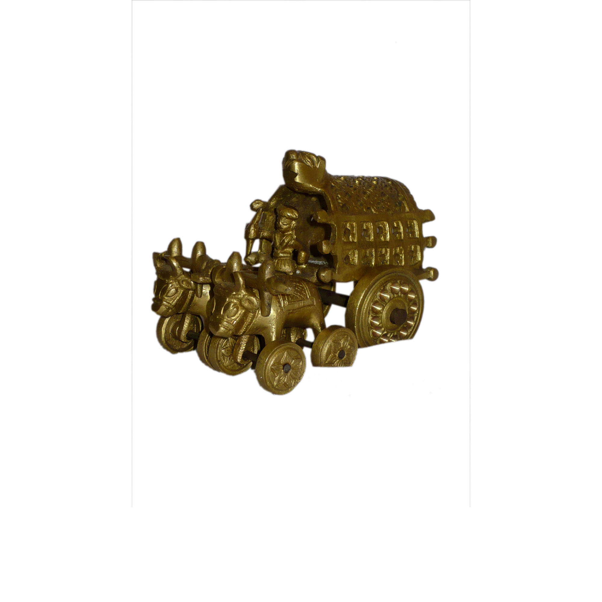 Design: Beautifully crafted brass bullock cart representing Indian rural heritage and craftsmanship.