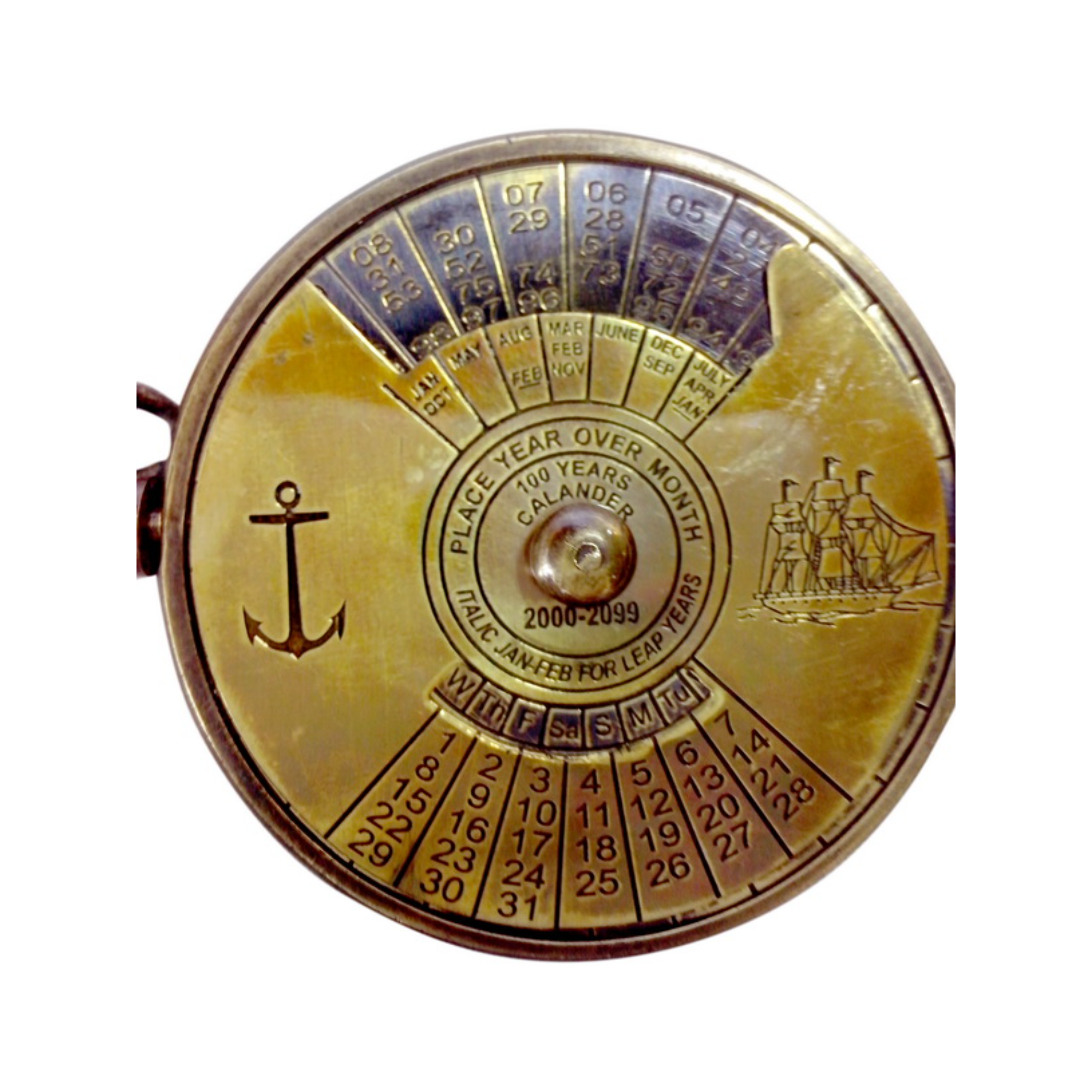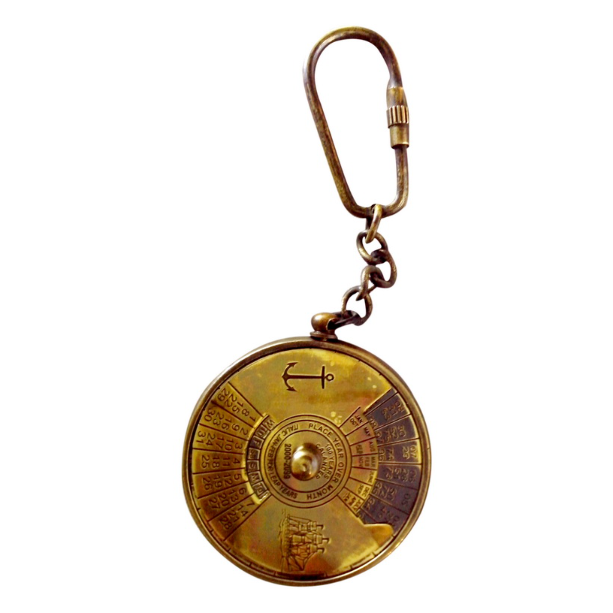 - Functional Calendar Keychain - Brass calendar key ring with perpetual date display for easy date tracking