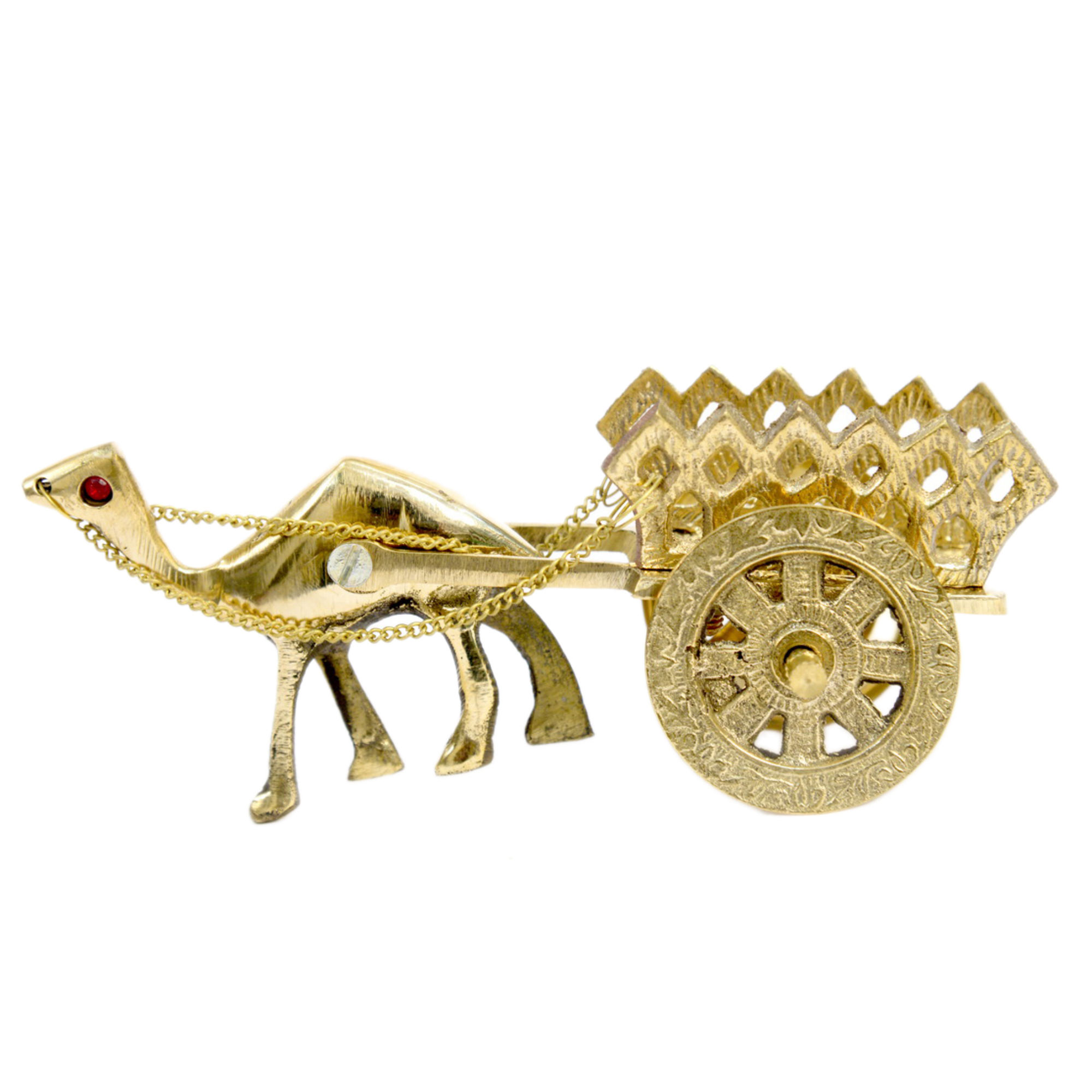 This Brass Camel Cart is a stunning piece of Indian craftsmanship, showcasing the beauty of traditional art in brass form. With dimensions of 5.8 x 2.4 x 2.9 inches and a weight of 190 grams, it’s a lightweight yet durable decorative item. The detailed camel and cart design symbolizes cultural heritage and rural artistry, making it a perfect addition to living spaces, offices, or showcase collections. Its antique brass finish adds a vintage charm to your décor.