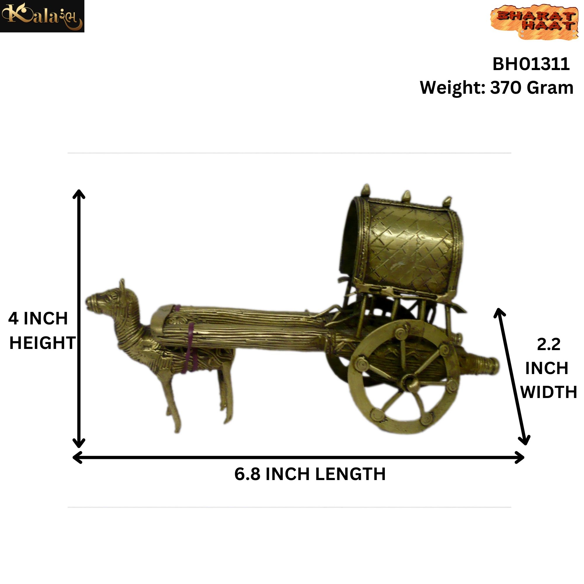 Handcrafted Brass Camel Carts Bastar Art Medi – 6.8-inch decorative brass camel cart figurine, ideal for shelves, living spaces, or gifting.