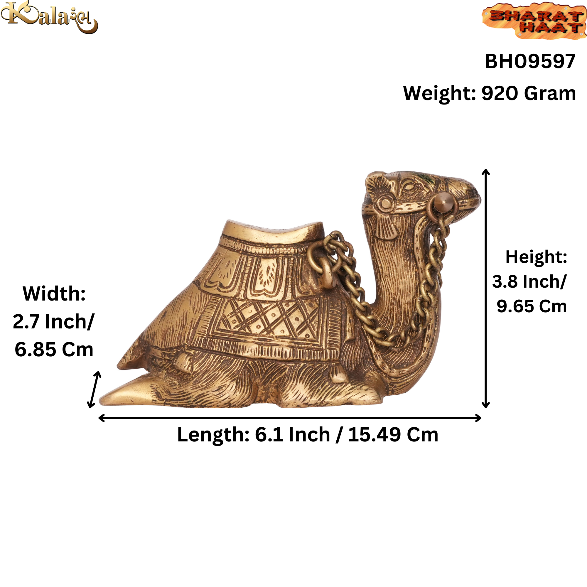 Add a touch of traditional elegance to your home or office with this Brass Camel Sitting figurine, handcrafted from pure brass. The camel in sitting posture represents strength, patience, and prosperity, making it an auspicious decorative piece for your space.