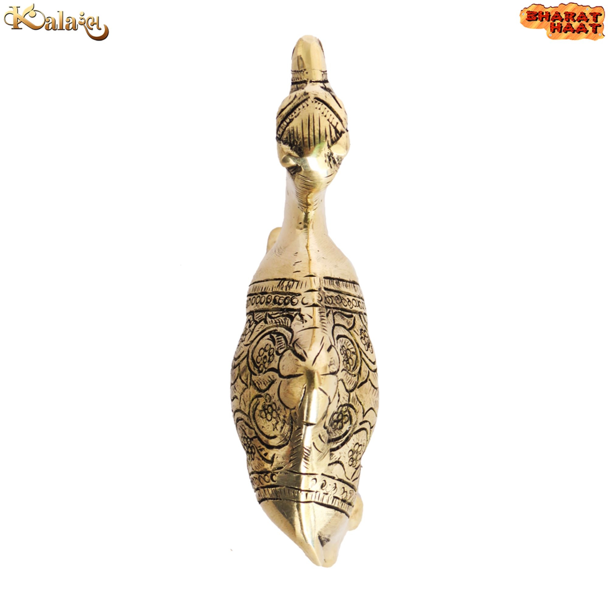 With a size of 5.4 x 1 x 4.5 inches (13.71 x 2.54 x 11.43 cm) and a solid weight of 630 grams, this brass camel boasts intricate detailing and a polished golden finish that radiates timeless beauty. Whether displayed on your tabletop, showcase, or office desk, it adds a regal and artistic appeal to any space.