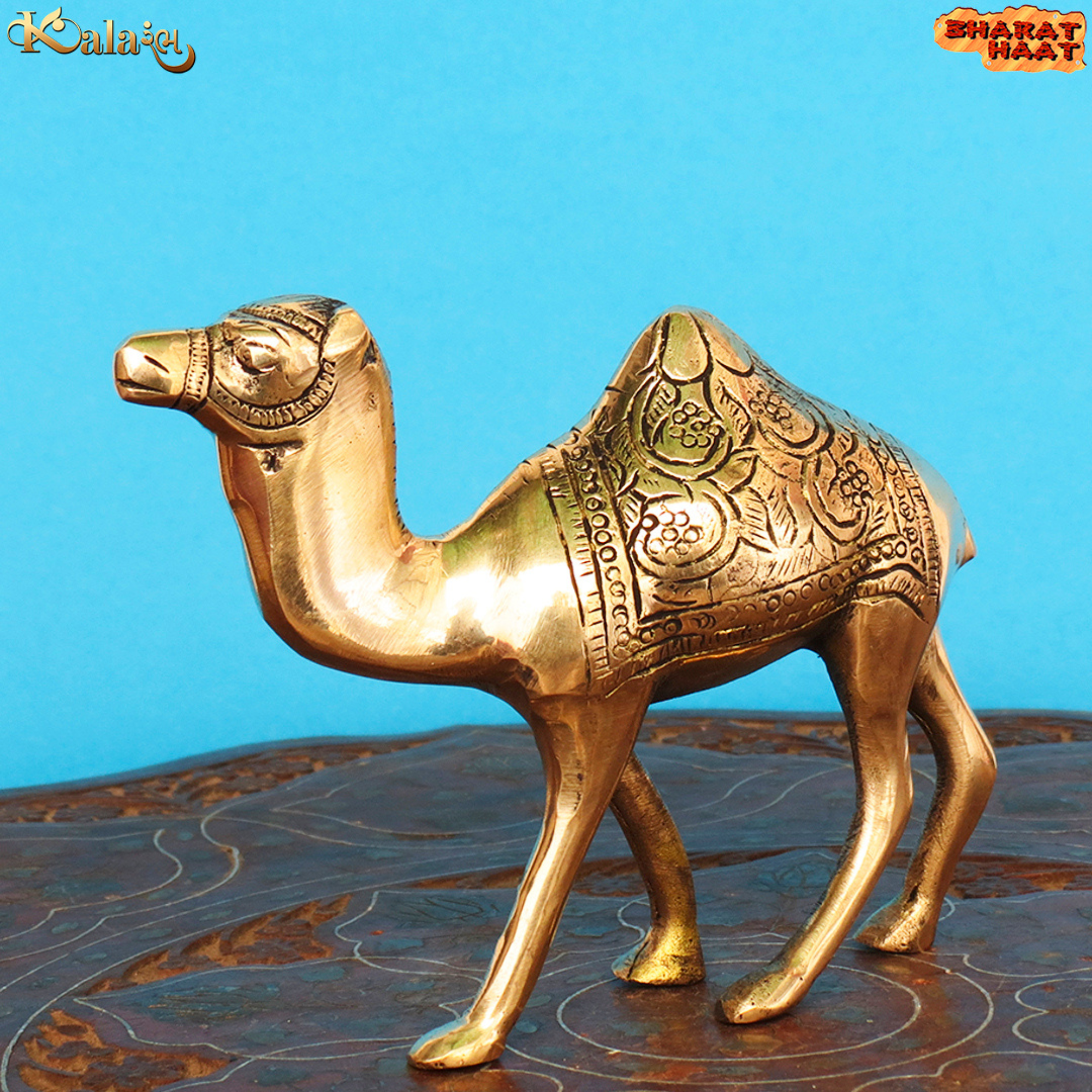 The camel is also considered a symbol of good luck and protection, believed to bring stability and patience into your life. Its handcrafted finish reflects the rich heritage of Indian metal art, making it a perfect piece for collectors and décor enthusiasts alike.