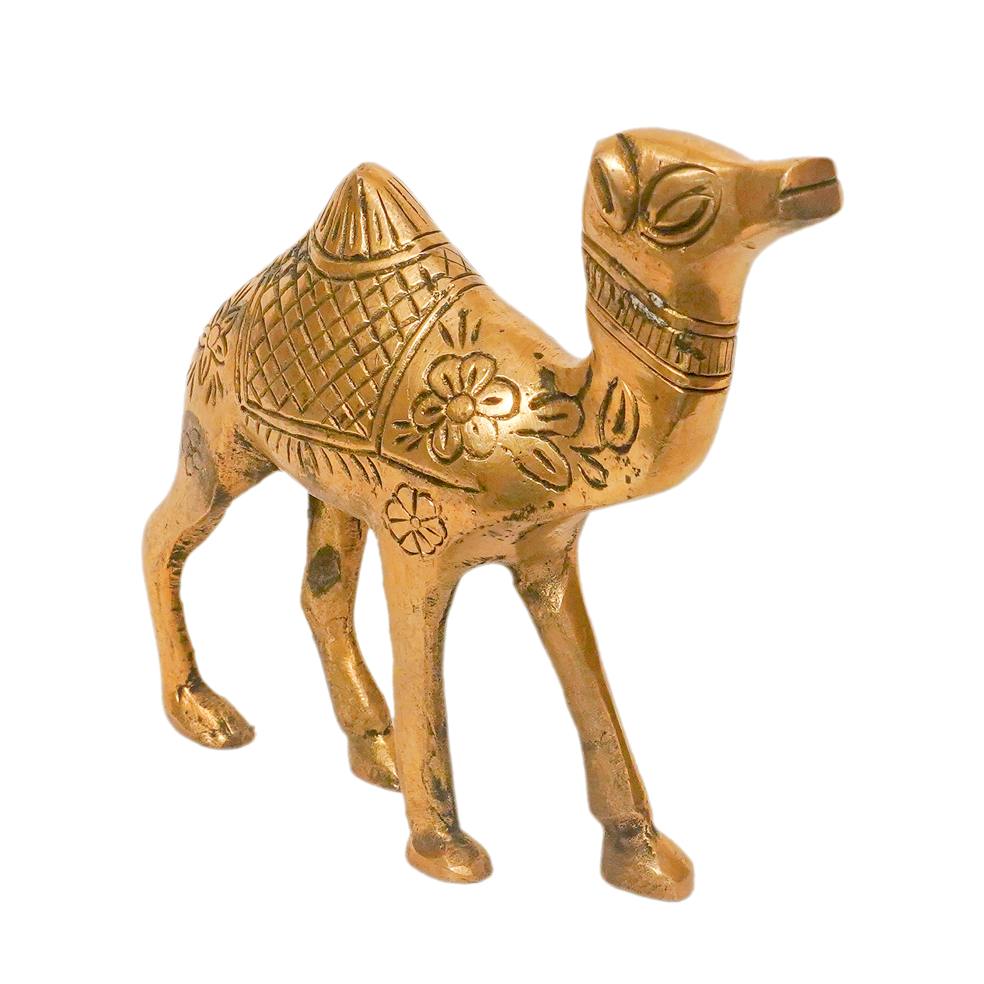 - Handcrafted brass camel with intricate detailing