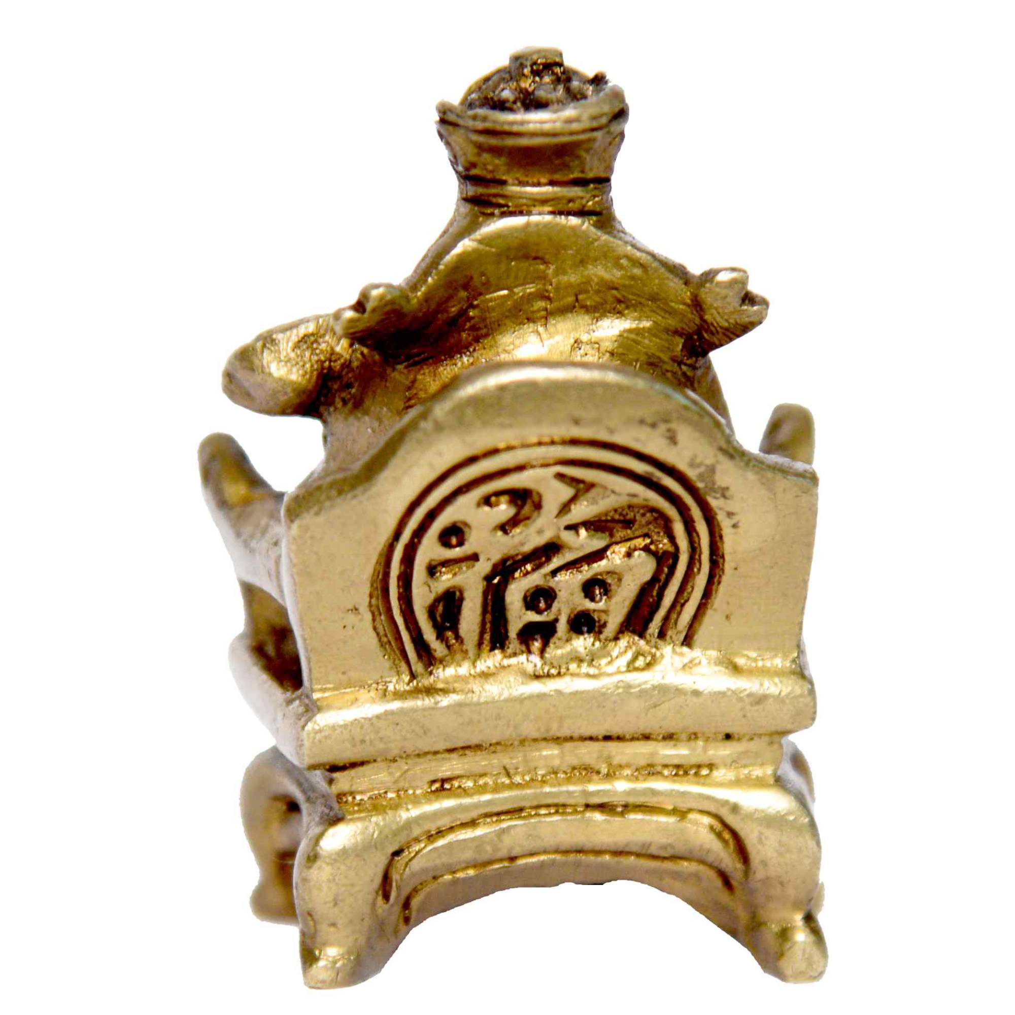 The good luck man, often depicted with a cheerful expression and traditional attire, is a beloved symbol in Chinese culture for attracting abundance and warding off negative energy. The golden brass finish enhances its auspicious nature and adds decorative appeal.