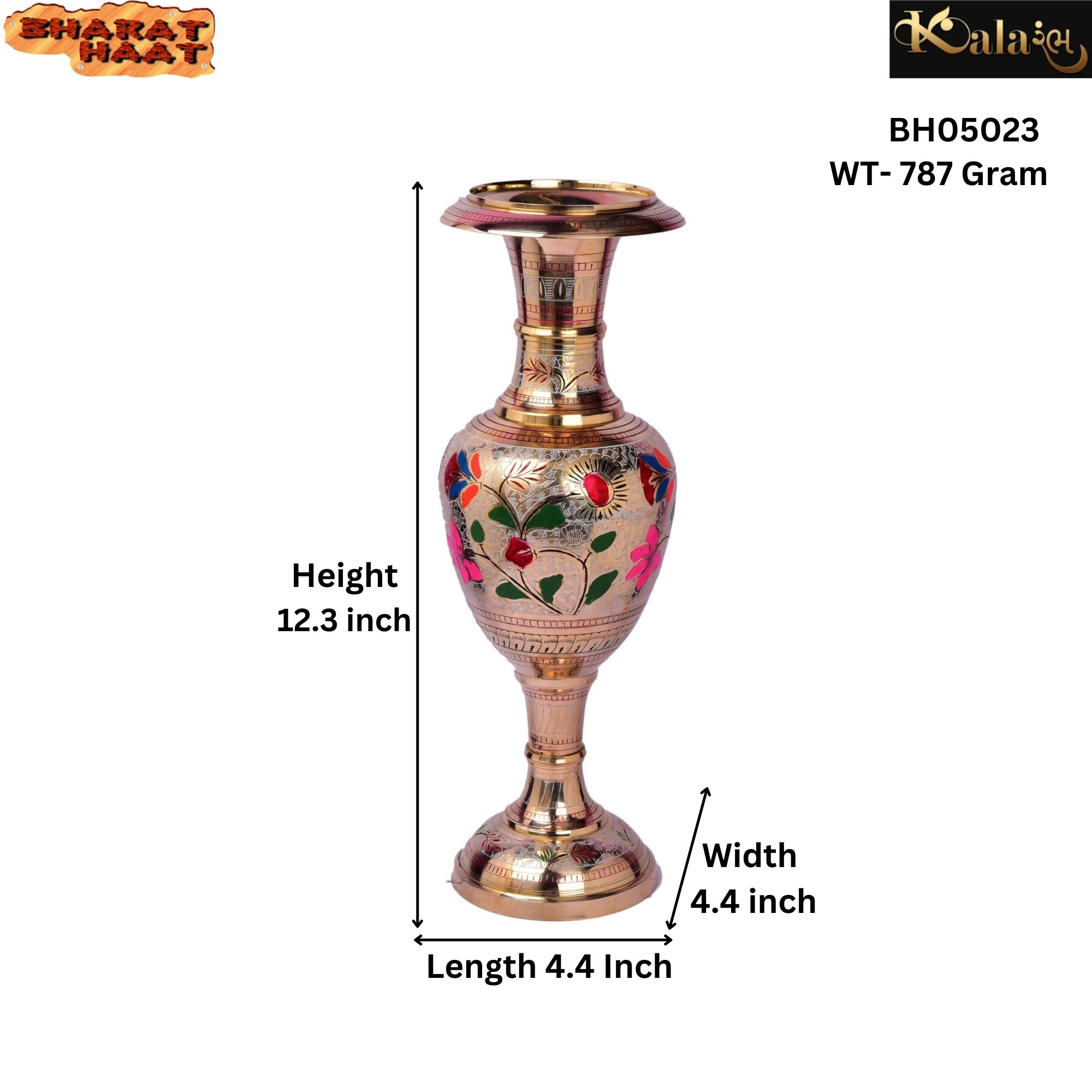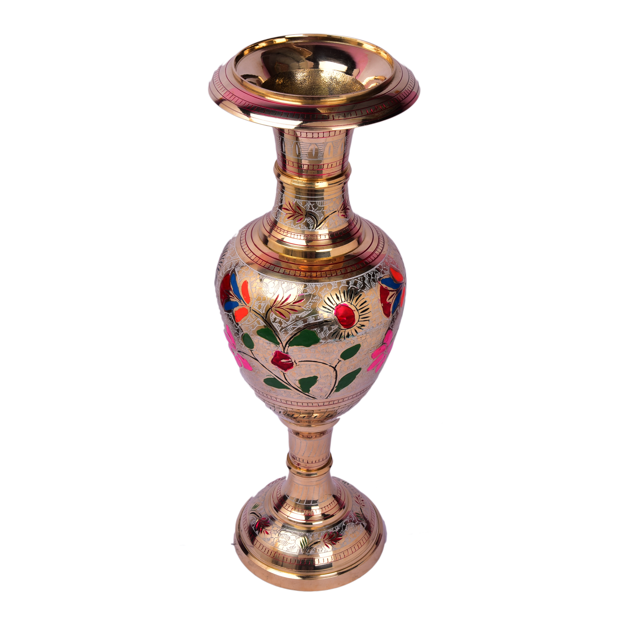 Medium brass flower pot with vibrant colour design, ideal for home décor and gifting.
