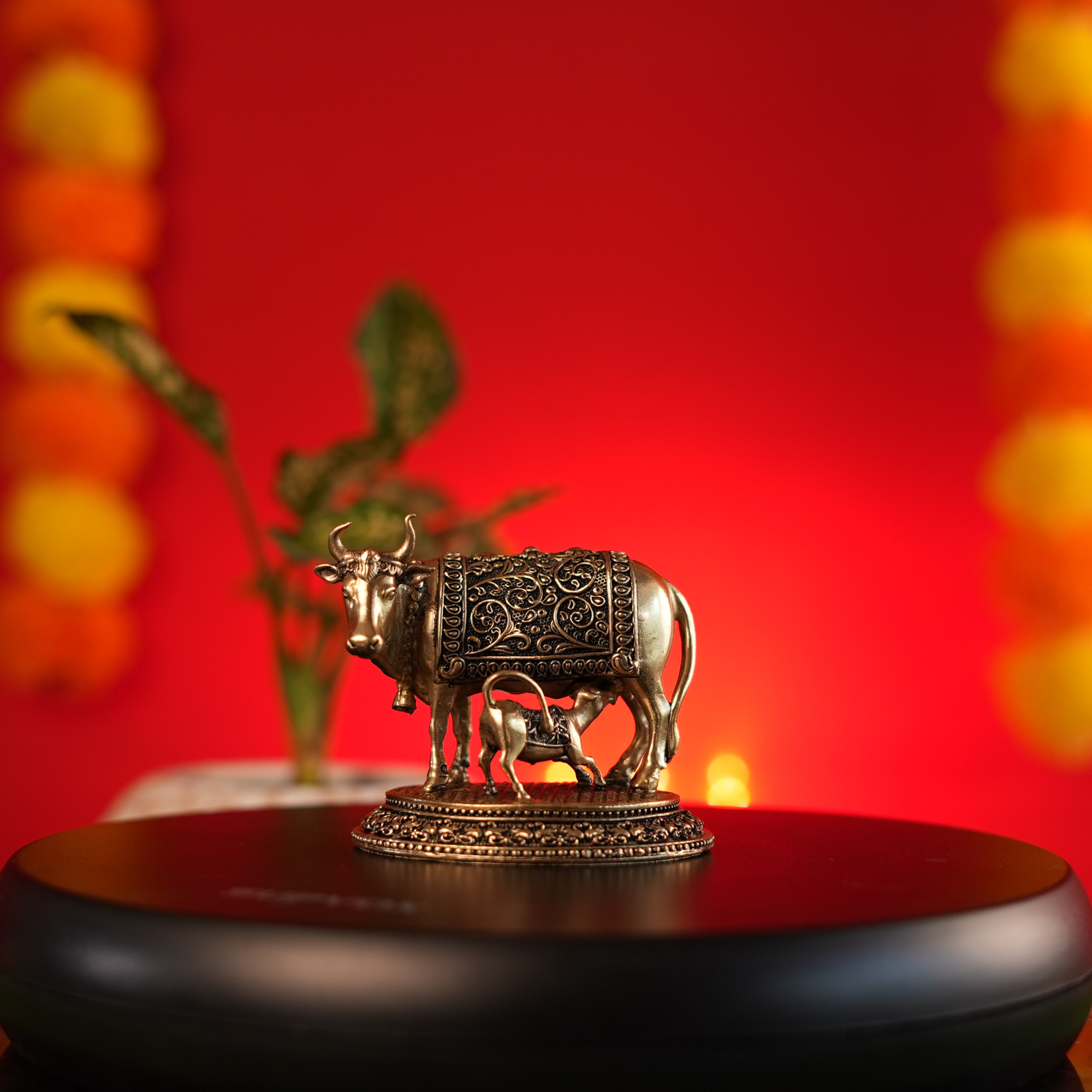 Brass Cow & Calf Idol – A Sacred Symbol of Nurture, Prosperity & Devotion