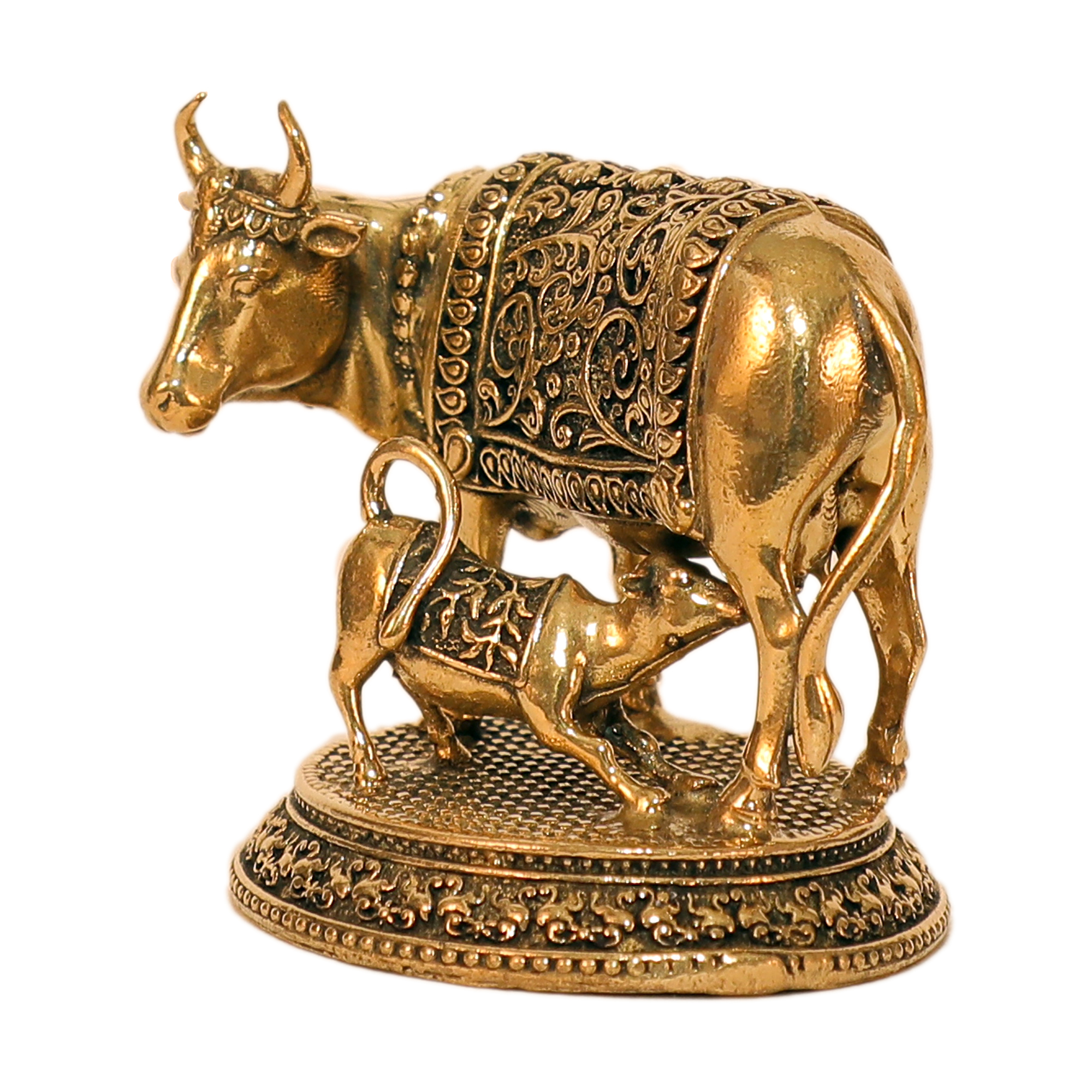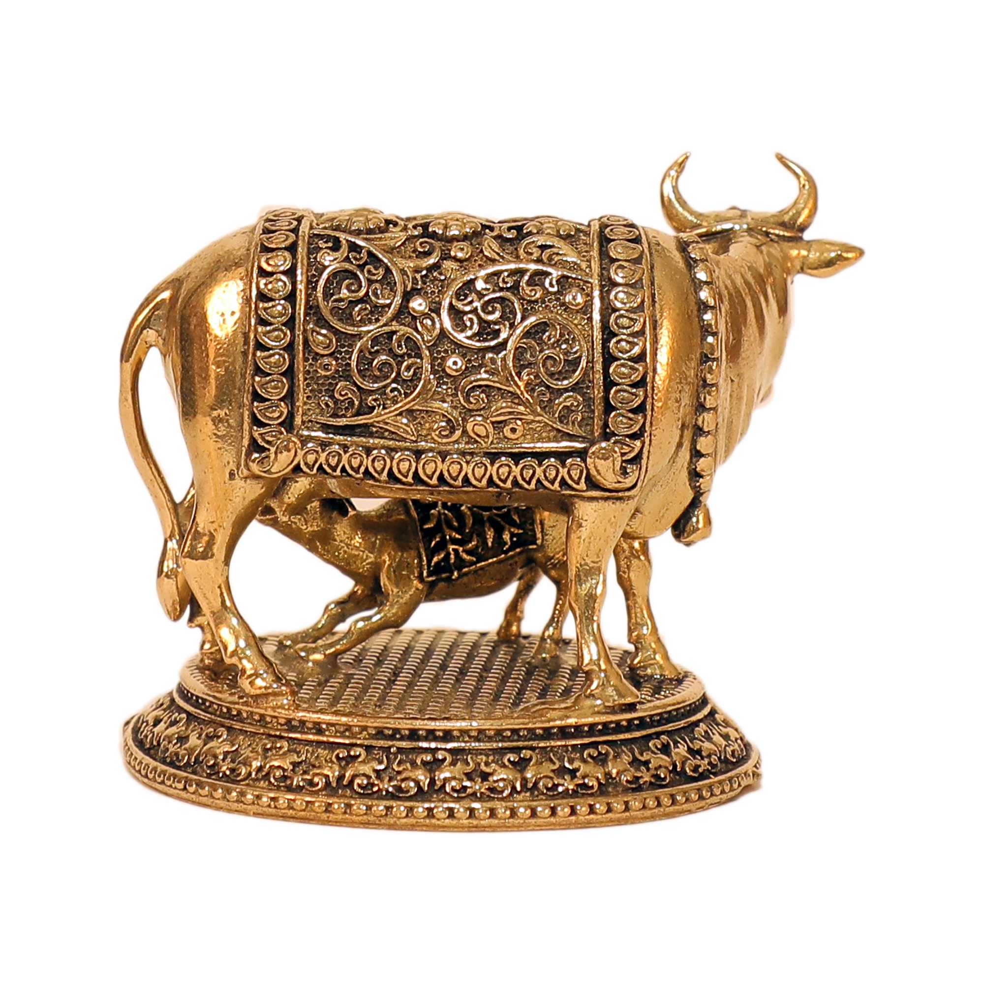 Depicts sacred Kamdhenu Cow & Calf symbolising prosperity and abundance.