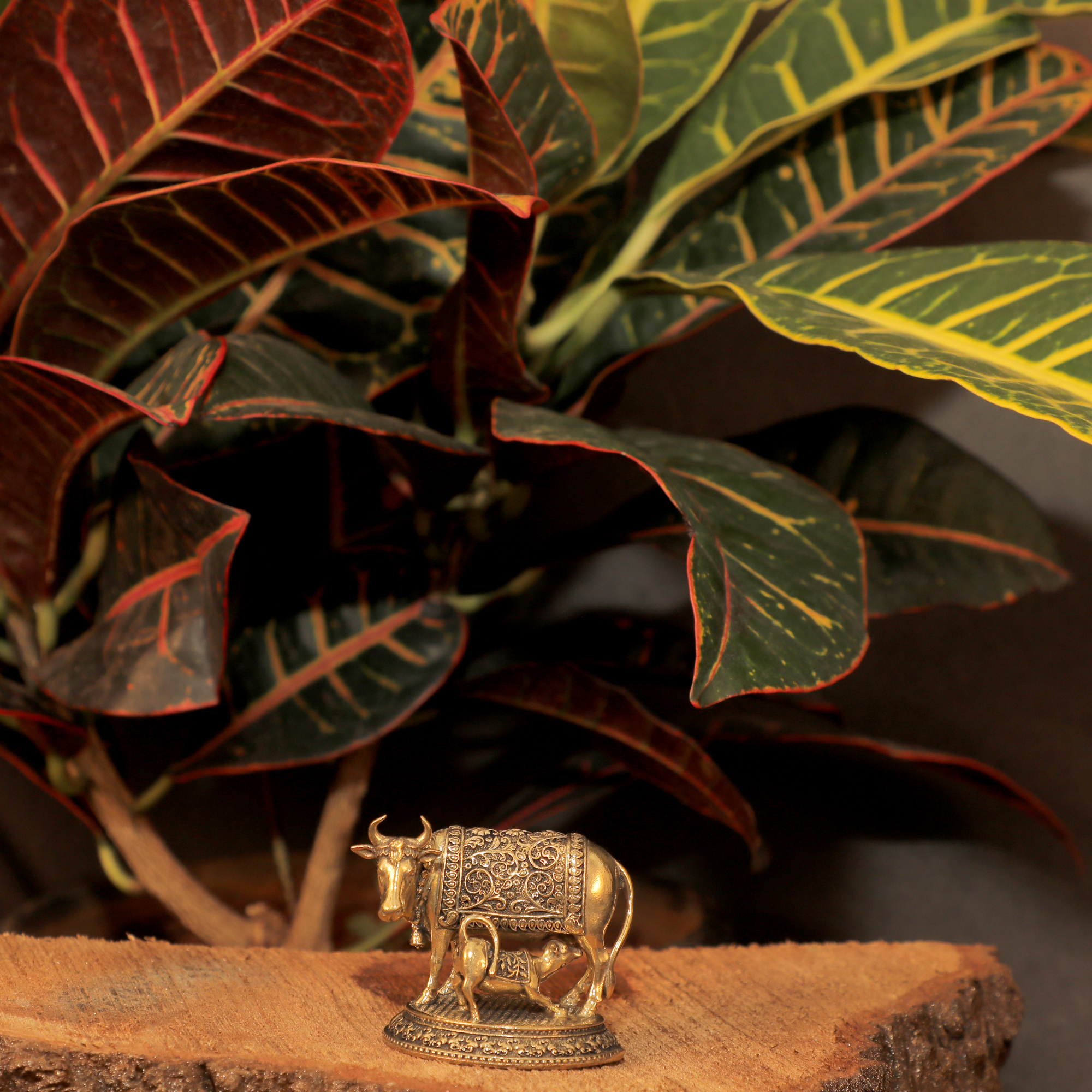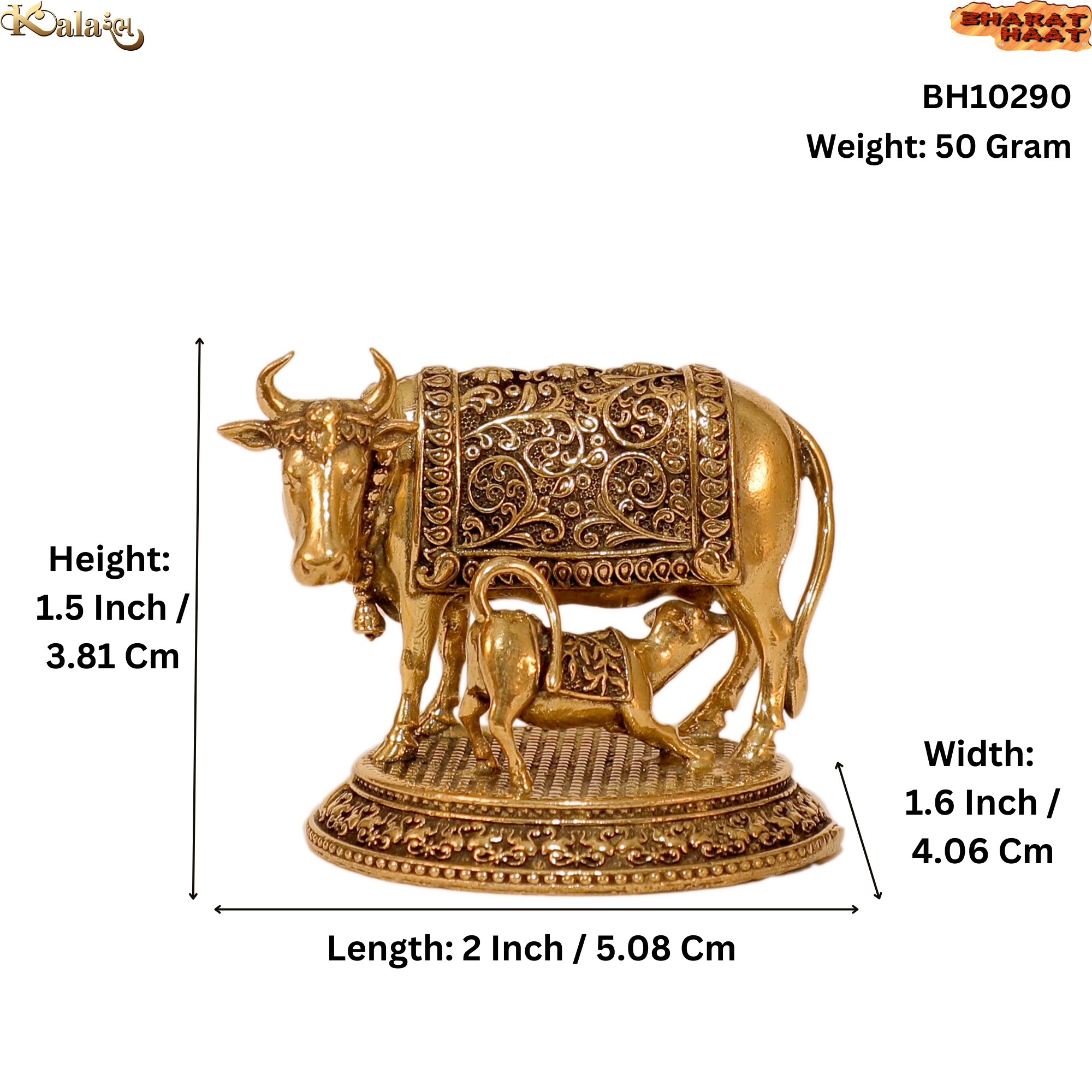 Mini Handcrafted Brass Cow & Calf Idol | Kamdhenu Statue for Home Temple & Puja Décor | Pure Brass Murti, Invite divine blessings into your home with this Mini Handcrafted Brass Cow & Calf Idol, representing the sacred Kamdhenu, a symbol of prosperity, abundance, and nurturing energy. Made from high-quality solid brass, this compact statue measures 2 x 1.6 x 1.5 inches and weighs 50 grams, making it perfect for home temples, office desks, or small pooja spaces.