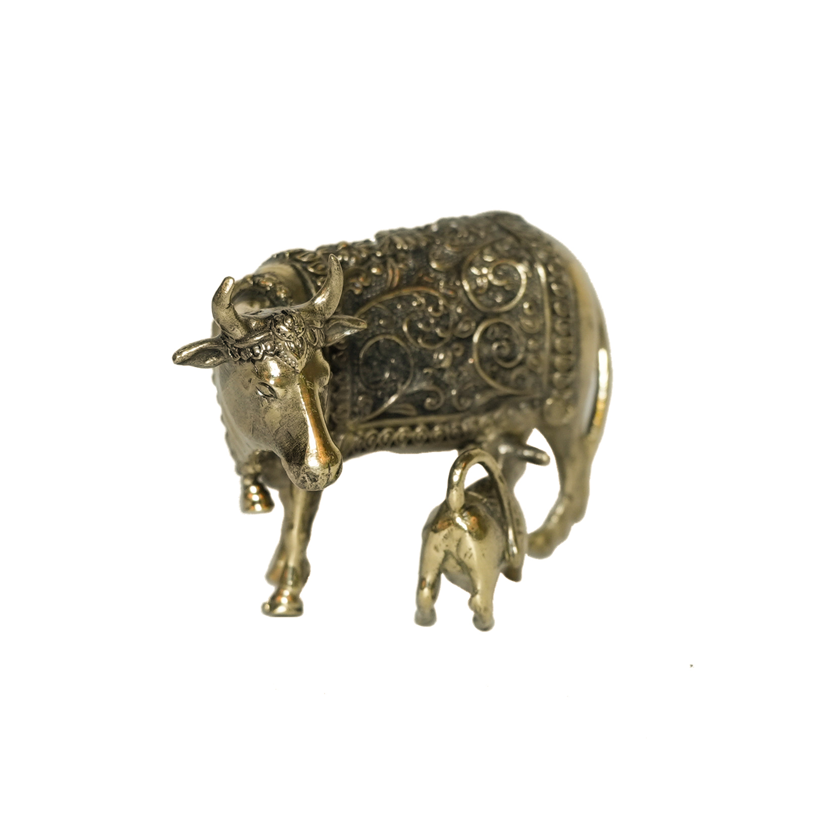 Brass Cow & Calf Idol – Handcrafted Kamdhenu Statue for Pooja & Décor, 240g, Bring home divine blessings with this beautifully handcrafted Brass Cow & Calf idol (Kamdhenu), a sacred symbol in Hinduism representing motherhood, prosperity, and abundance. The cow, considered a holy and nurturing figure, is believed to fulfill wishes and bring peace, wealth, and positivity into one’s life.