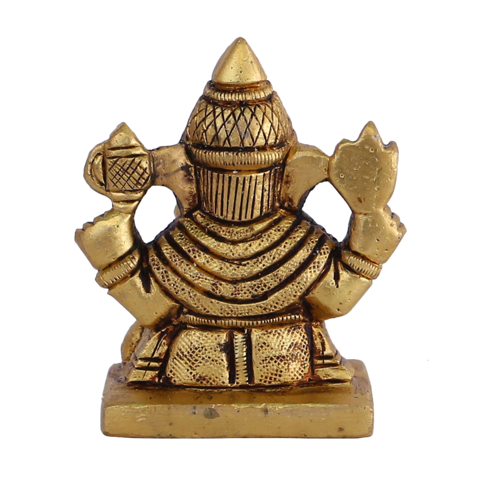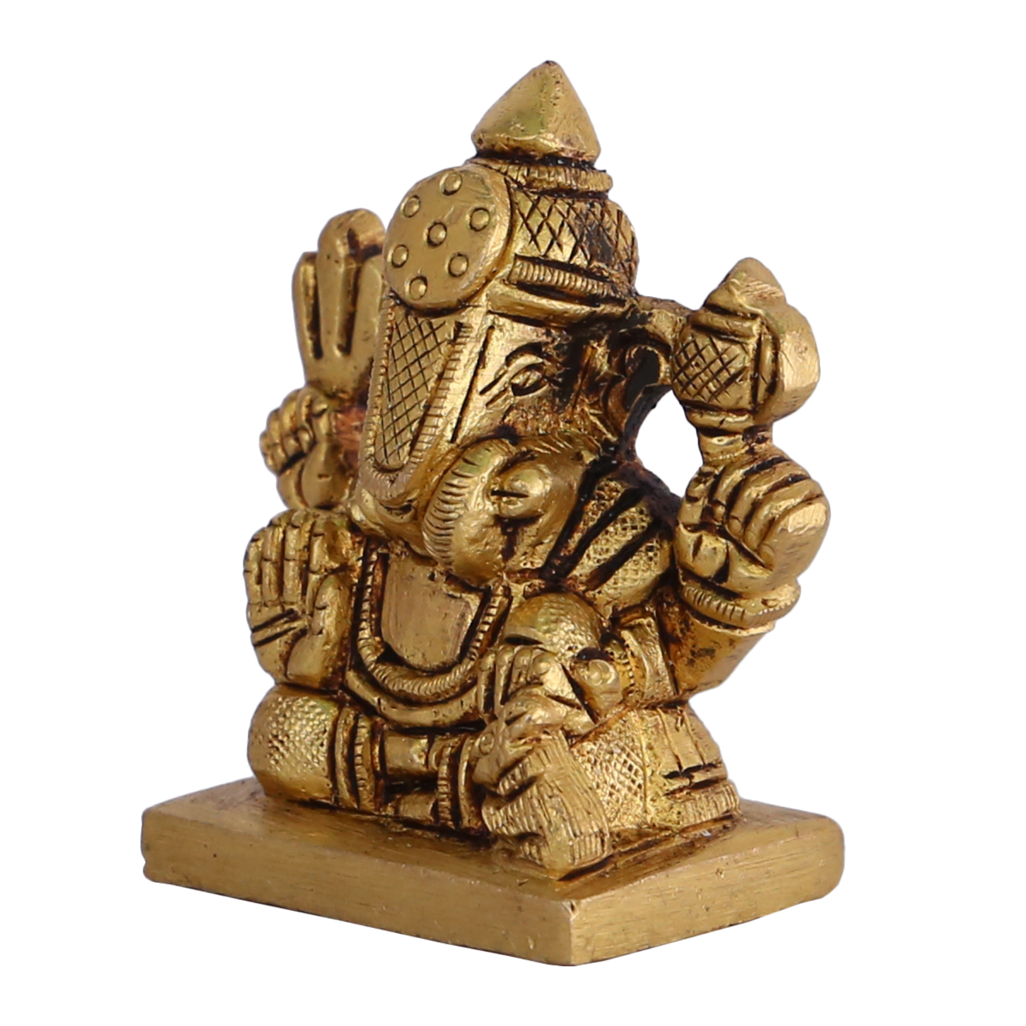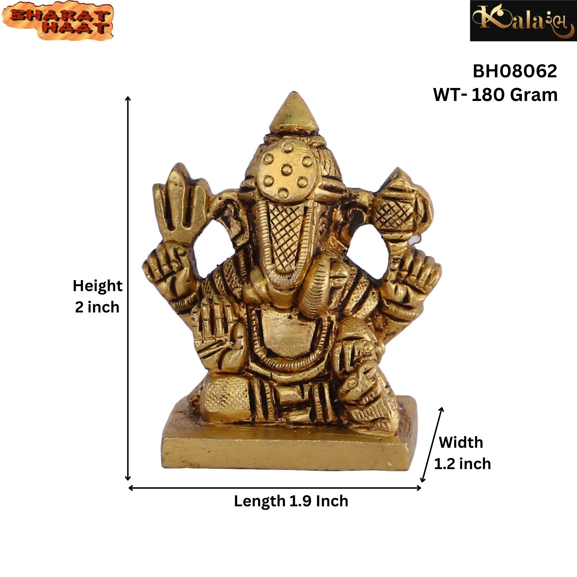This beautifully crafted Brass Dagdu Ganesh idol is inspired by the iconic Dagdusheth Ganapati. With compact dimensions of 1.9 x 1.2 x 2 inches (4.82 x 3.04 x 5.08 cm) and a weight of 180 grams, it is perfect for pooja rooms, office desks, cars, or gifting.