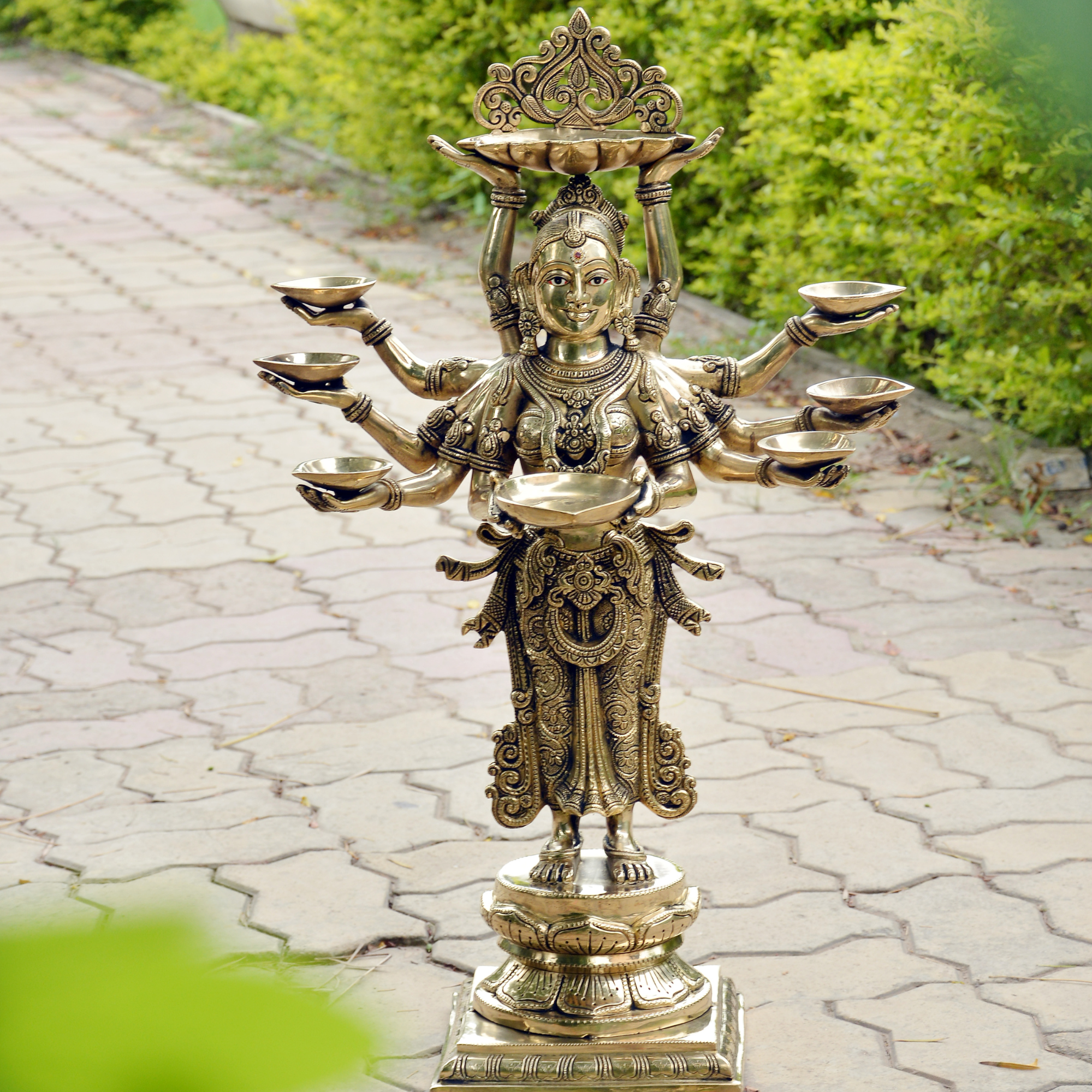 Brass Dashabhuja Deep Lady Statue KBH06710