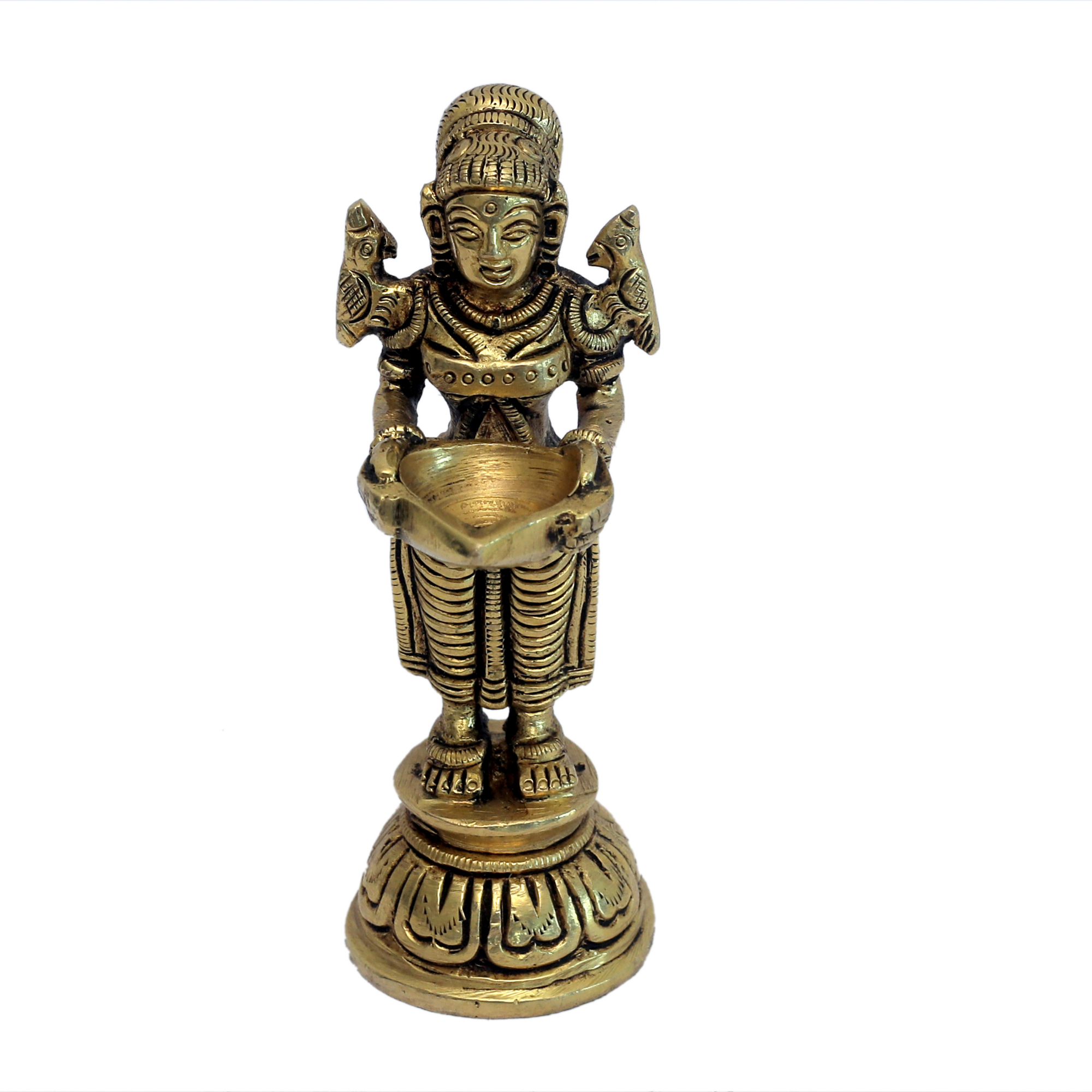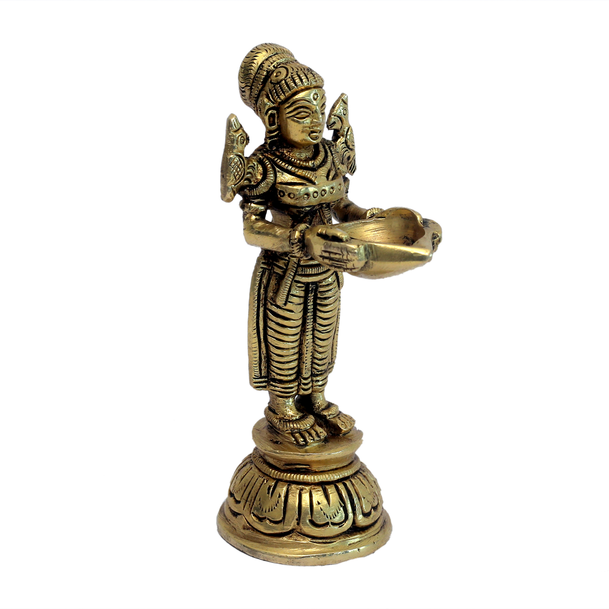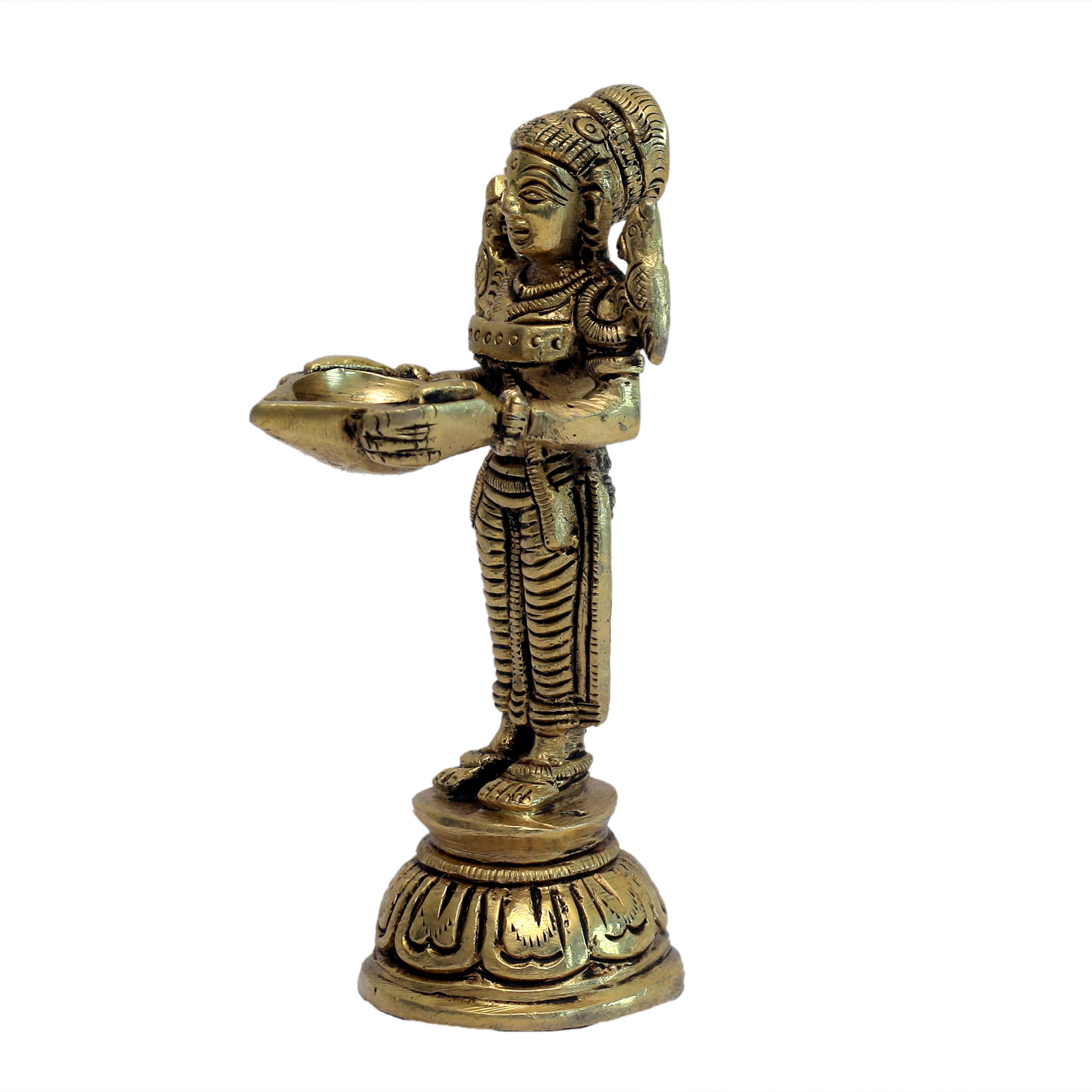 Traditional Elegance: Classic lady-shaped diya with round base adds charm to spiritual and festive décor.