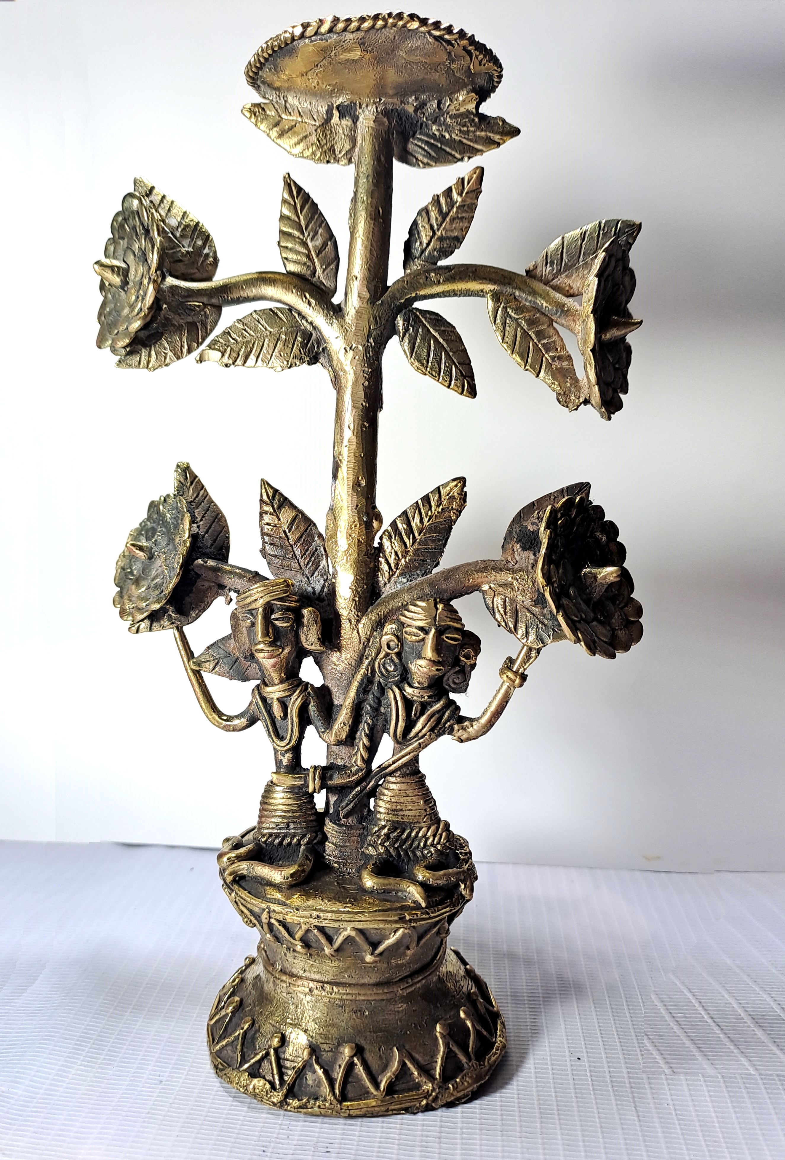 Golden Brass Deepak for pooja room, a marriage & some special festival or occasions, expertly handcrafted by the artisans, in this product a tree situated on a base and two people is seated in the shadow of tree and on the top of the tree the Deepak is situated. Deepak is a must on most occasions. This is deep and will hold more amount of oil which in turn will allow the deepak to light for a longer duration. The brass deepak has a unique design and is simple to use, it maintains the rich shine of the metal, a timely brass polish is recommended. The sturdy brass deepak is surely a one-time buy and will serve you for ages. The heavy base deepak is stable and can be placed on any flat surface while it lights brightly.