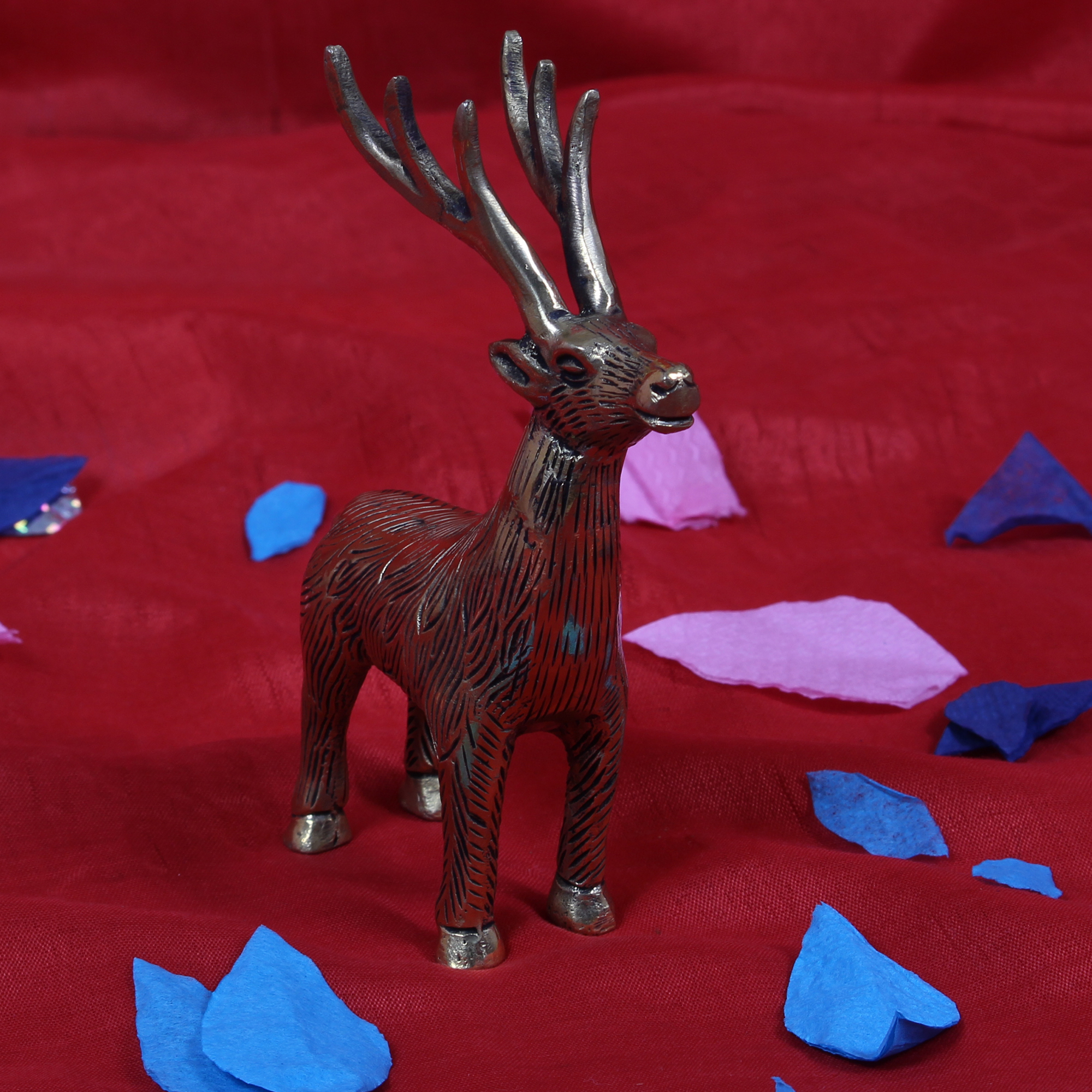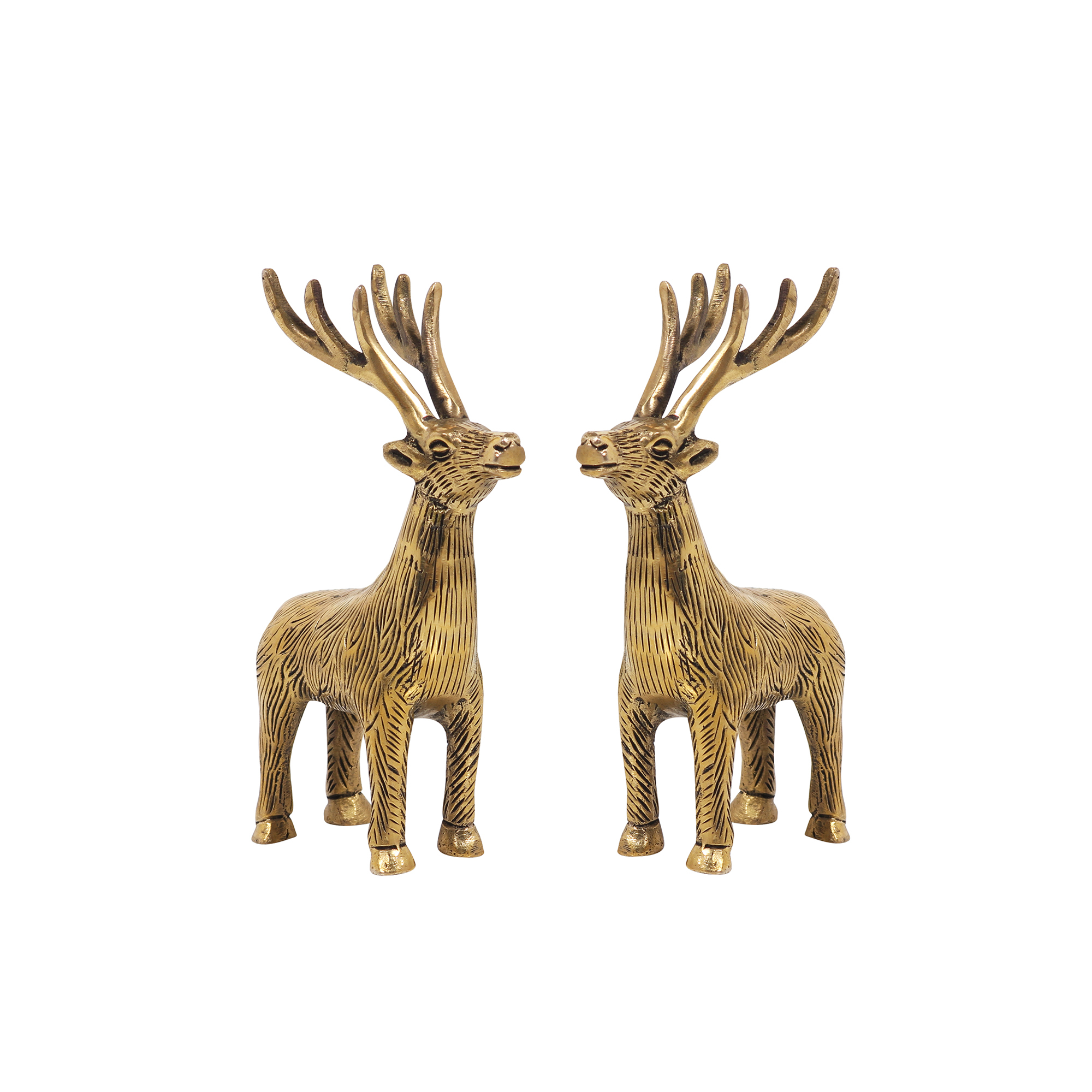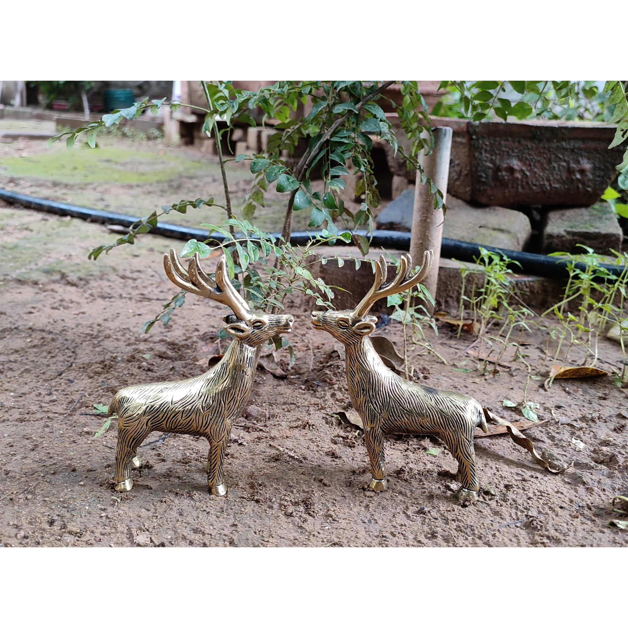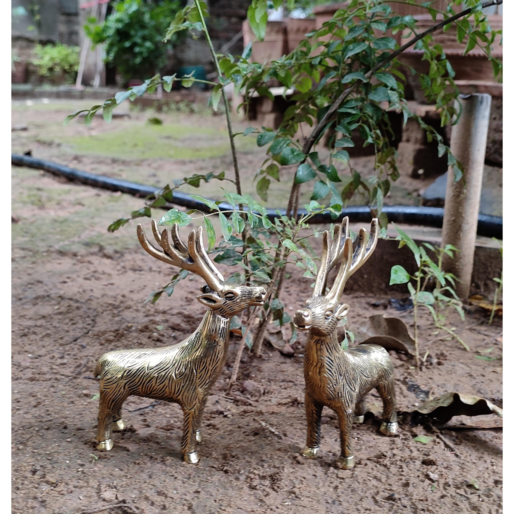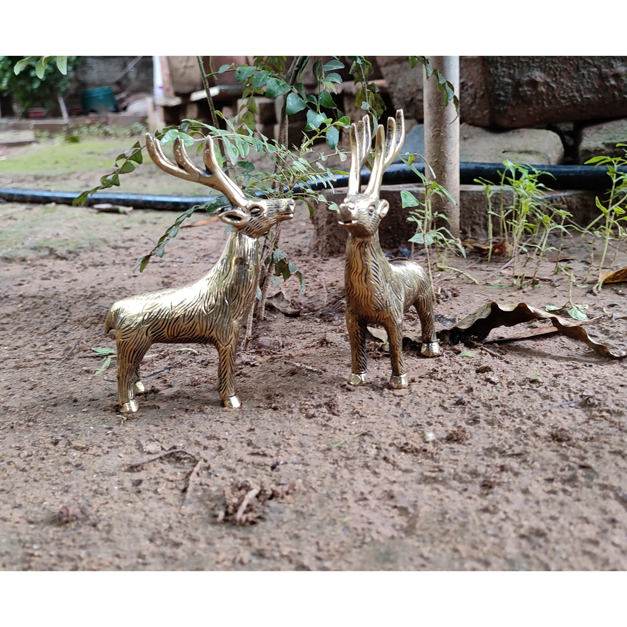 Design:The Brass Deer Pair is a stunning representation of grace and natural beauty. Each deer is intricately designed with slender limbs, elongated necks, and detailed body patterns, capturing the majestic charm of these gentle creatures.