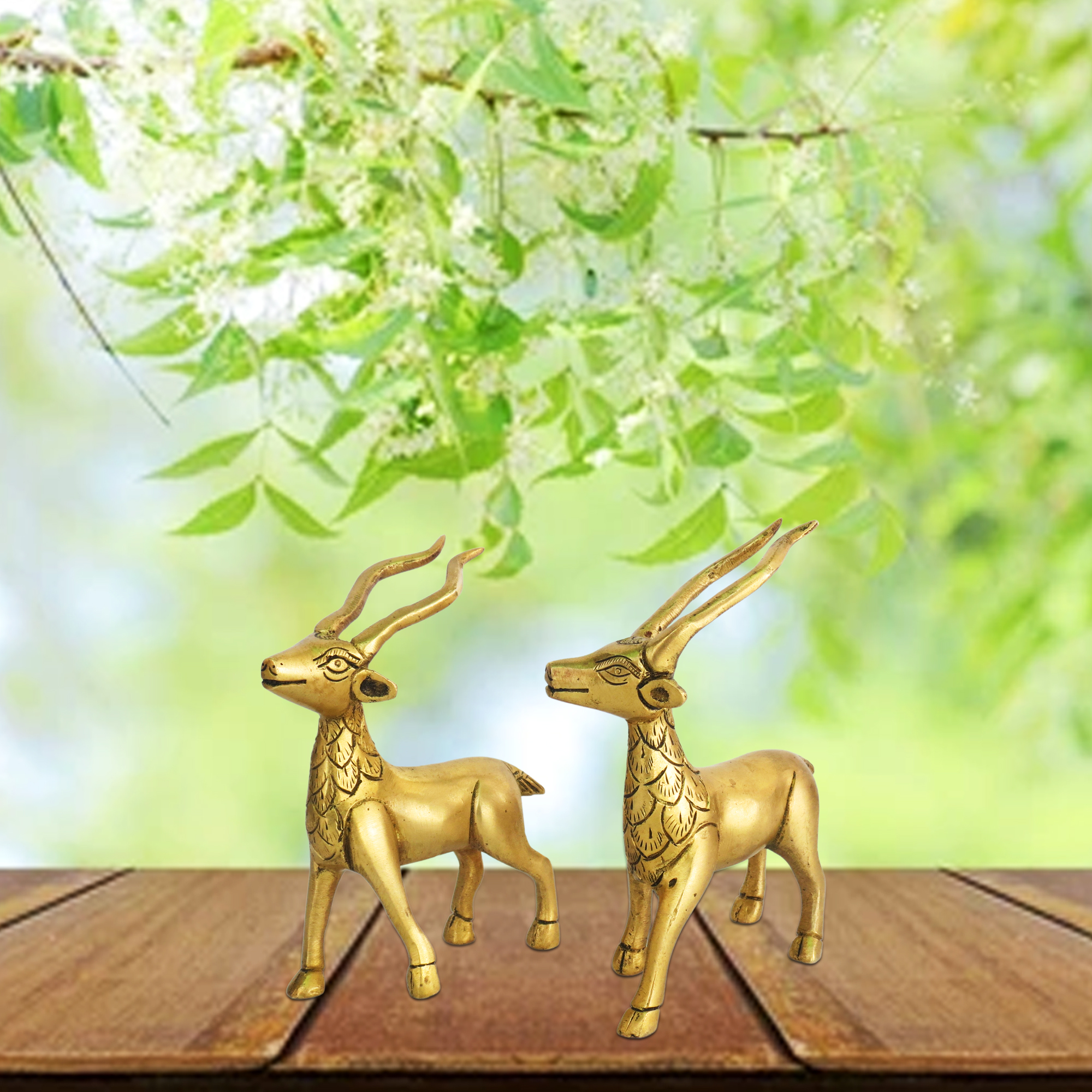 This elegant Brass Deer Pair showcases two intricately designed deer figurines, symbolizing grace and harmony. Crafted from high-quality solid brass, each deer measures 7 inches in length and weighs 780 grams, perfect for home décor, office display, or gifting.