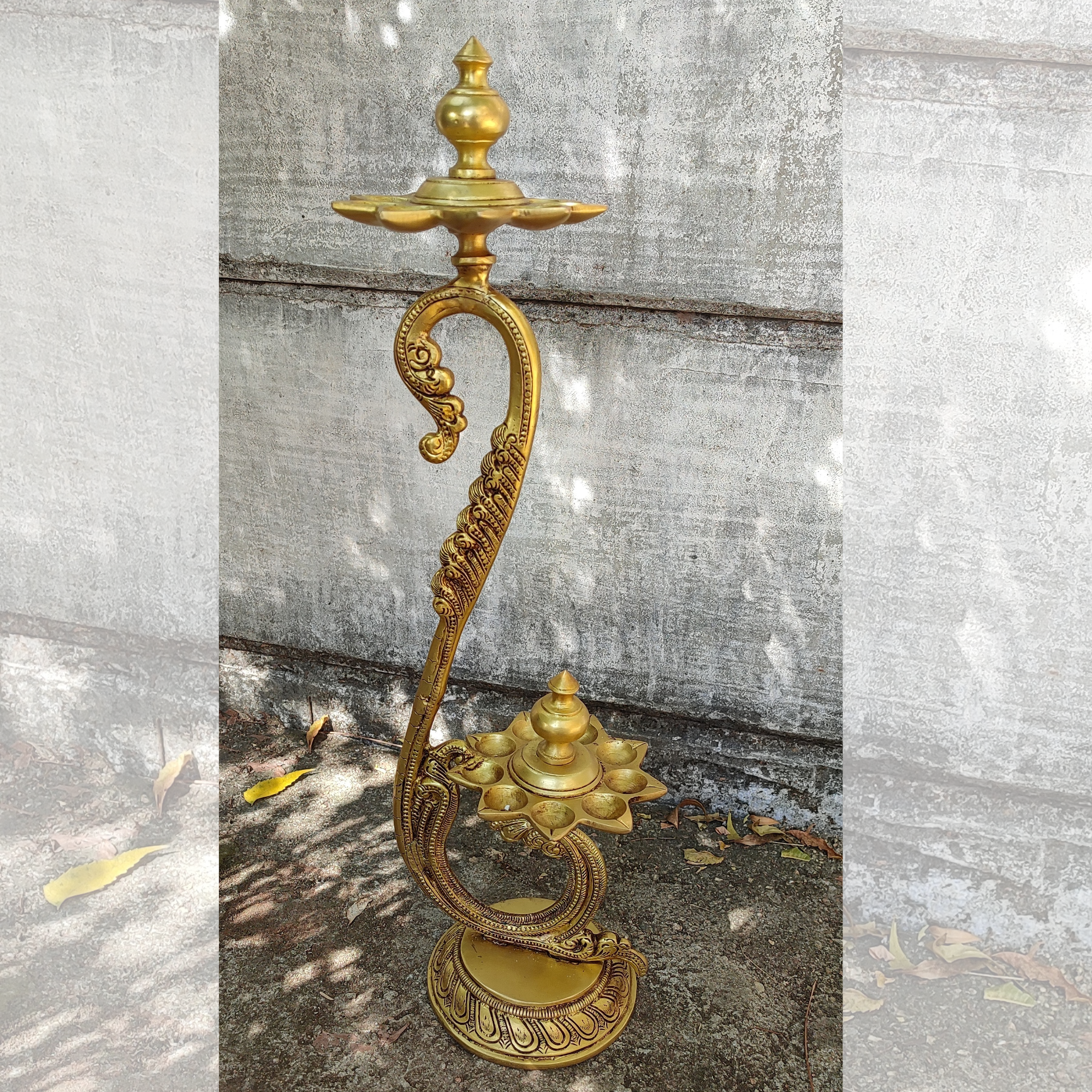 Beautifully crafted Brass Divi with intricate design and traditional charm. This 20-inch, 2.8-kg lamp enhances your pooja room or home décor, spreading warmth, positivity, and spiritual ambiance.