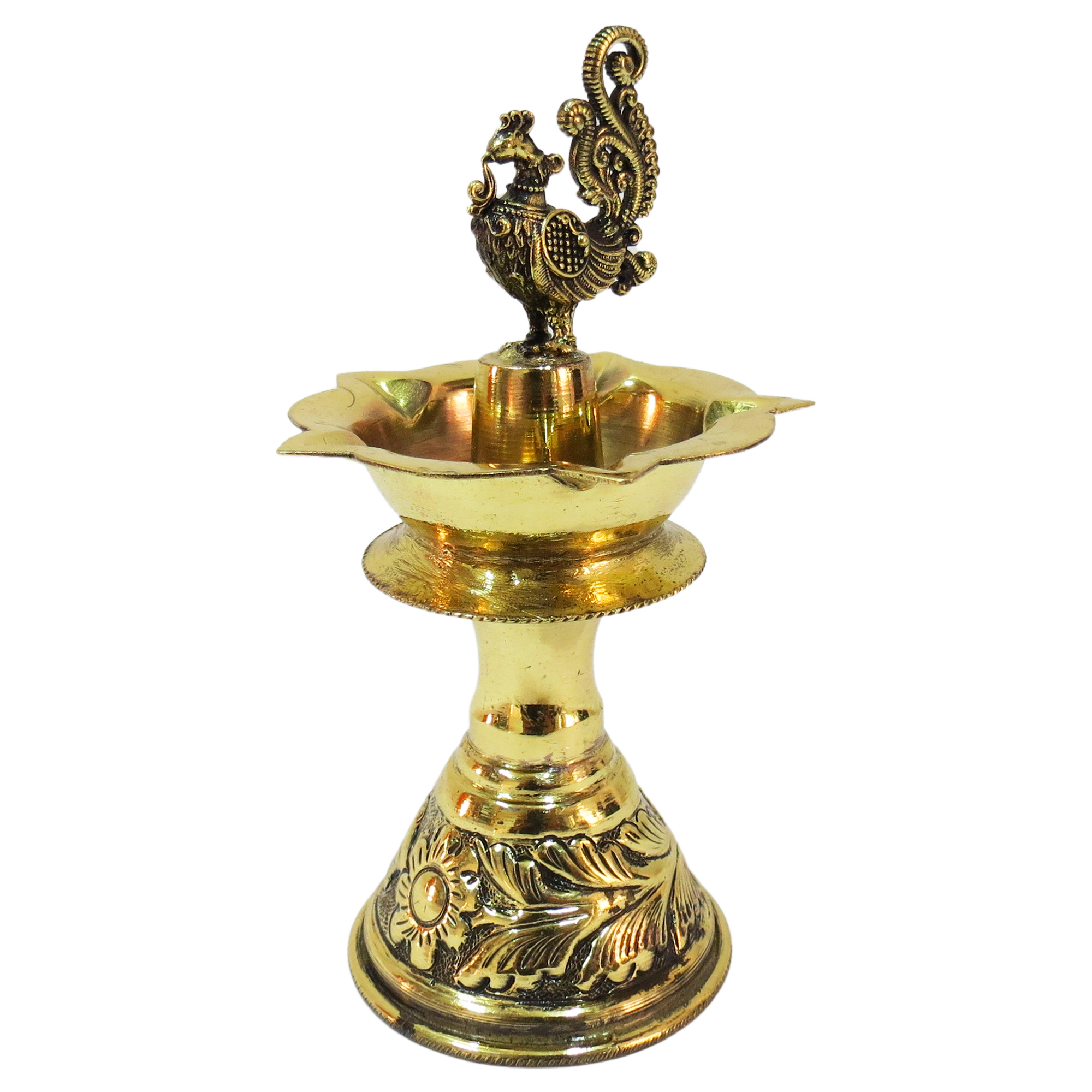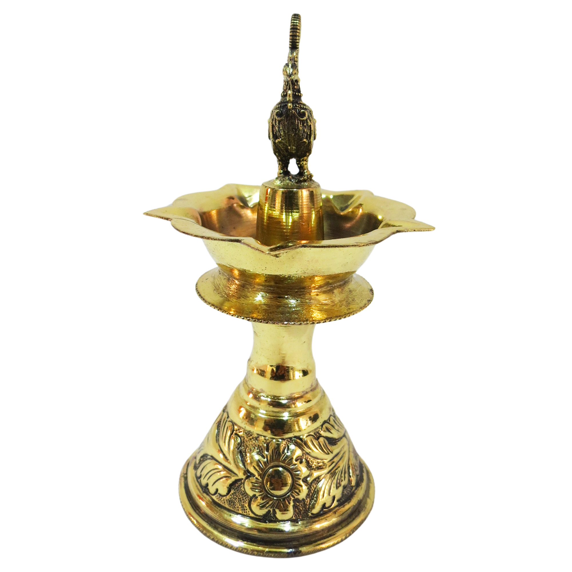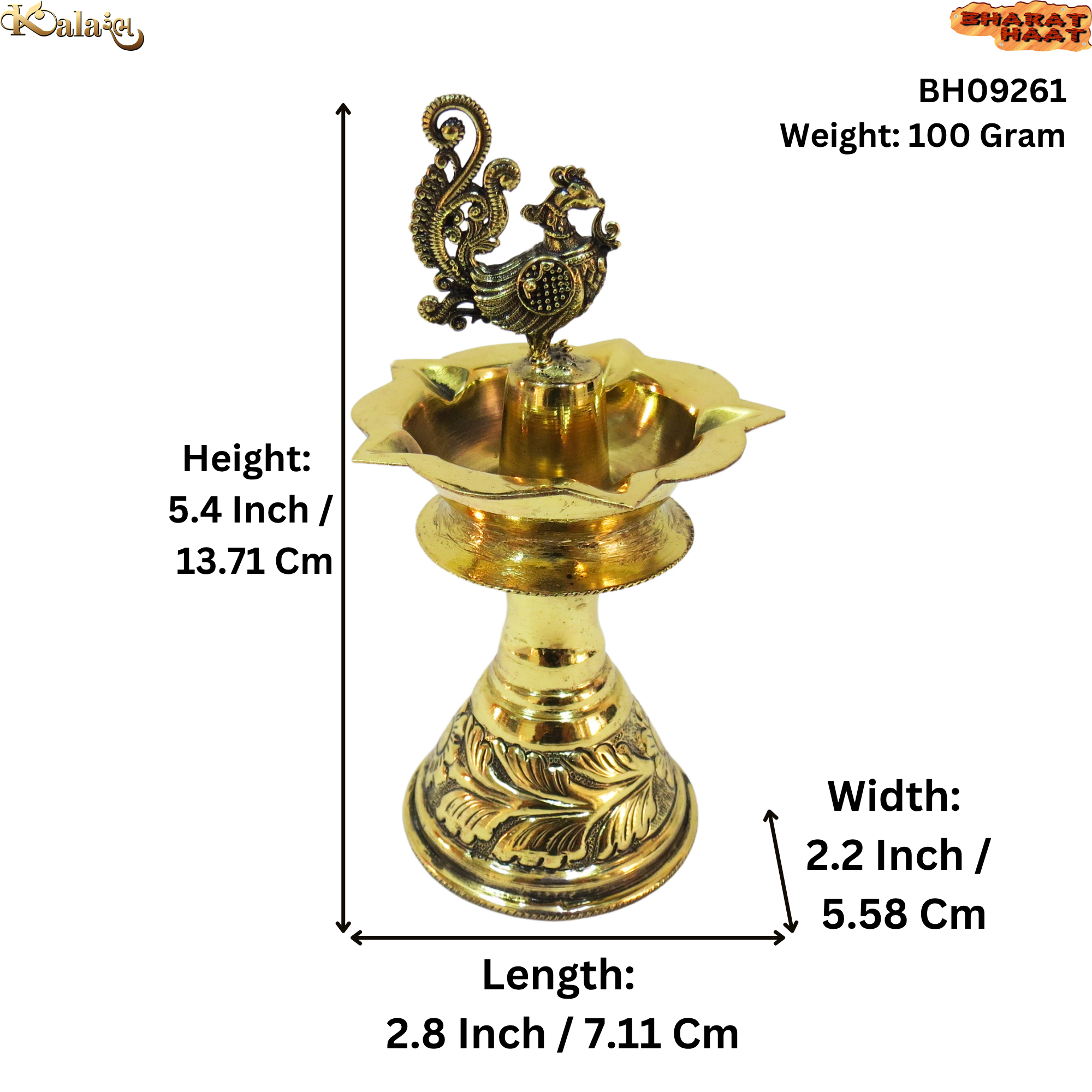 Skillfully handcrafted by experienced Indian artisans, every detail—from the lamp’s shape to its ornate design—is carefully executed, reflecting traditional Indian craftsmanship. With dimensions of 2.8 x 2.2 x 5.4 Inch (7.11 x 5.58 x 13.71 Cm) and a weight of 100 grams, this compact brass divi is ideal for home temples, shelves, or festive décor.
