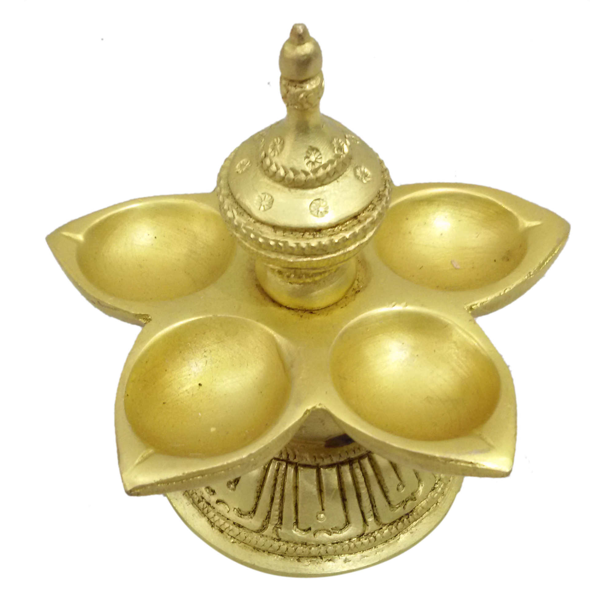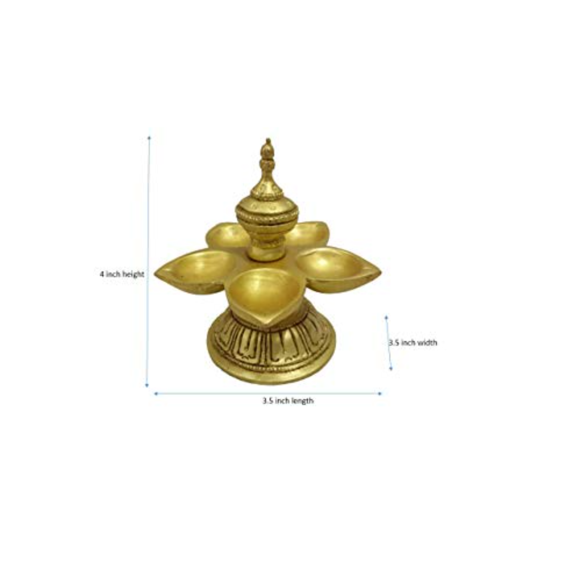 • Design: Beautifully handcrafted round-shaped brass oil lamp (divi) designed in a classic traditional Indian style, symbolizing purity and positivity