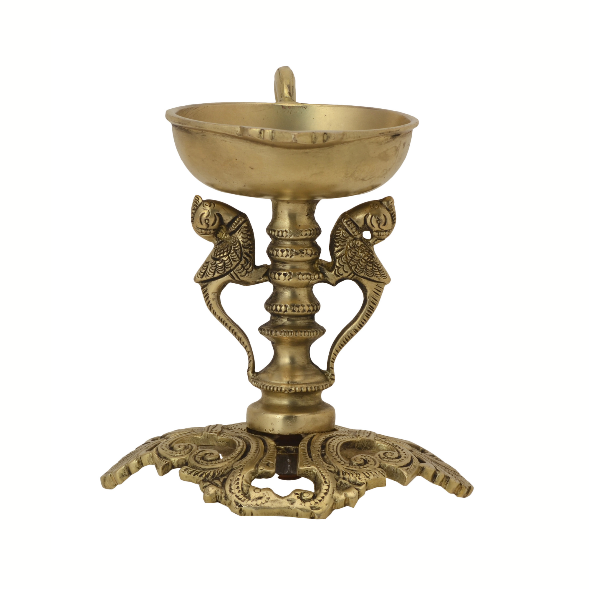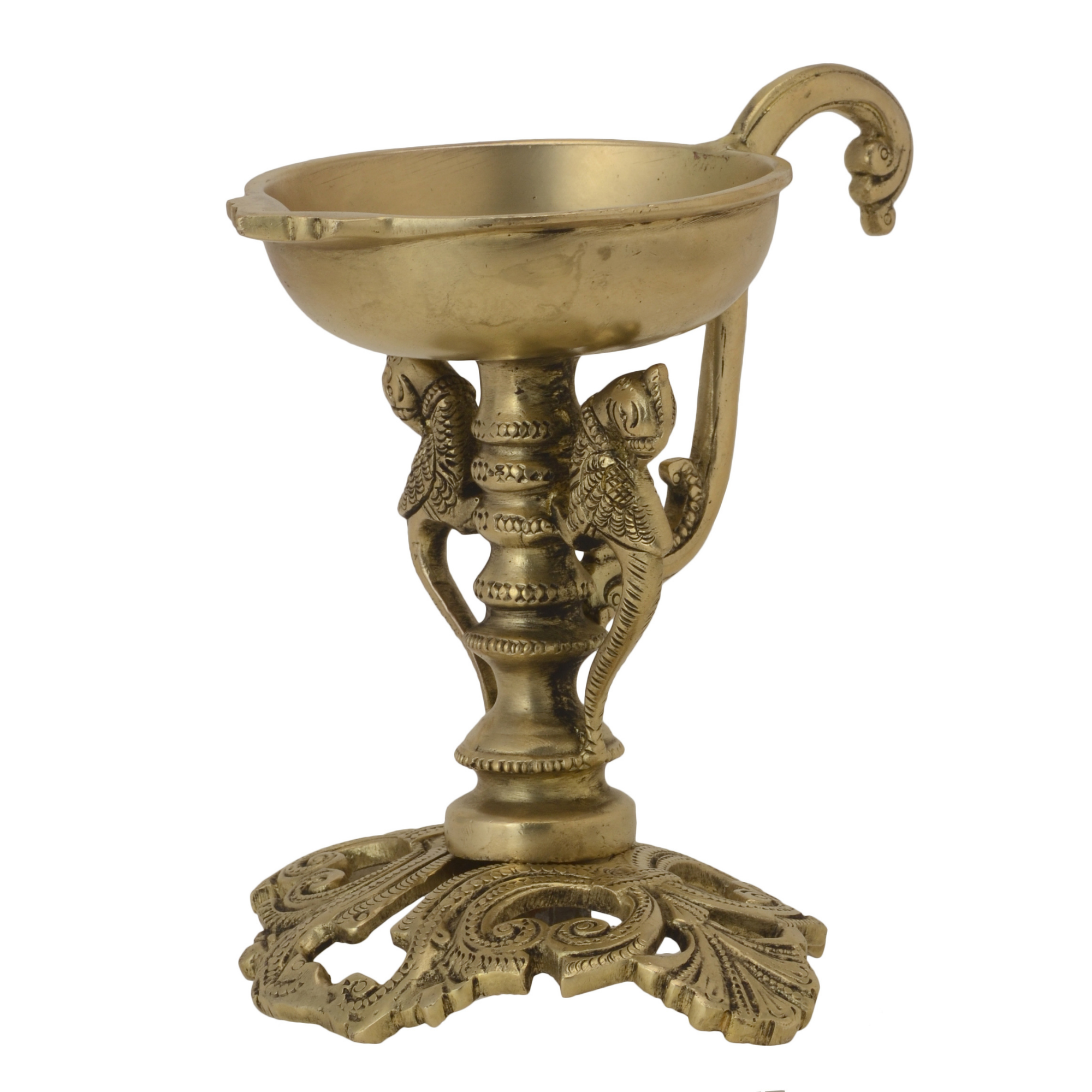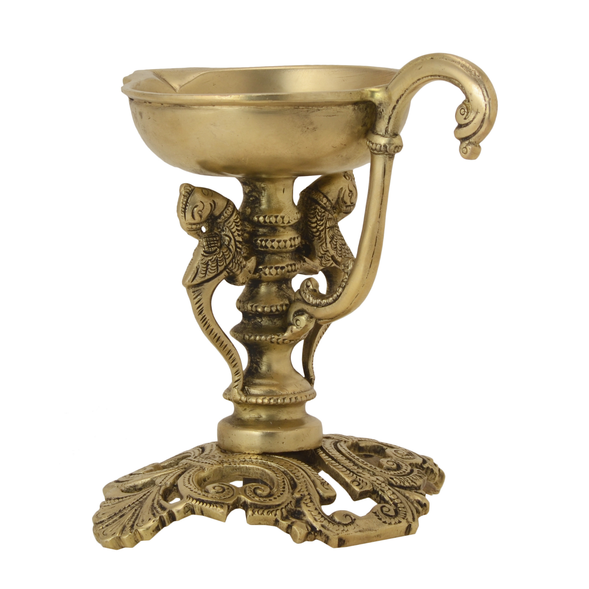 Design: Beautifully handcrafted brass diya featuring a classic round base and flared lamp design, symbolizing purity, positivity, and devotion.