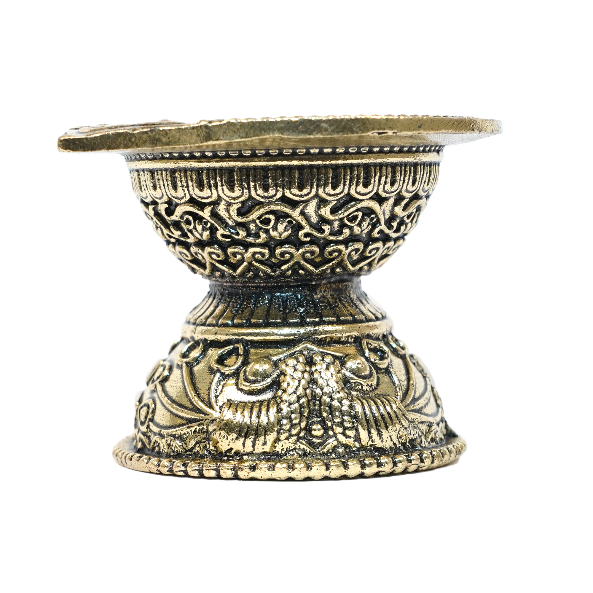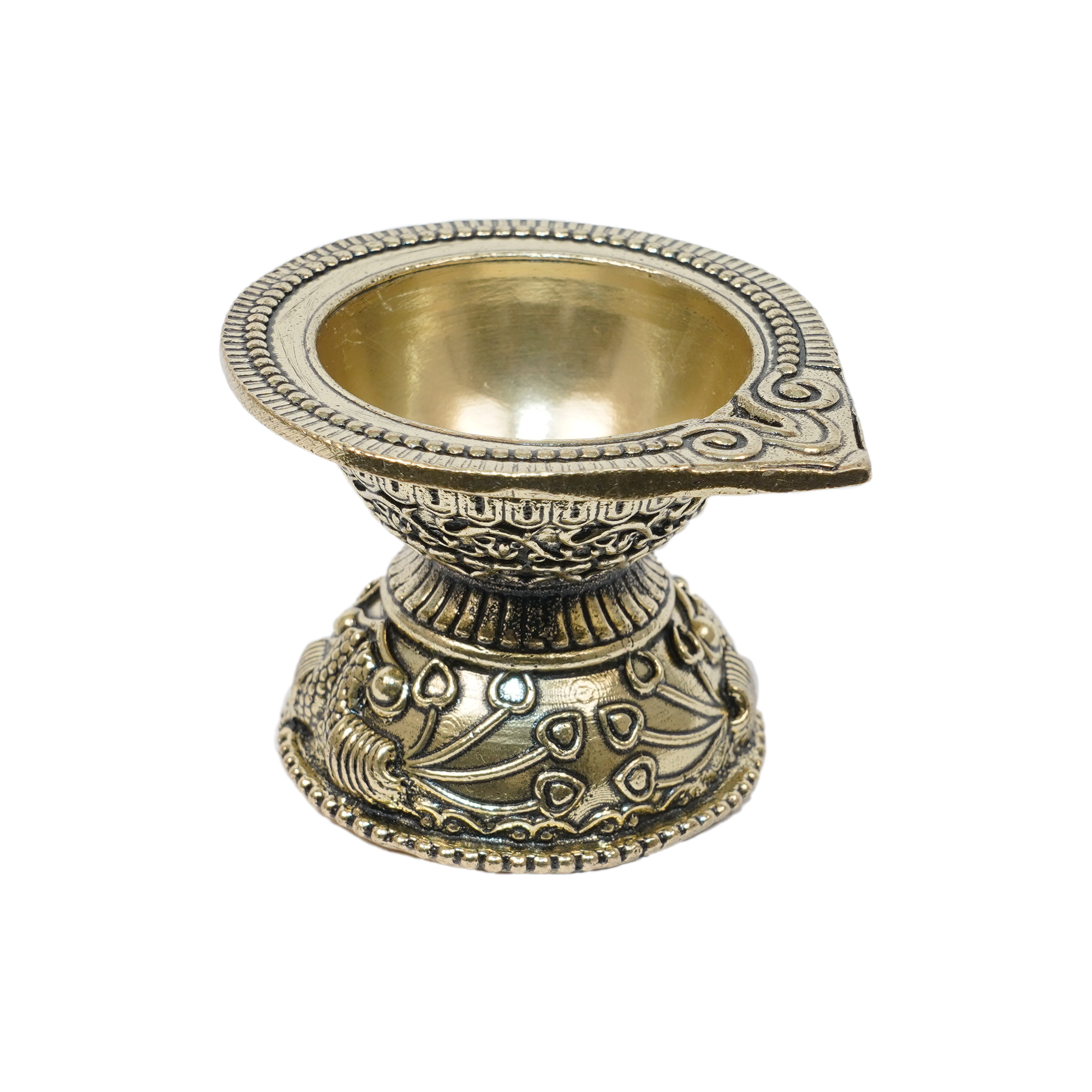 This Brass Diya is meticulously handcrafted by skilled Indian artisans, featuring intricate detailing and a polished golden finish that reflects traditional Indian craftsmanship. The diya’s elegant design allows it to hold oil or ghee securely while producing a warm, calming glow that enhances the spiritual ambiance.