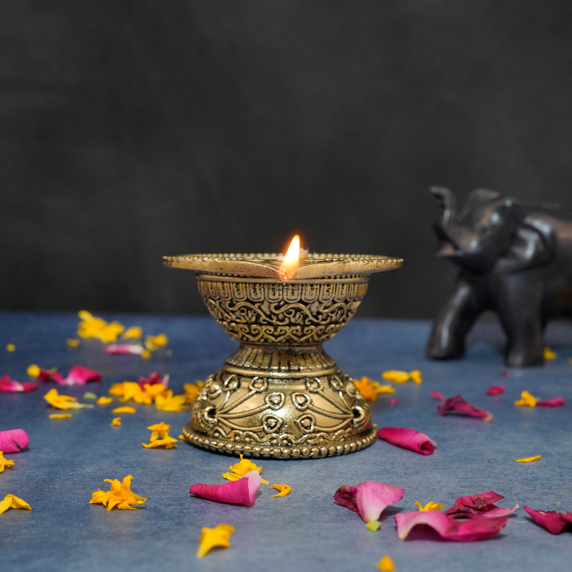 Handcrafted Brass Diya | Traditional Oil Lamp for Home, Pooja & Festive Décor | Pure Brass | 3.2 Inch | 185 Gram, Illuminate your home and spiritual space with this Handcrafted Brass Diya, a traditional oil lamp symbolizing light, positivity, and divine energy. Made from premium quality solid brass, this diya is perfect for home temples, pooja rooms, or festive décor. Measuring 3.2 x 2.3 x 2.1 inches and weighing 185 grams, it is ideal for daily worship or special religious occasions.