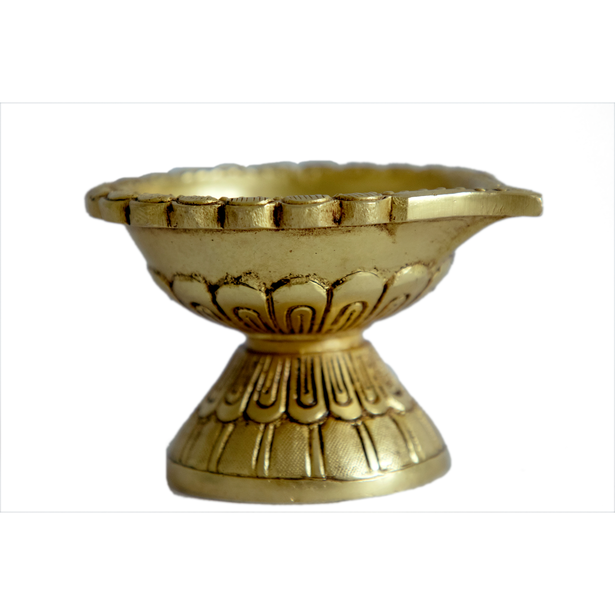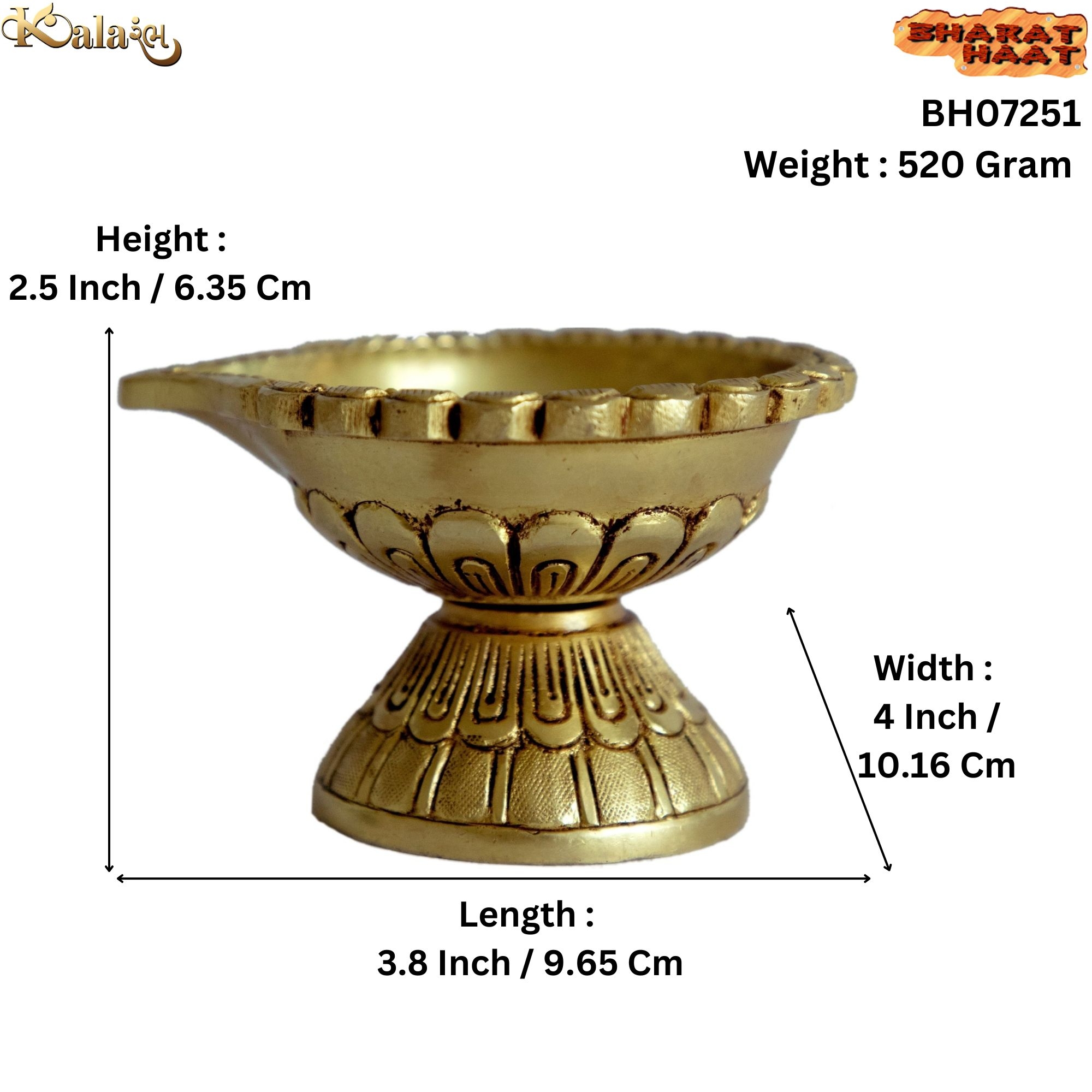 This Brass Diya Oil Lamp with Round Base is a finely handcrafted decorative piece made from solid brass. Measuring 3.8 x 4 x 2.5 inches and weighing 520 grams, it features a sturdy round base, ideal for home temples, pooja rooms, or gifting.