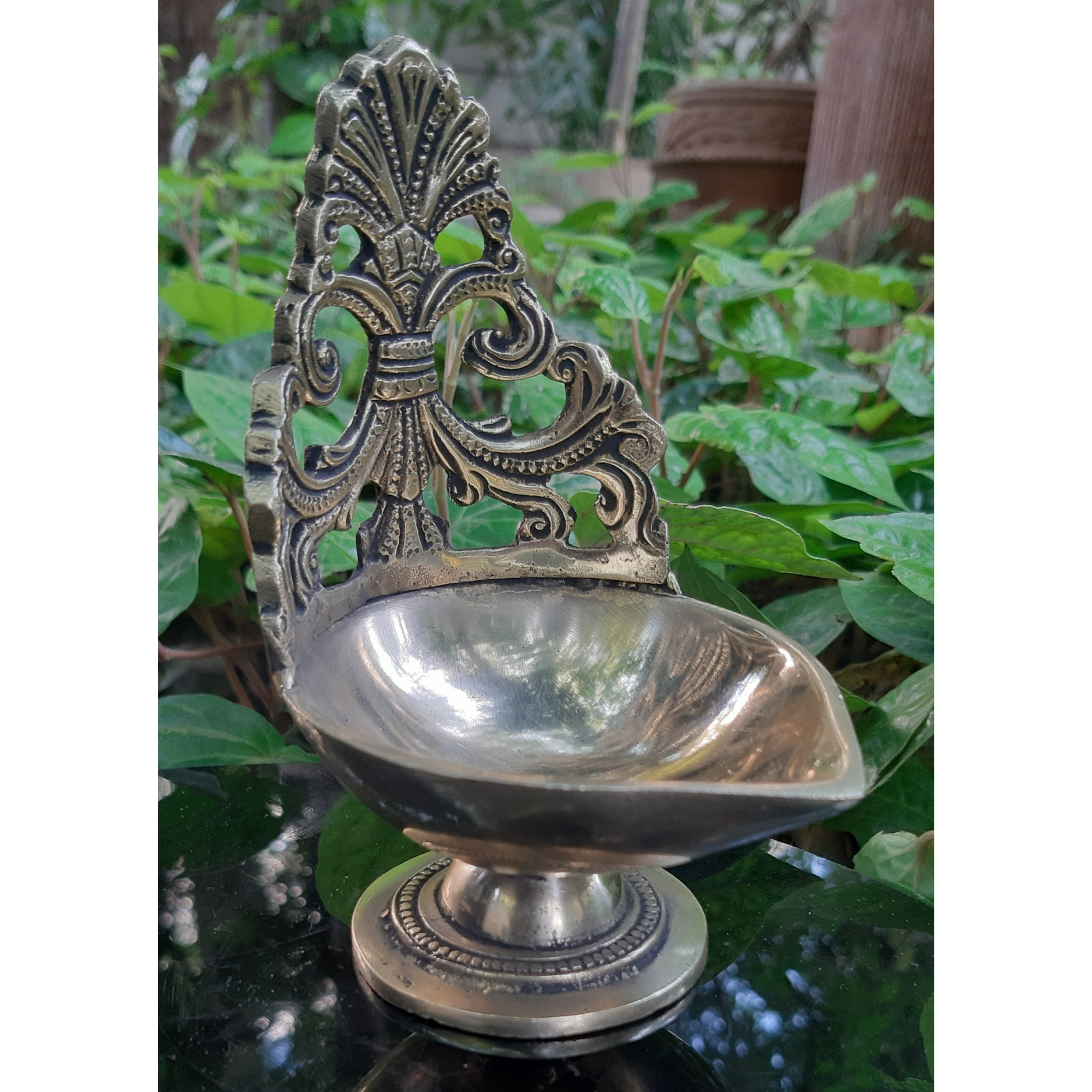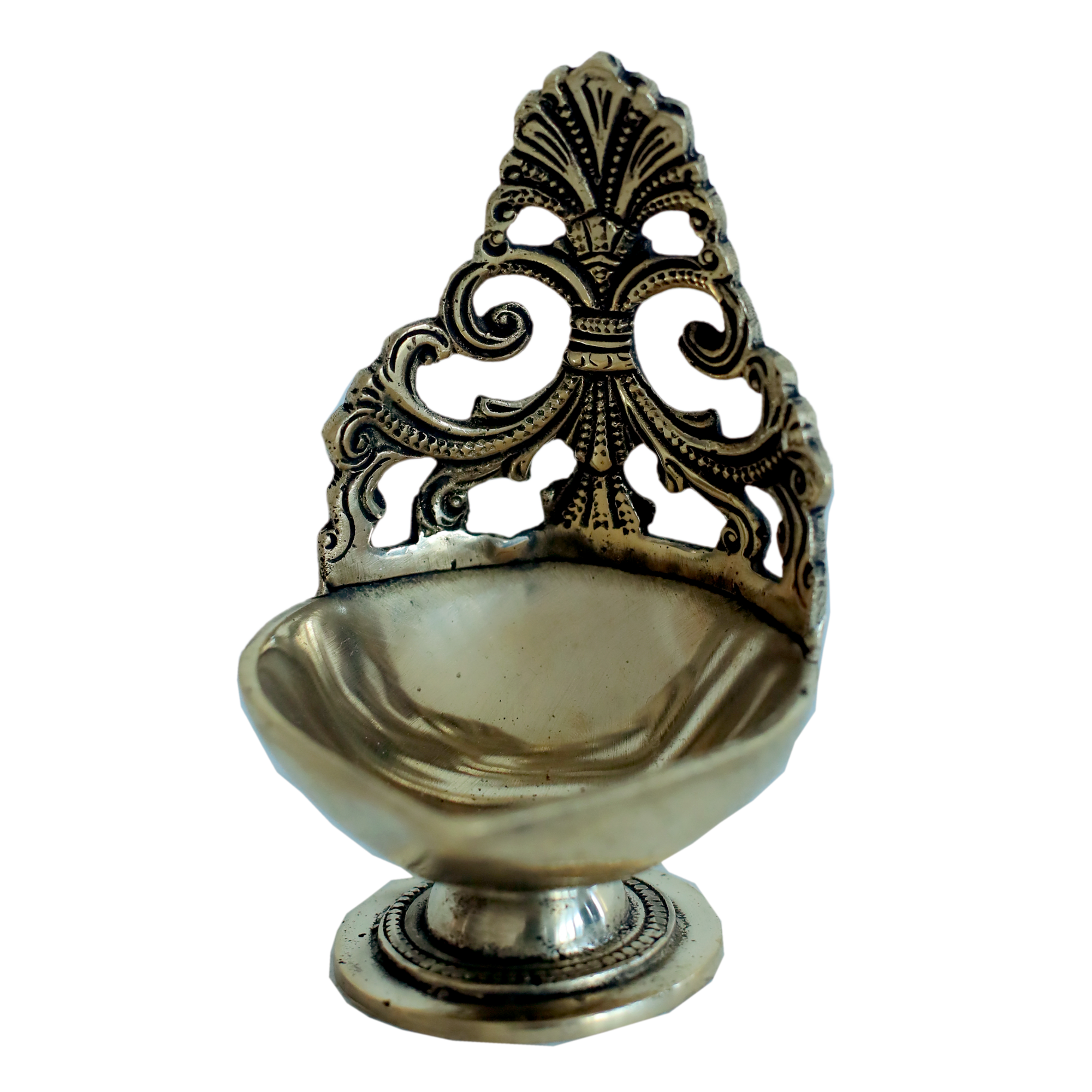 Brass Diya With Bell measuring 2.8 x 3 x 4.7 Inch and weighing 415 Gram. A finely designed brass oil lamp with an attached bell, perfect for pooja rituals and décor.
