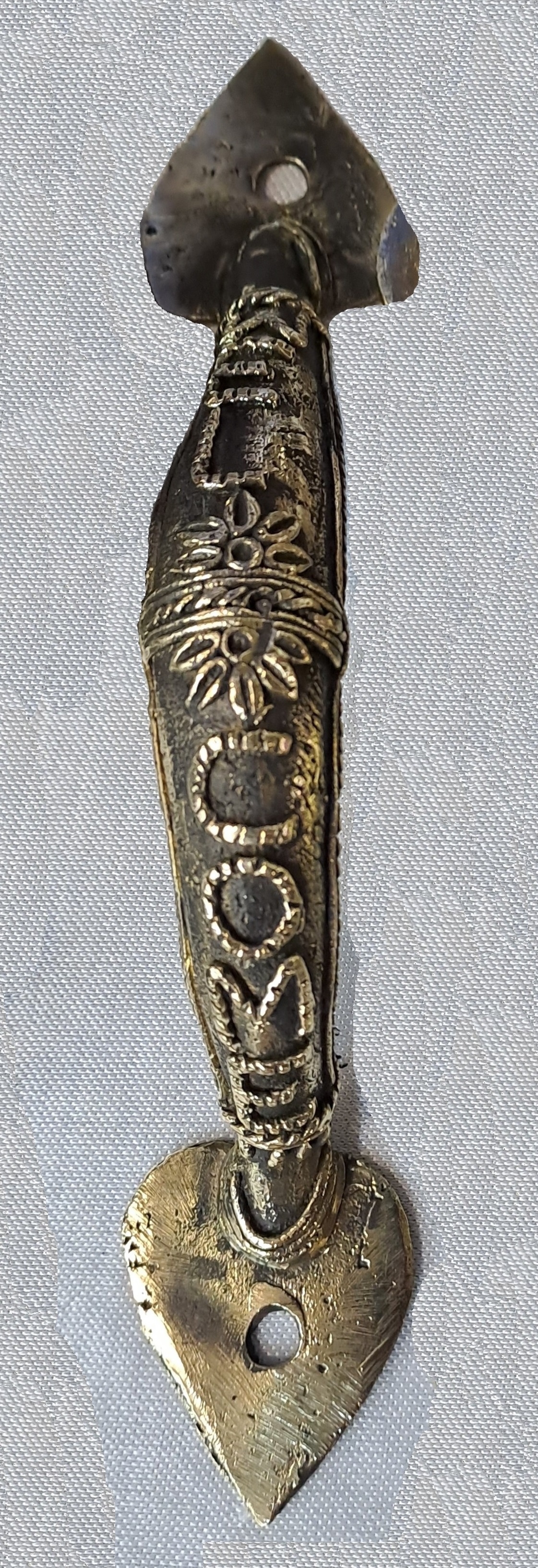 Handcrafted Beautiful Brass Door Handle. The product is developed by professional Indian artists who endowed their utmost love and passion to these artefacts. The product with a truly distinctive look and feel contemporary door pull handles will give a statement to modern design, these door handles complete your home with style. Ideal for drawer, dresser, cabinet, wardrobe, cupboard and almirah Etc. It can also be used at home and temple doors. Unique traditional tribal designs engraved on it. A vintage brass metal door ornament with floral motif. An antique finish ornament to decorate your main door. Make your front door an eye-catcher for your visitors and guests with this beautiful ornament. It adds a glamorous touch to your entrance. People often use this ornament to describe their rich heritage. Very beautiful for gift on housewarming, anniversary or birthday and for your friends, family and relatives. it is surely a unique thing for collection.