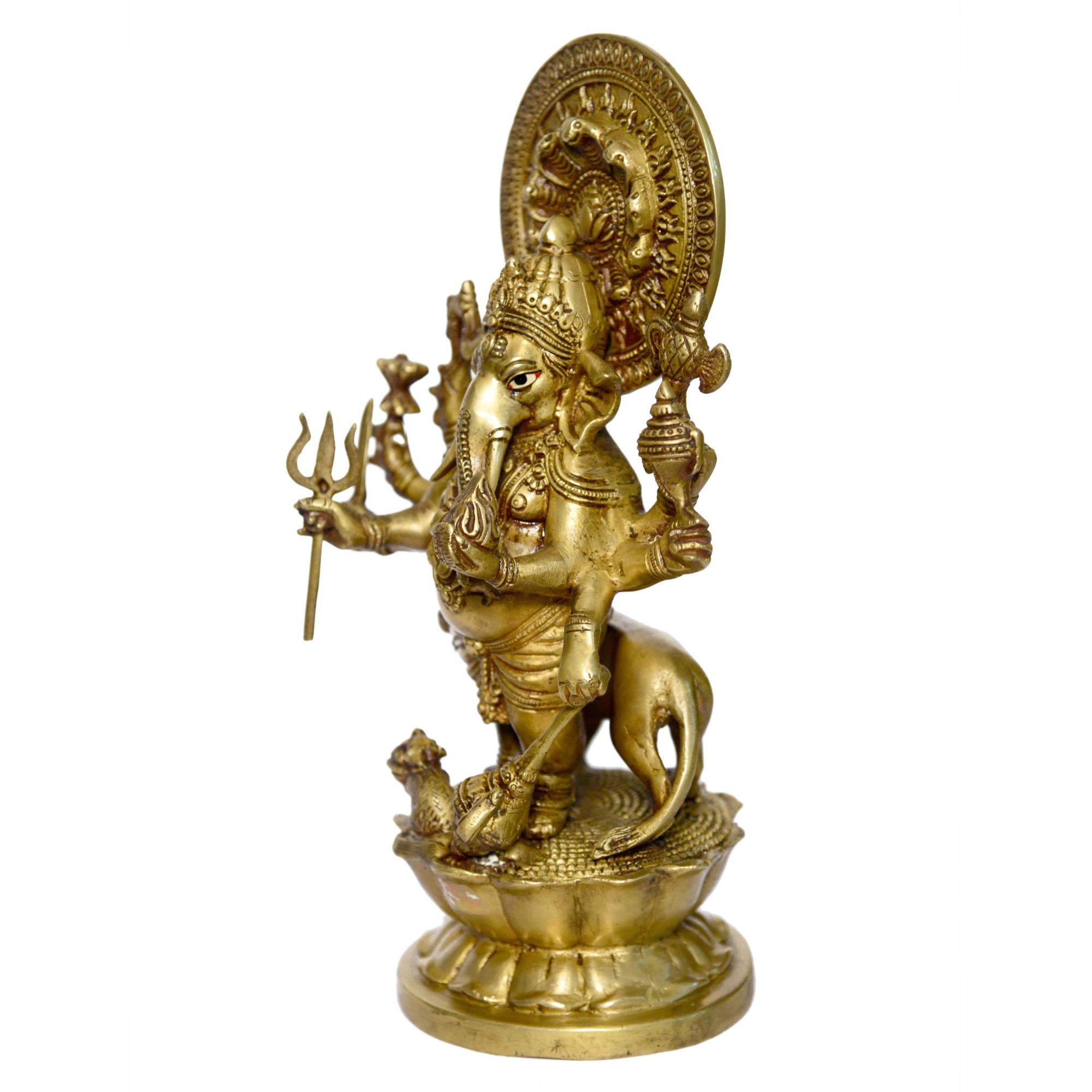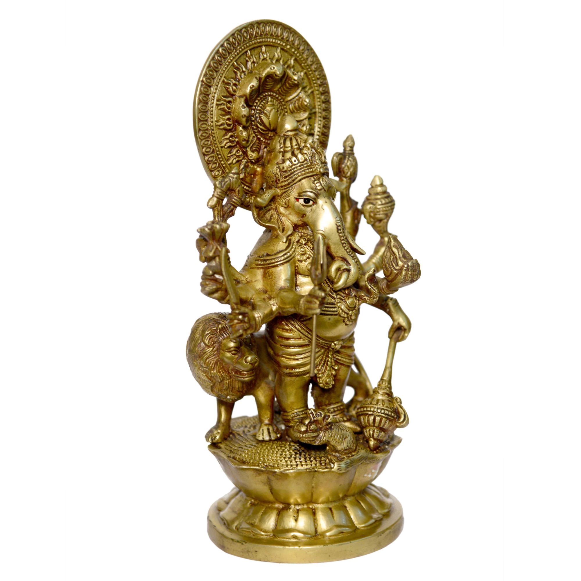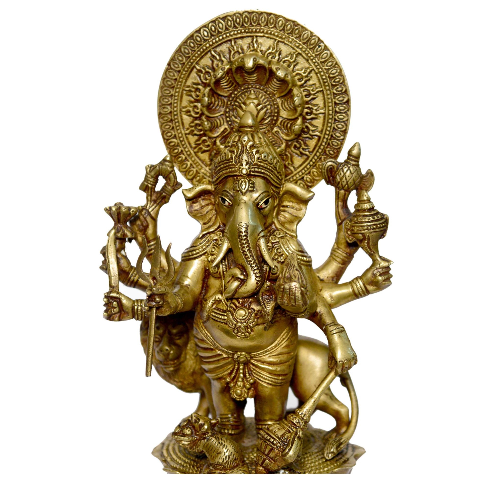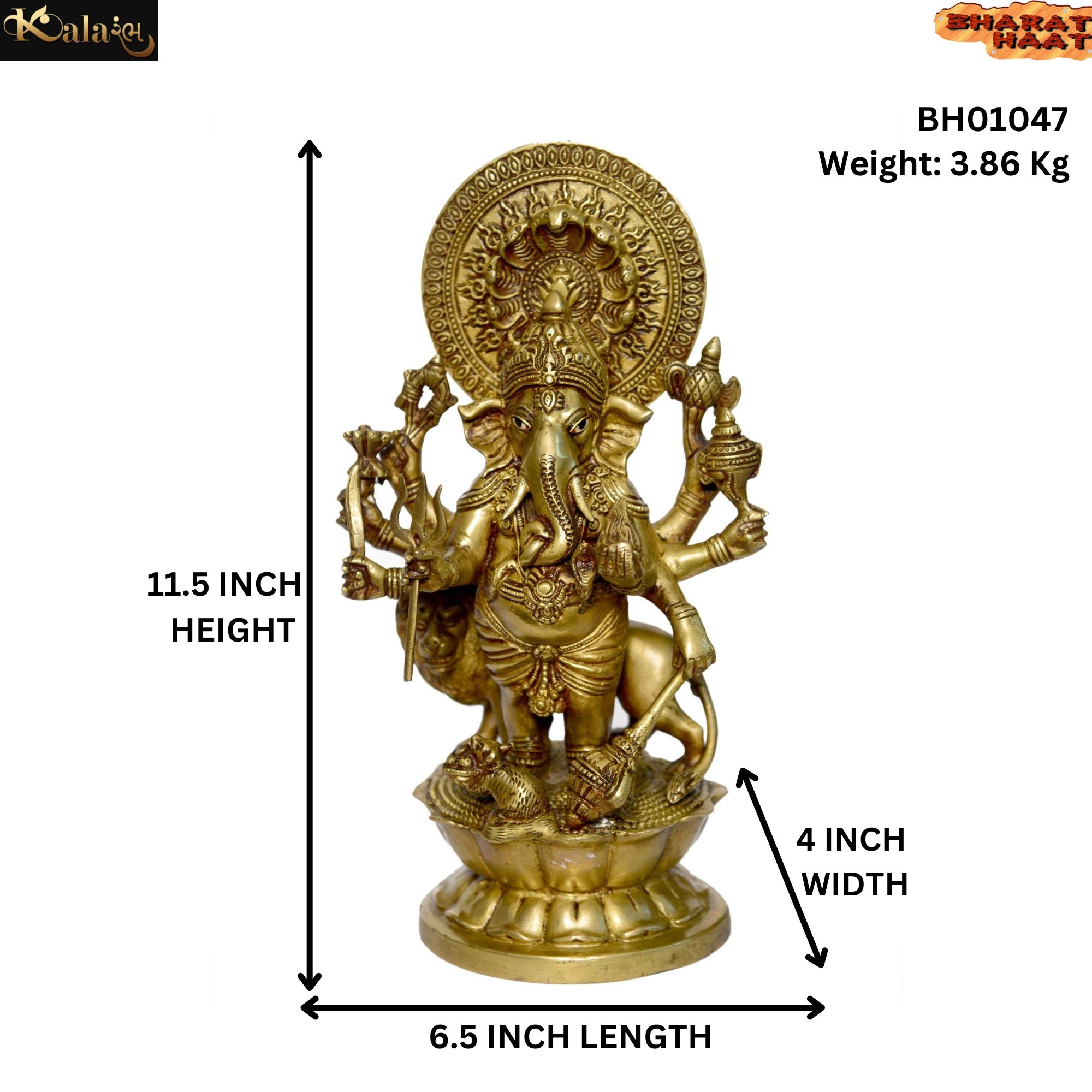 Design: Magnificently handcrafted brass idol of Lord Ganesha designed to ward off negative energy and bring peace, prosperity, and protection to your space.