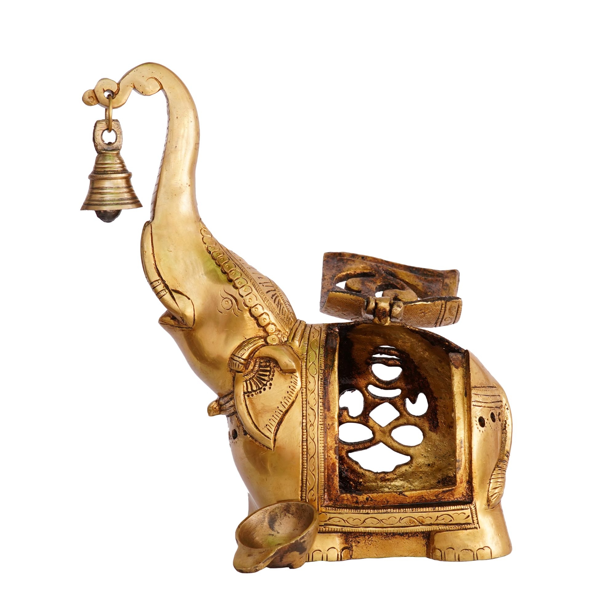 Perfect for home temples, pooja rooms, meditation areas, or living room décor, this elephant dhoopdhani adds a touch of traditional artistry and spiritual charm. Its polished golden finish enhances the aesthetic appeal, making it a beautiful gift for Diwali, weddings, housewarming ceremonies, and religious occasions.