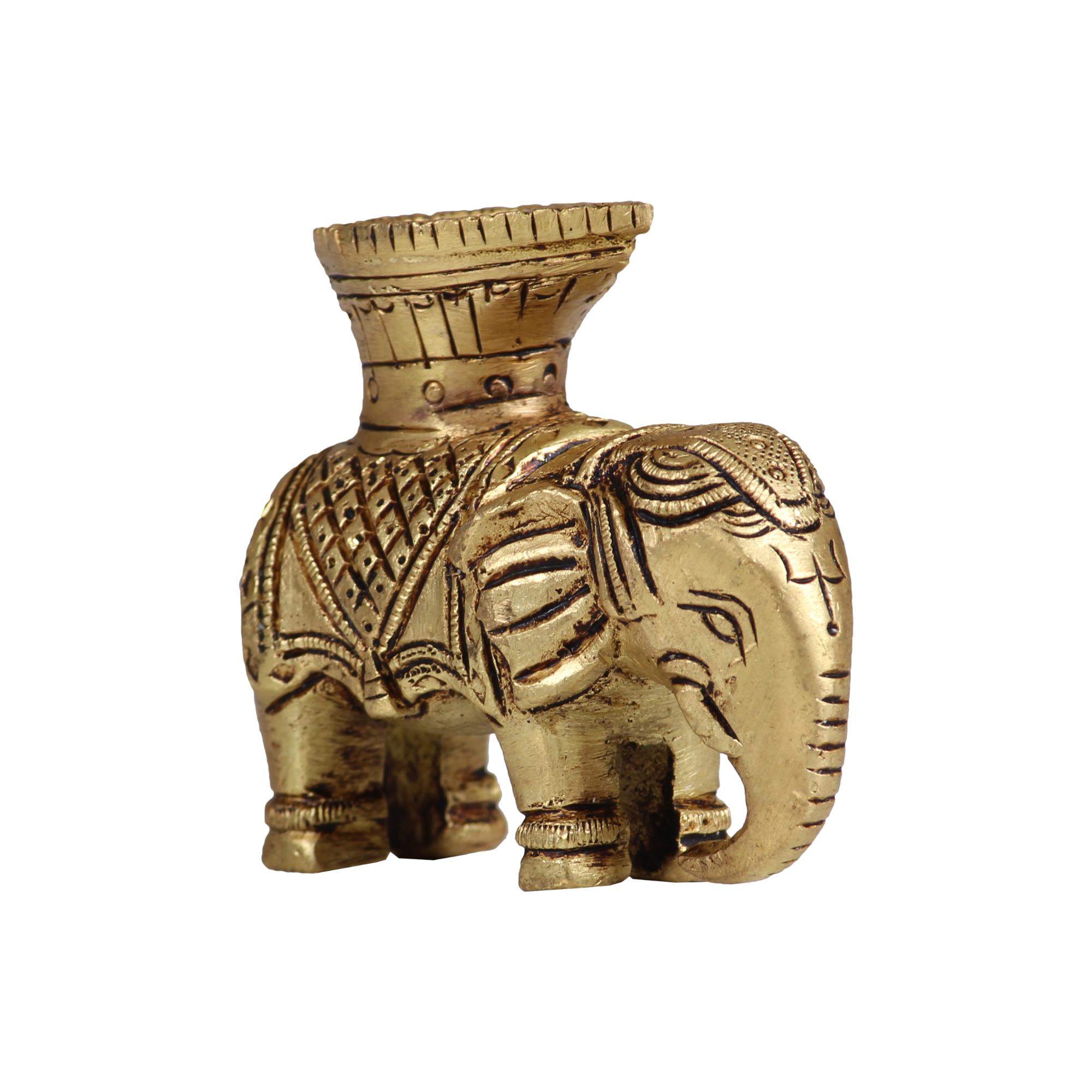 Compact brass elephant diya designed for pooja and home decoration, adding an elegant and spiritual touch.