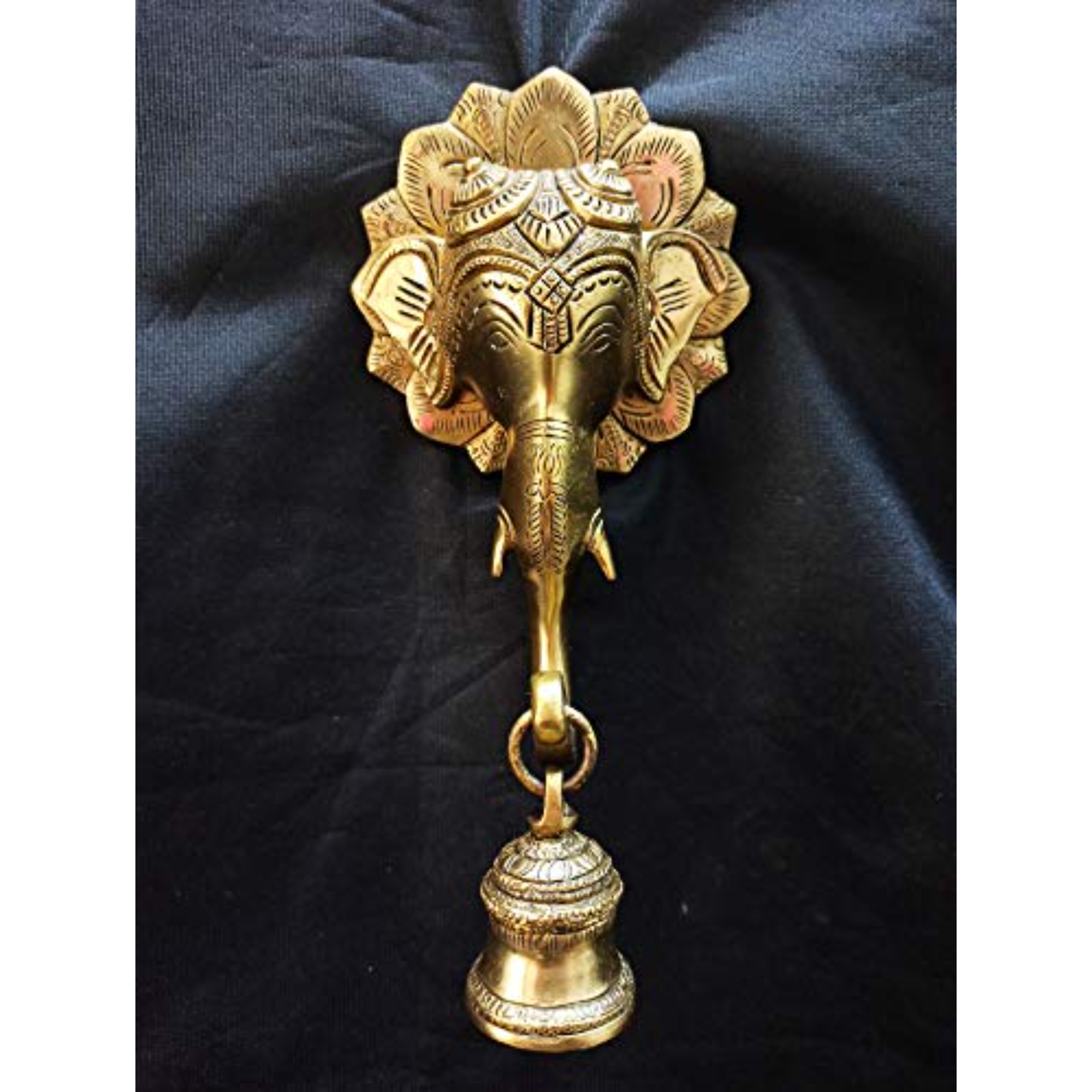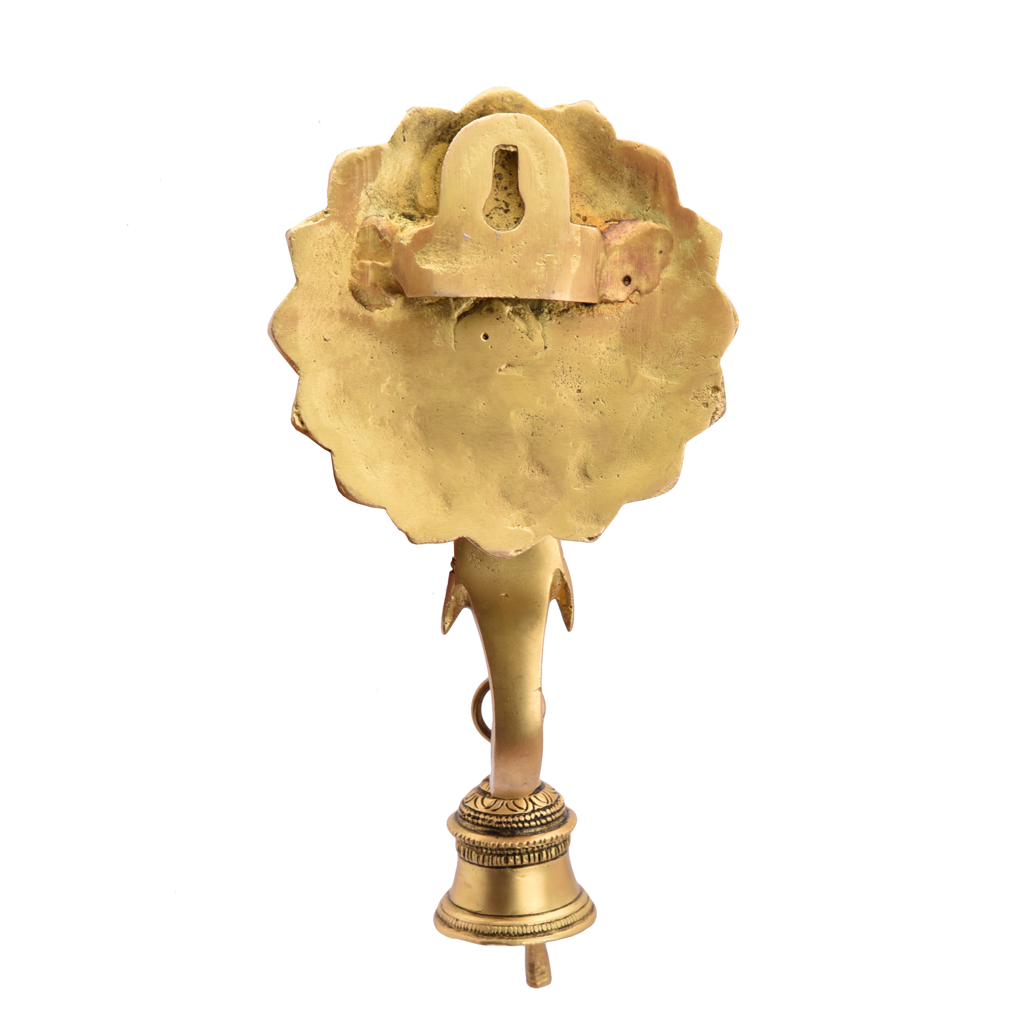 Handmade Brass Elephant Face Wall Hanging with intricate carving. Adds a touch of traditional art and auspicious energy to your home or temple décor.