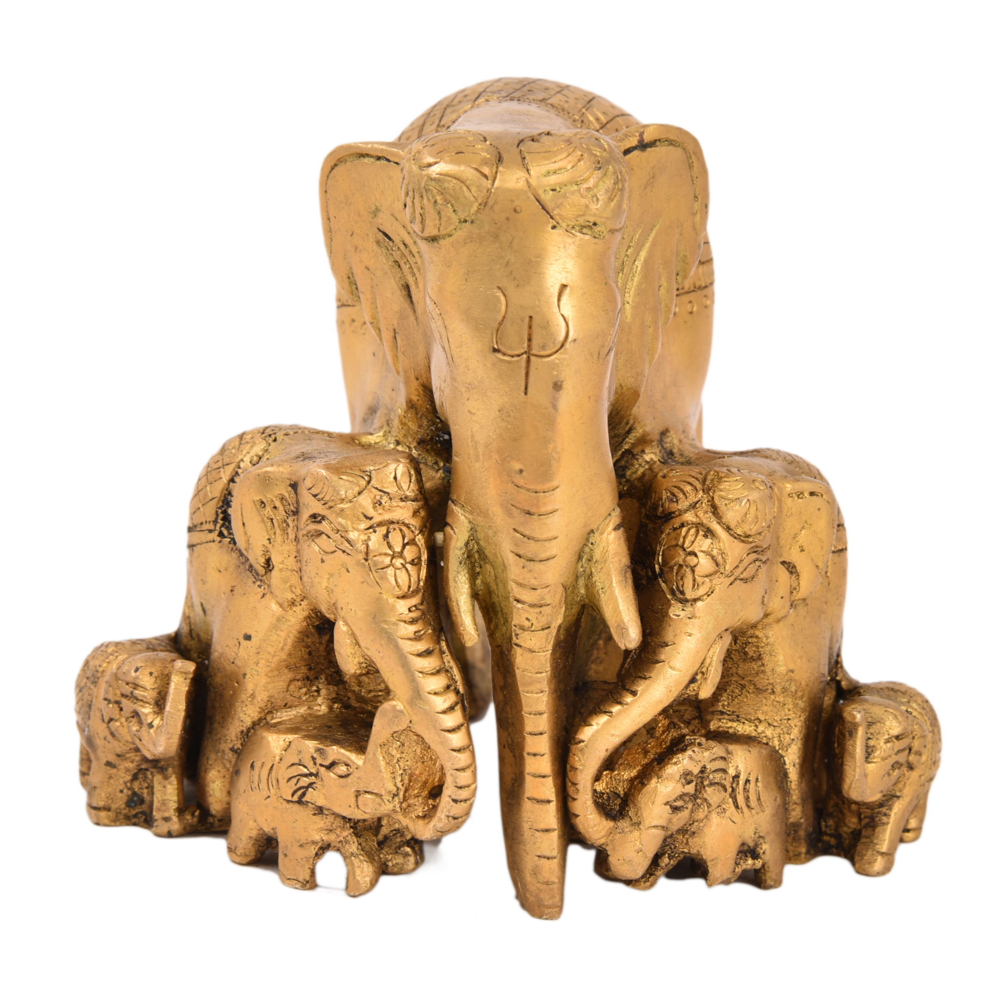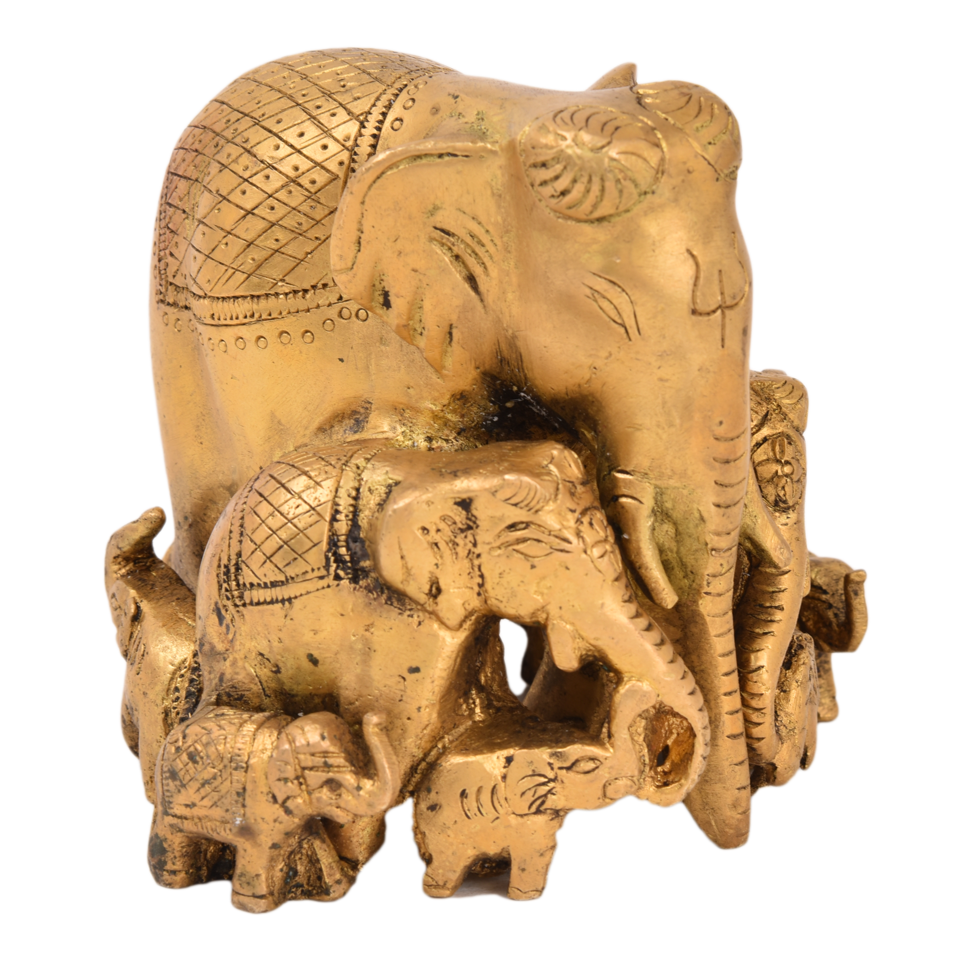 Brass Elephant Family Statue Figurine KBH05185