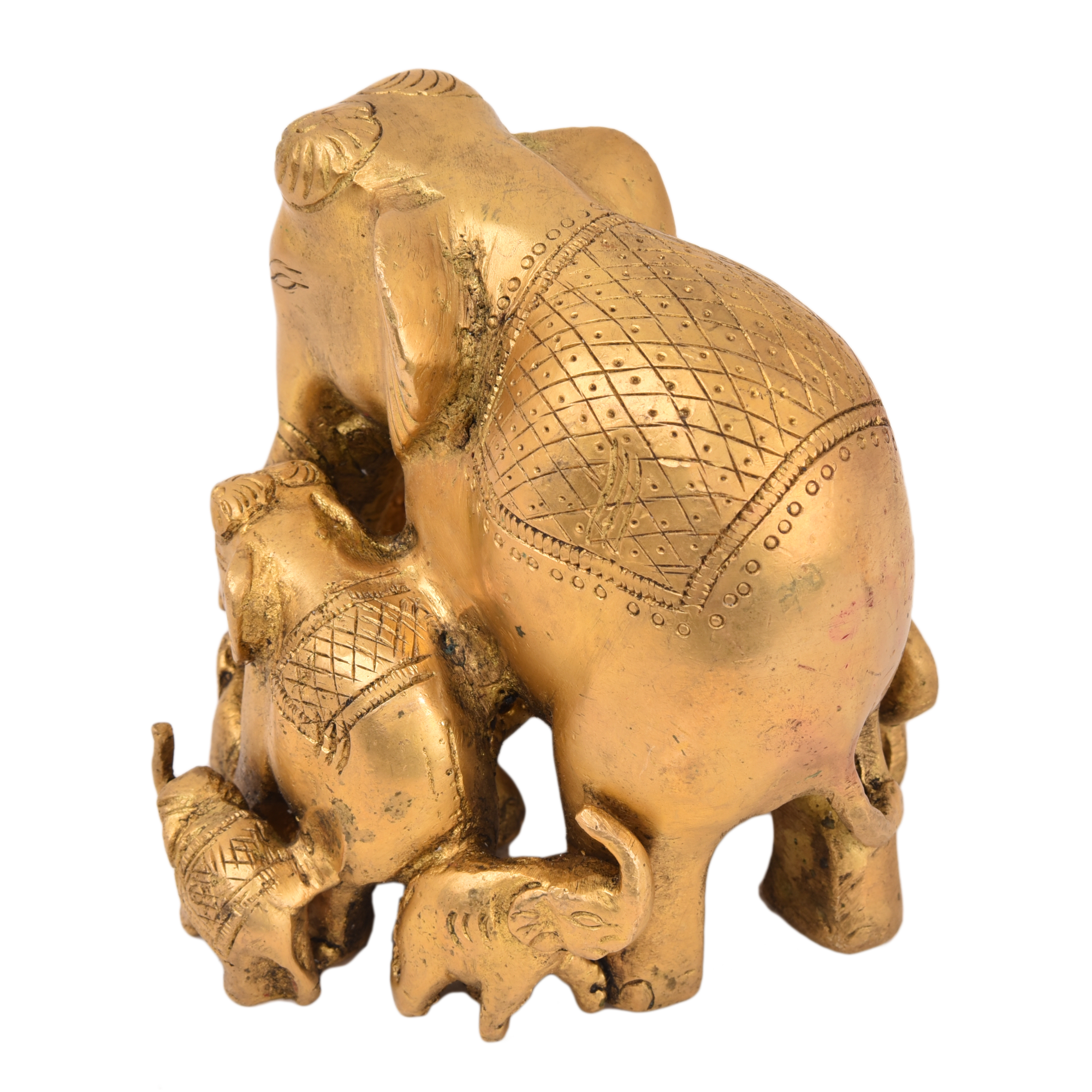 Brass Elephant Family (4.3 x 4 x 4 Inch, 1.65 Kg) – Handcrafted brass sculpture symbolizing unity, strength, and good luck; ideal for home décor, gifting, or collection.