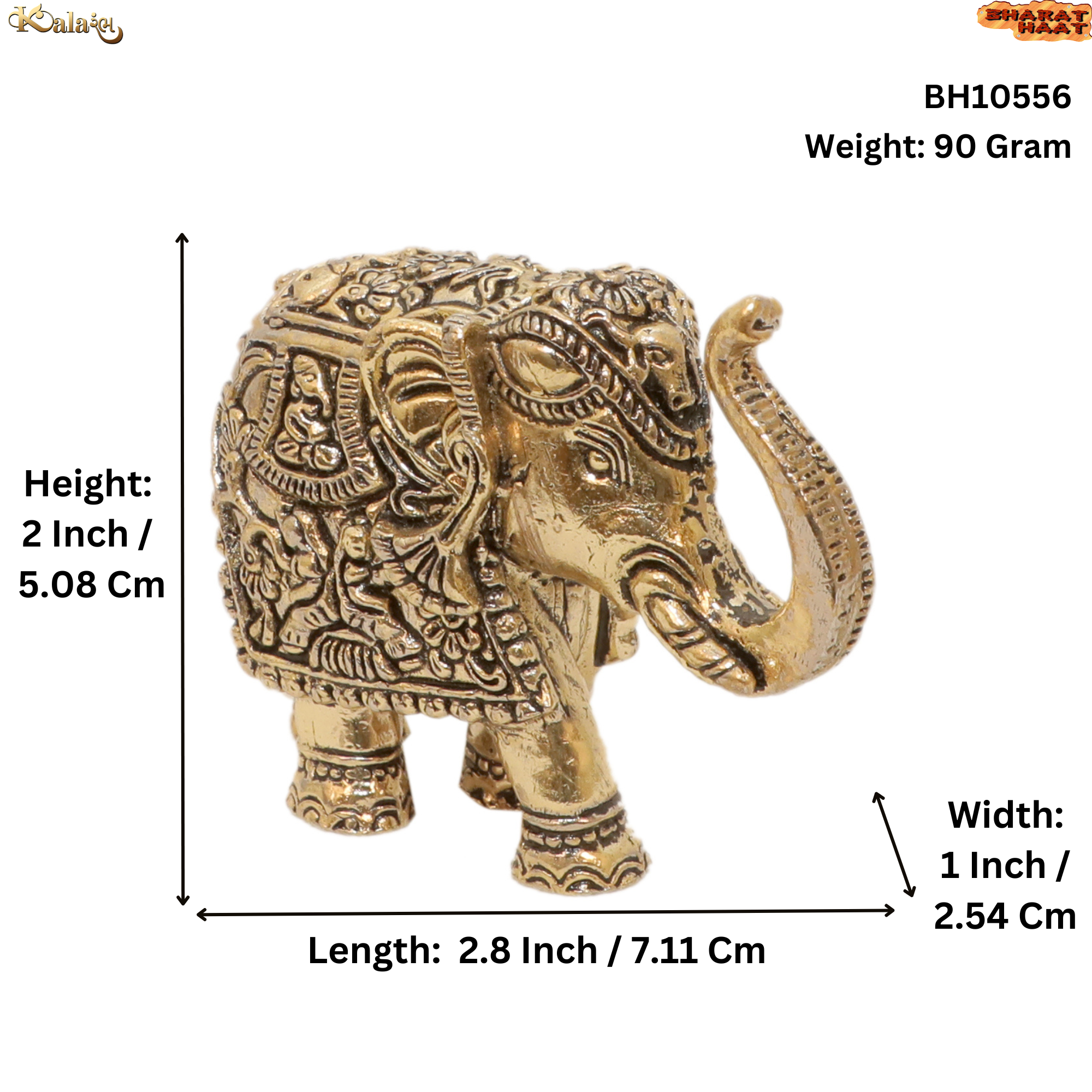 Handcrafted Brass Elephant figurine, 2 inches tall and 92 grams, ideal for home décor, spiritual spaces, and gifting.