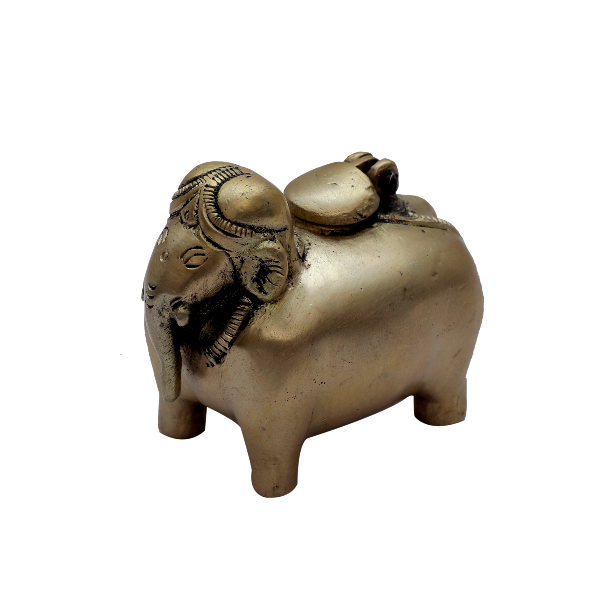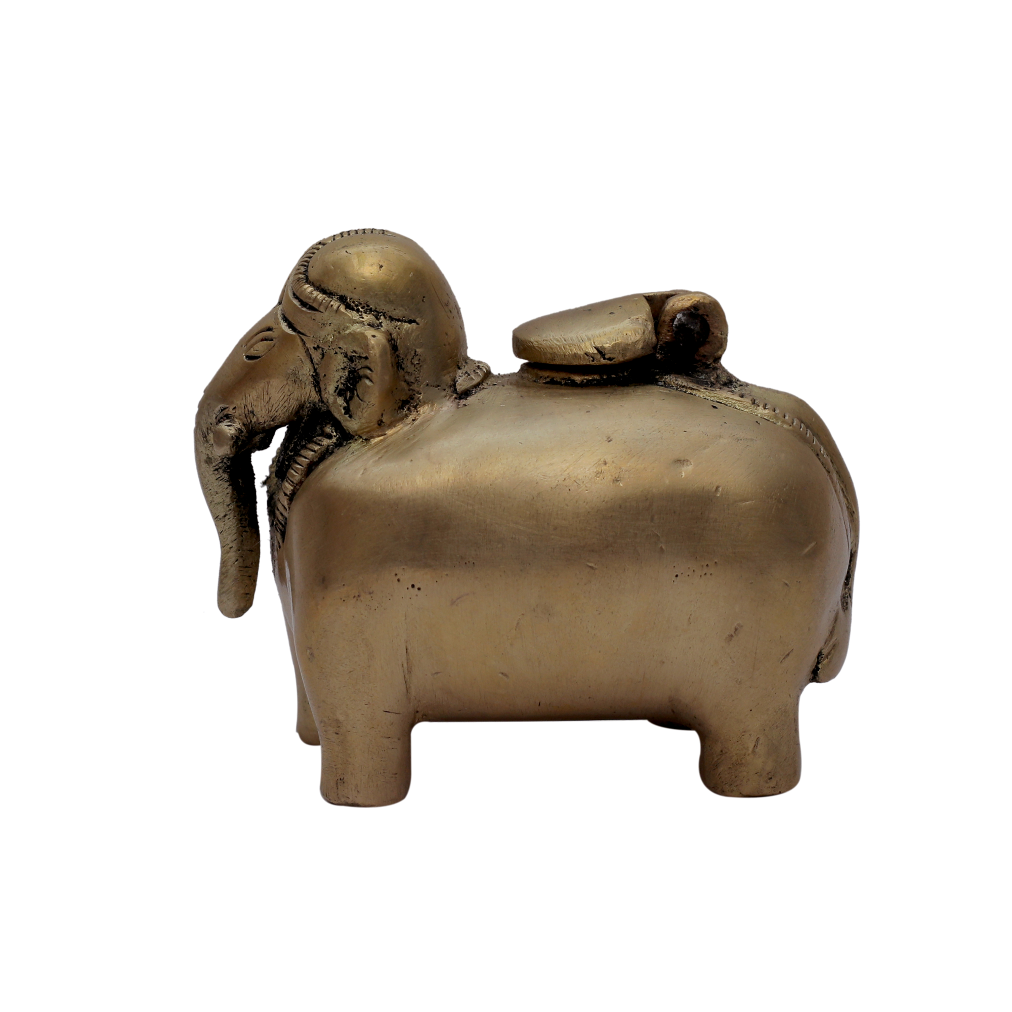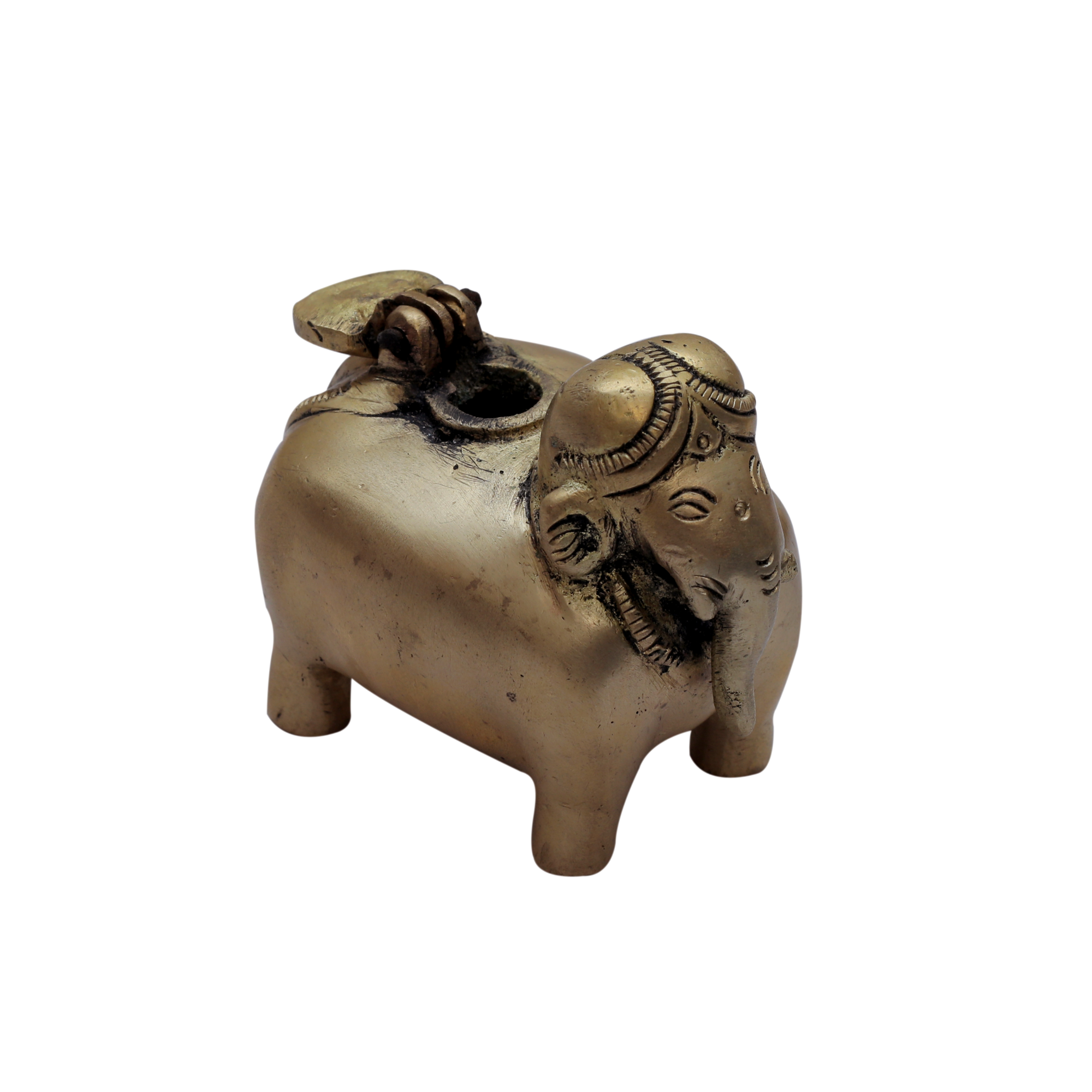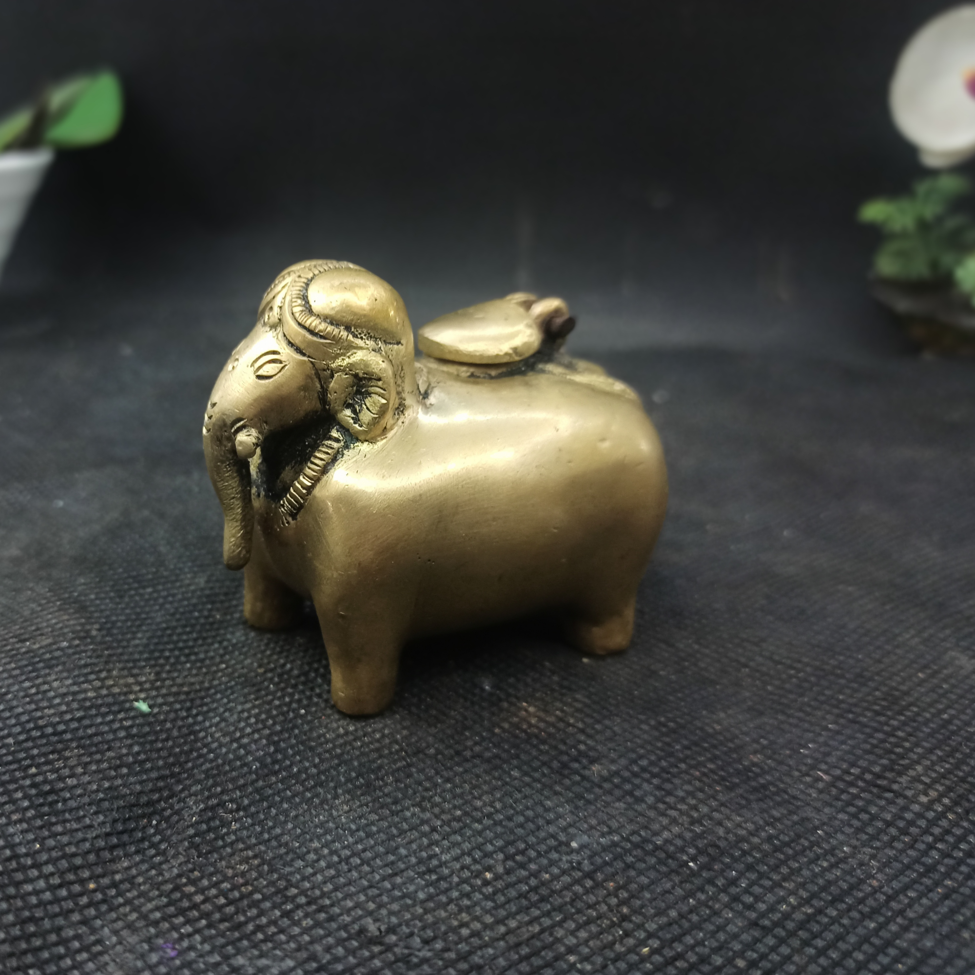 This Brass Elephant Ink Pot is a finely handcrafted decorative piece made from solid brass. Measuring 2.8 x 1.8 x 2.5 inches and weighing 340 grams, it features an elephant design and serves as a functional ink holder or decorative accessory.
