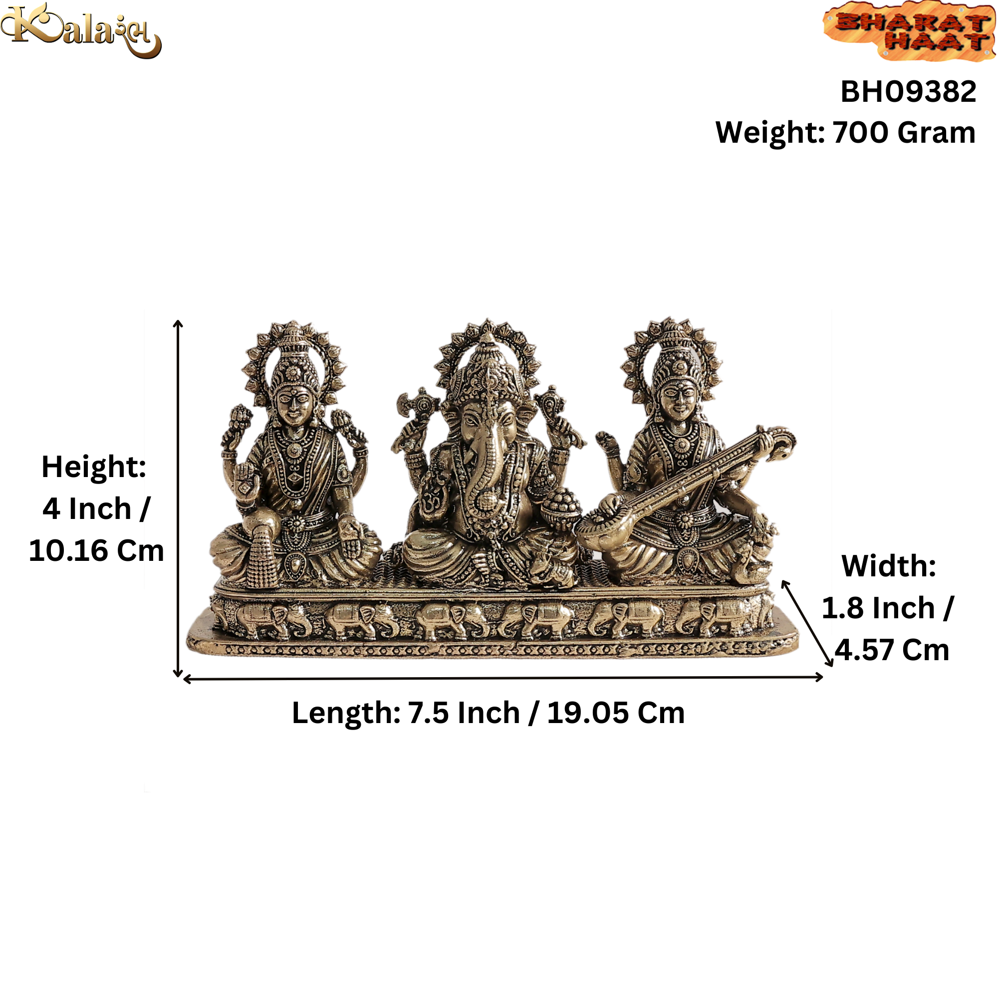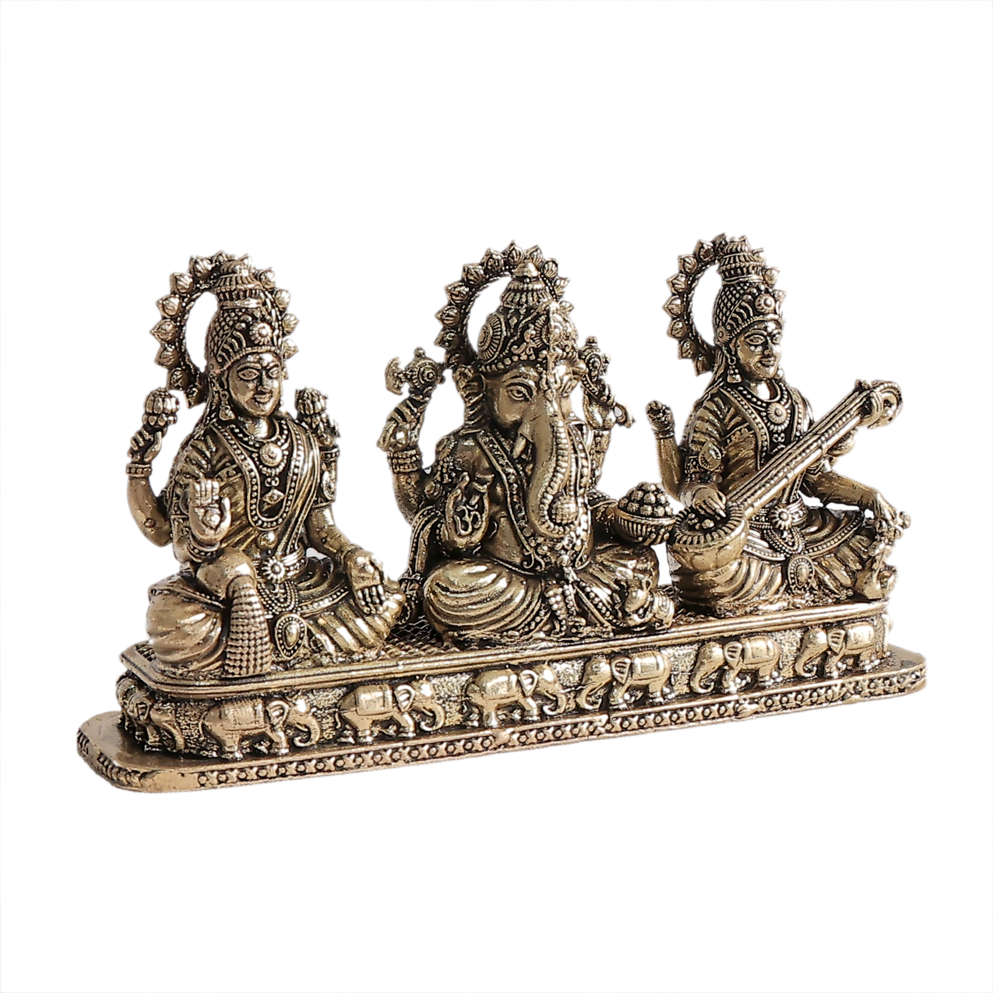 Brass Ganesh Lakshmi Saraswati Murti for Home Temple, Office & Gift BH09382