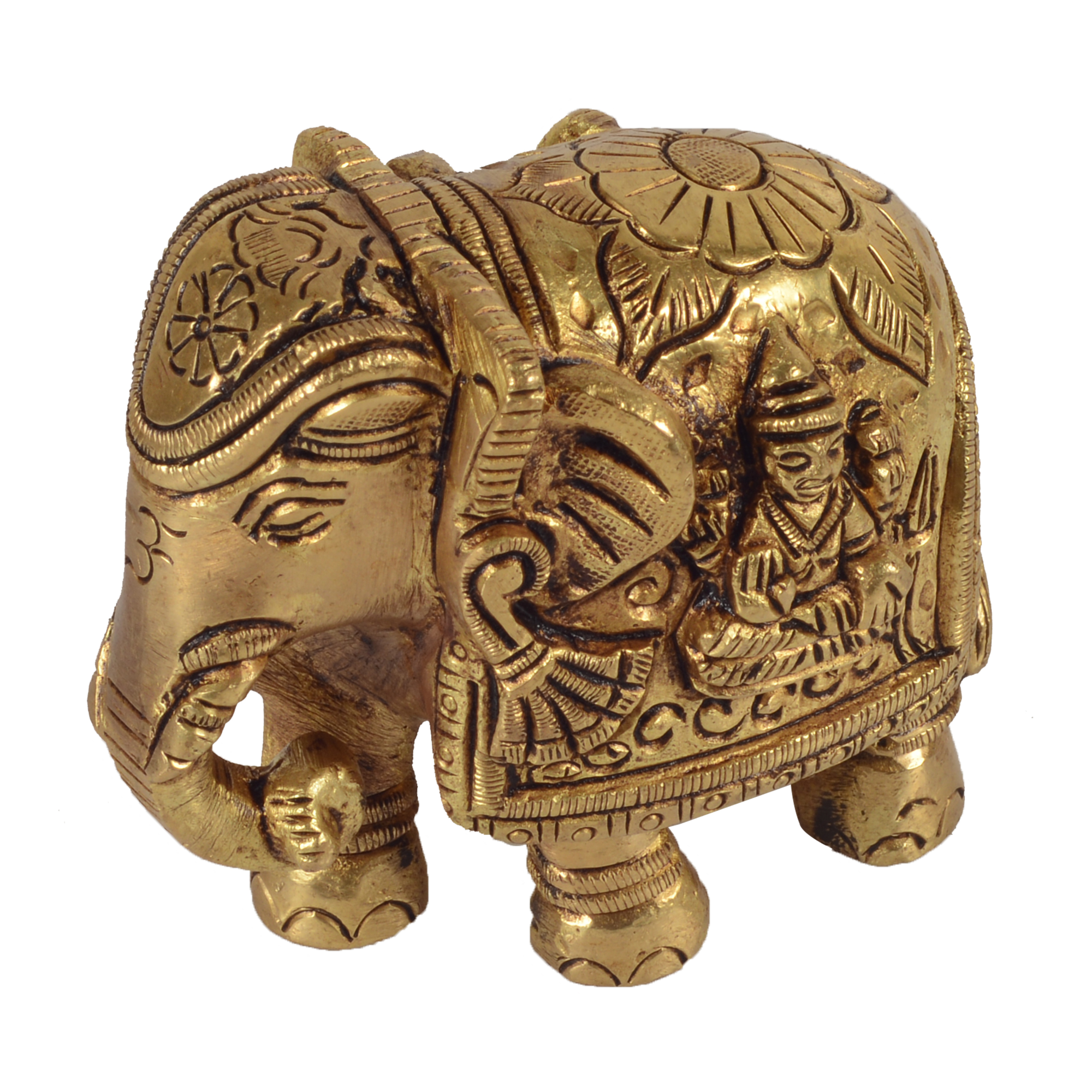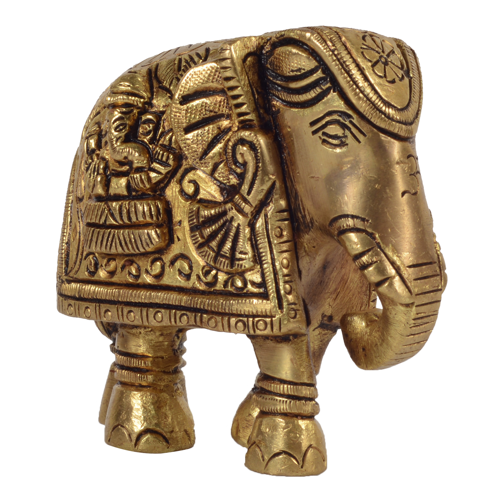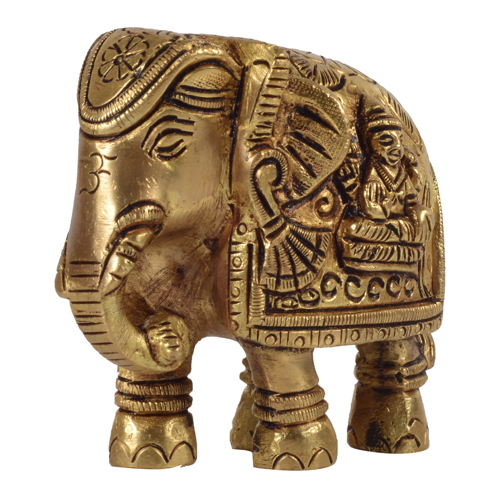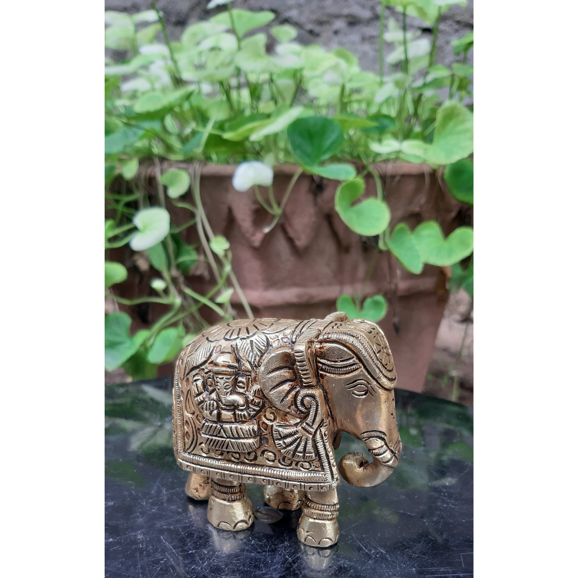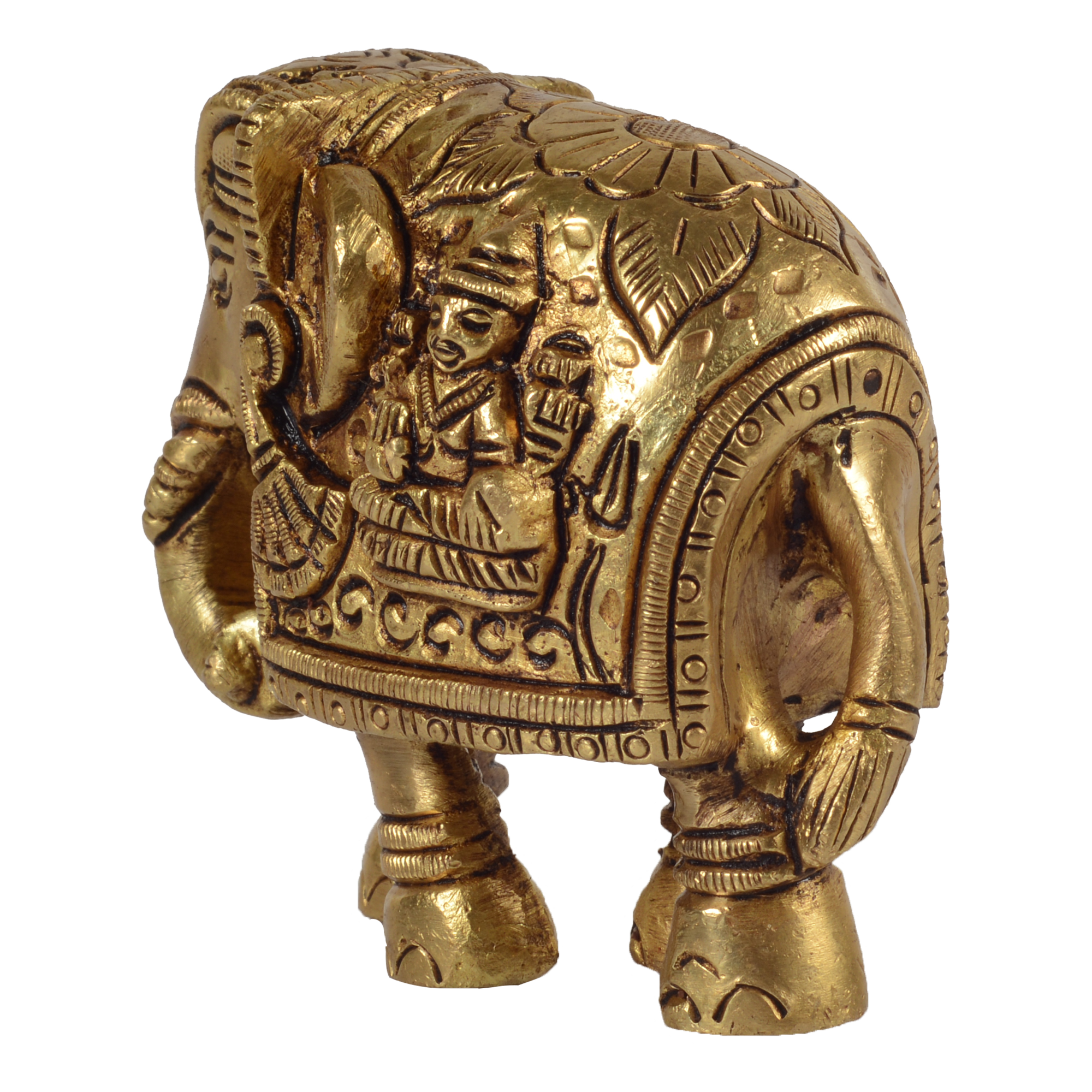 Brass Elephant decorative piece with dimensions 2.6 x 1.3 x 2.4 Inch and weight 380 Gram. A compact, beautifully crafted figurine suitable for home décor, office desks, and gifting.