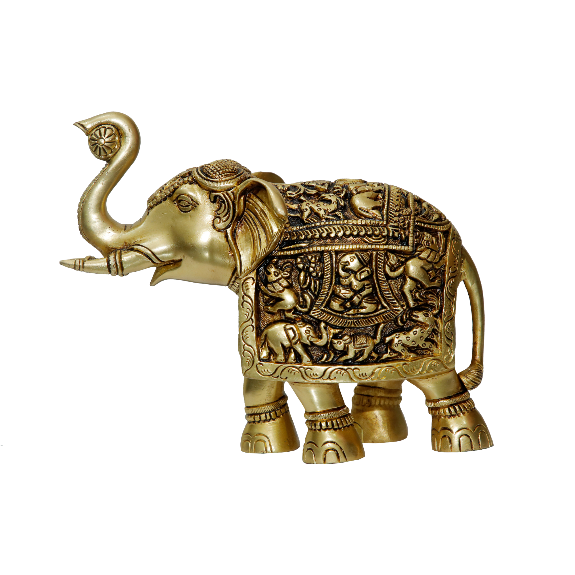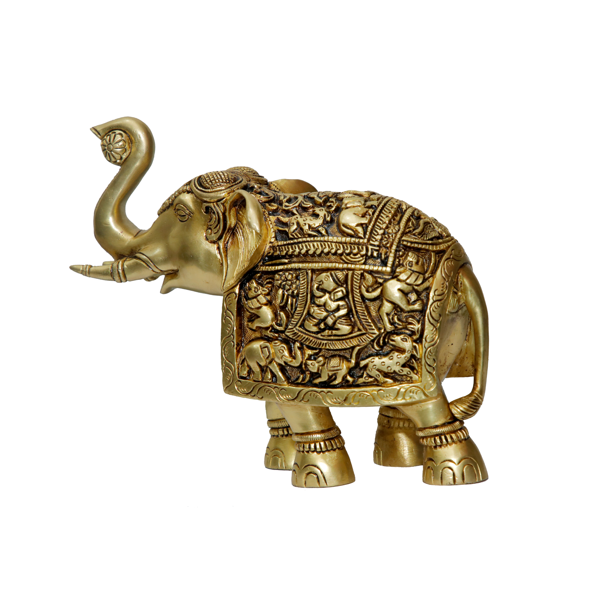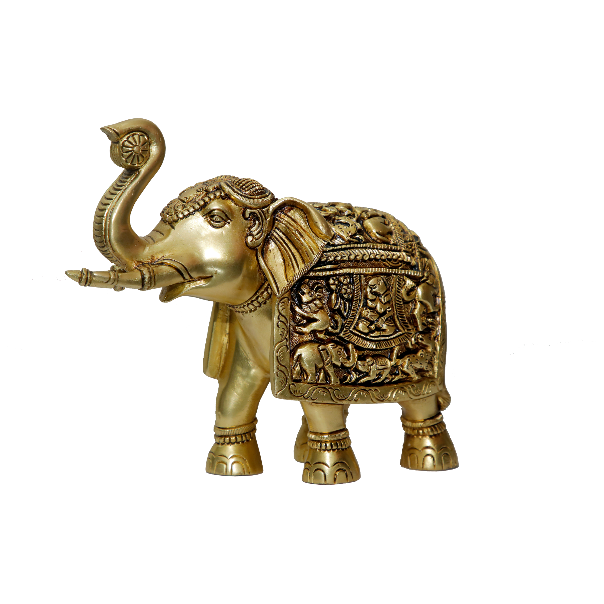 This Brass Elephant Statue is a beautifully handcrafted piece made from solid brass. Measuring 8 x 3.5 x 7 inches and weighing 3.42 kg, it features intricate detailing that brings strength, wisdom, and positive energy to your home, office, or temple décor.