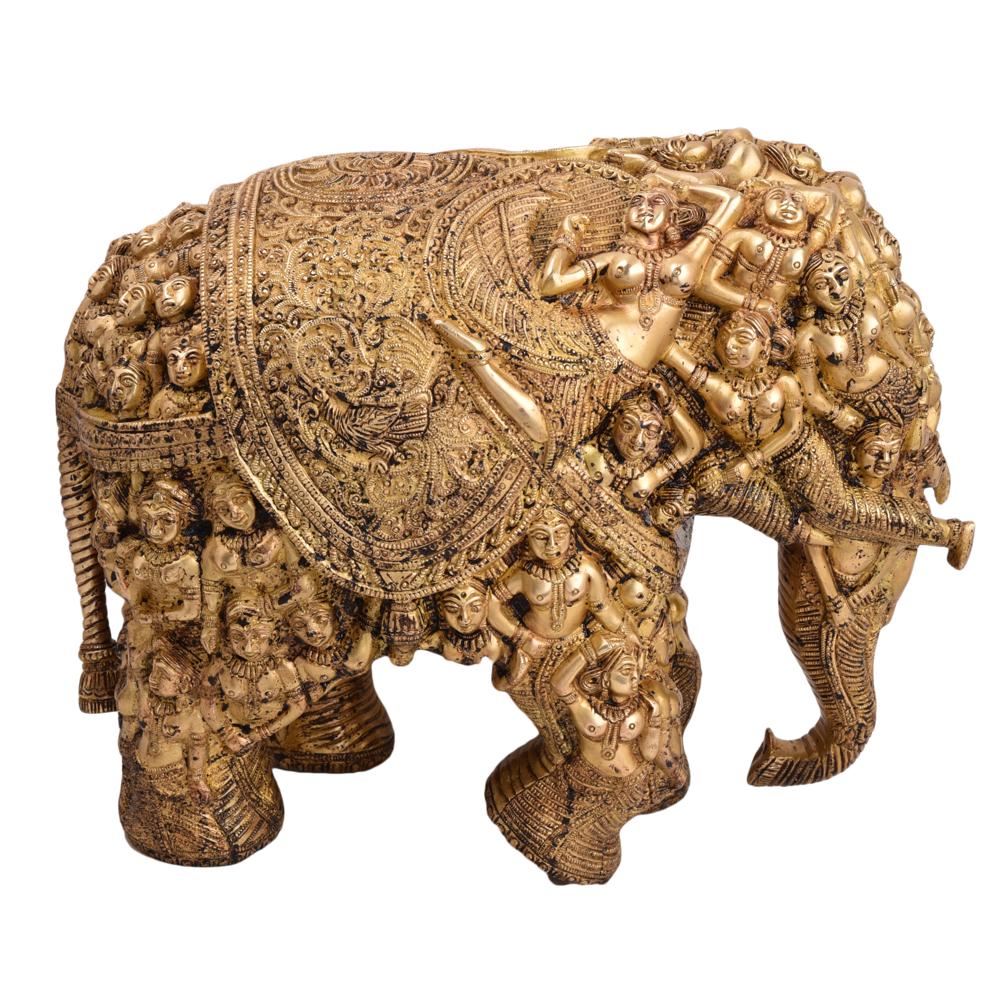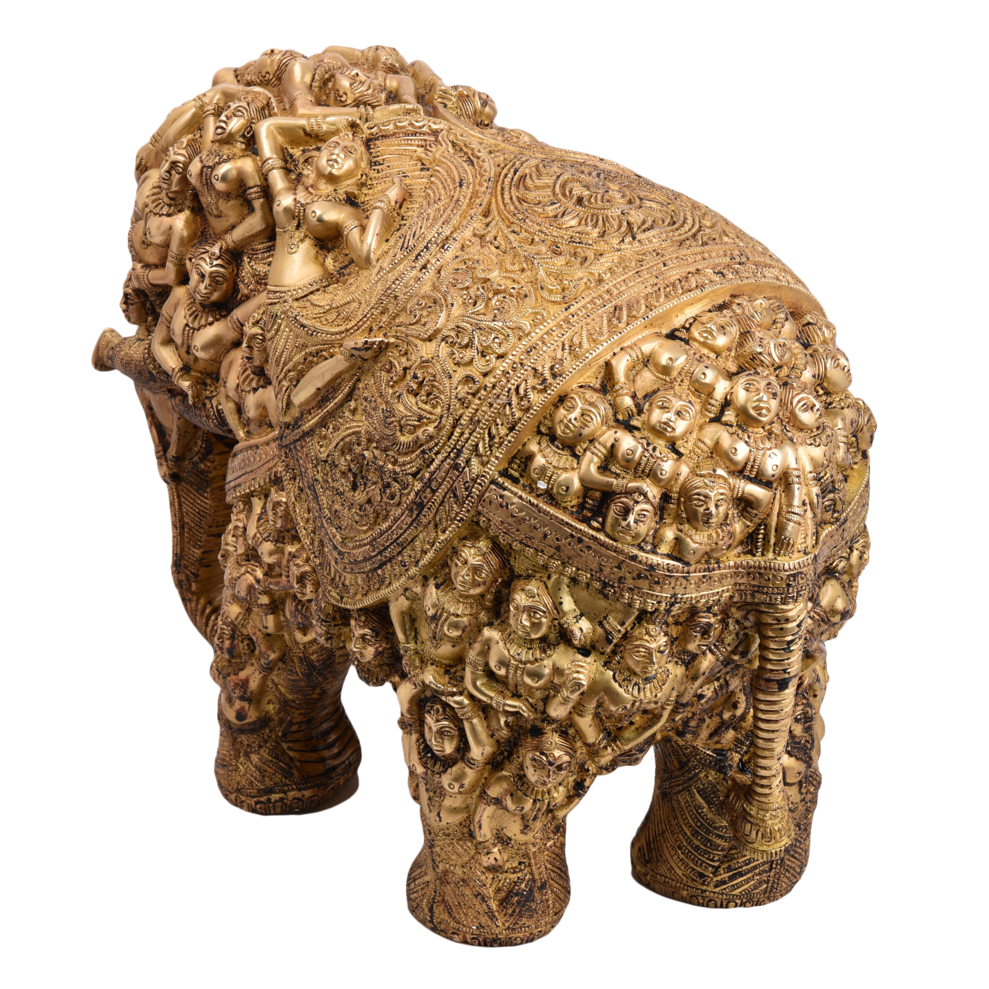 Design: Features a majestic elephant adorned with finely carved lady motifs, meticulously handcrafted to showcase artistic detailing and cultural elegance.