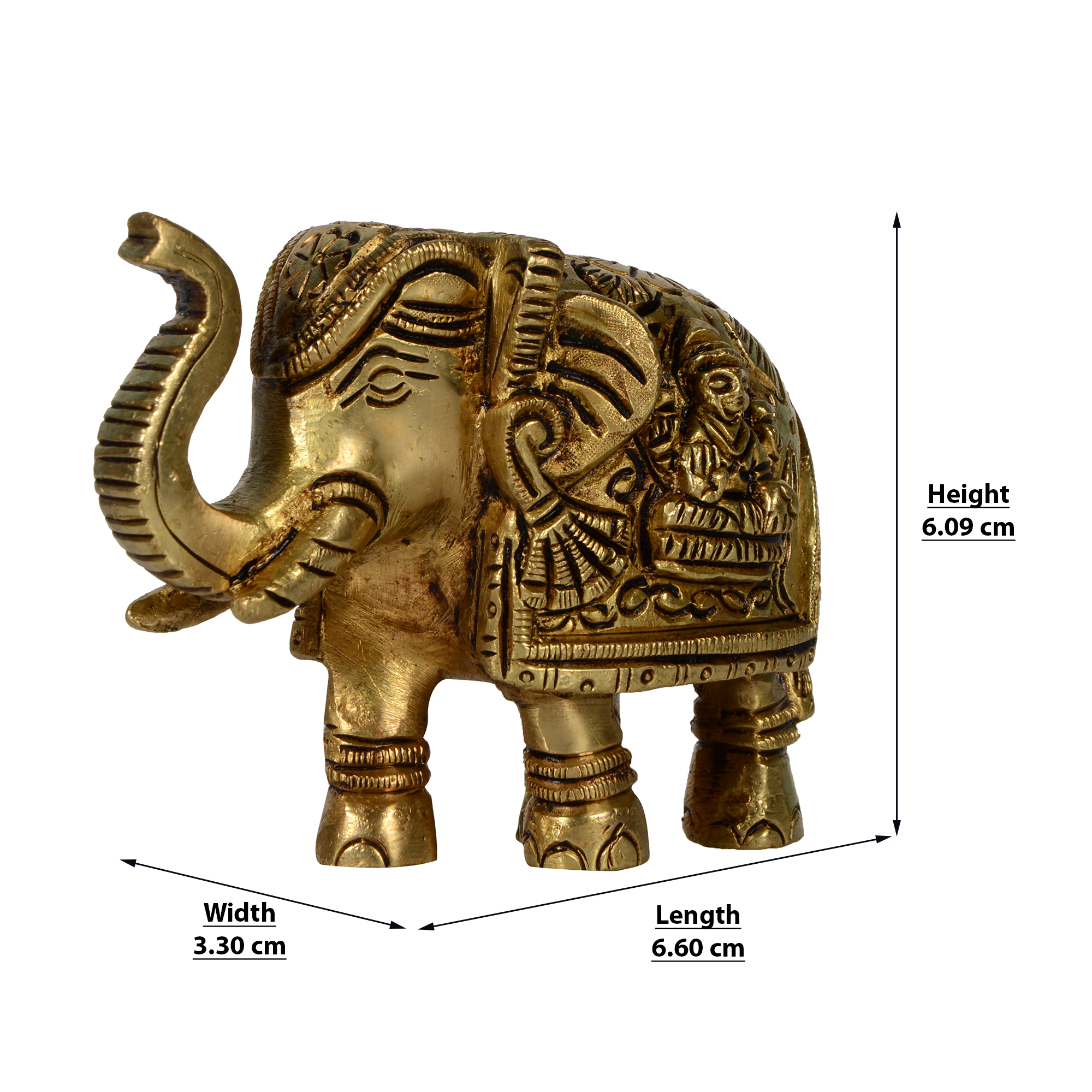 Design: Handcrafted Pure Brass Elephant Idol with an upward trunk, symbolizing good luck, success, victory, and positive energy